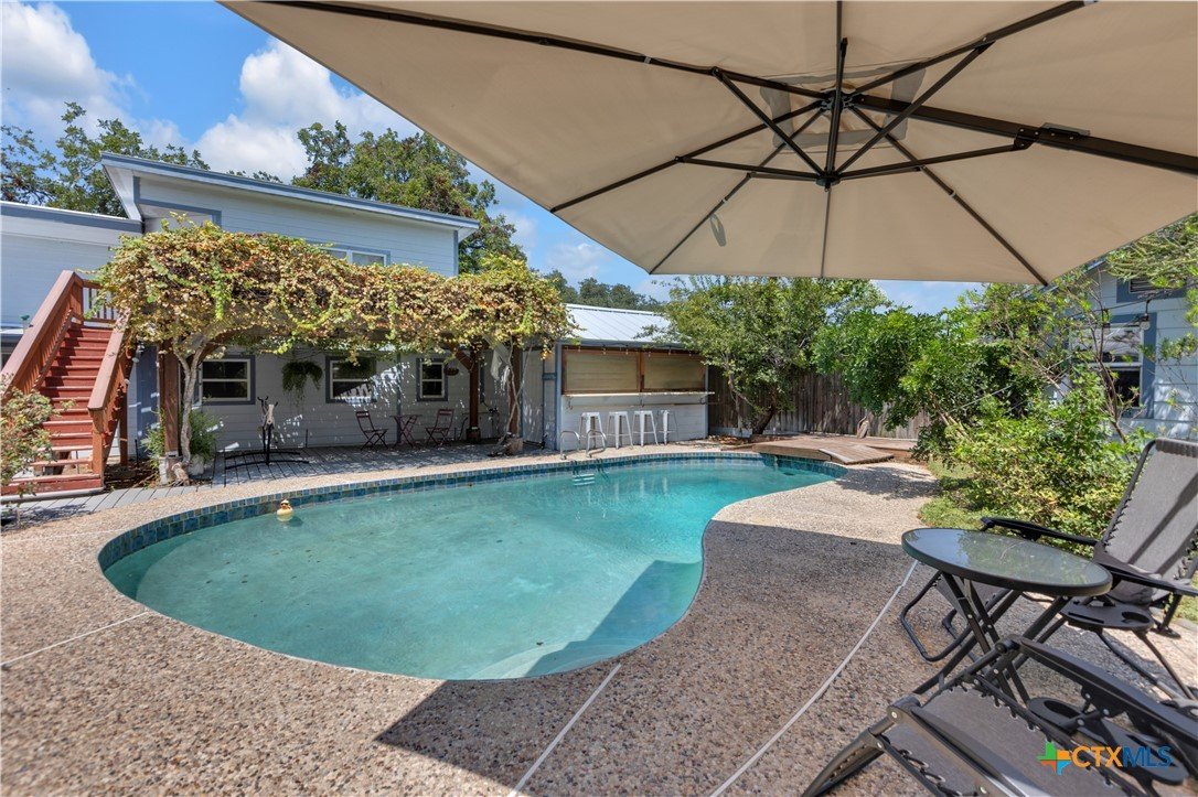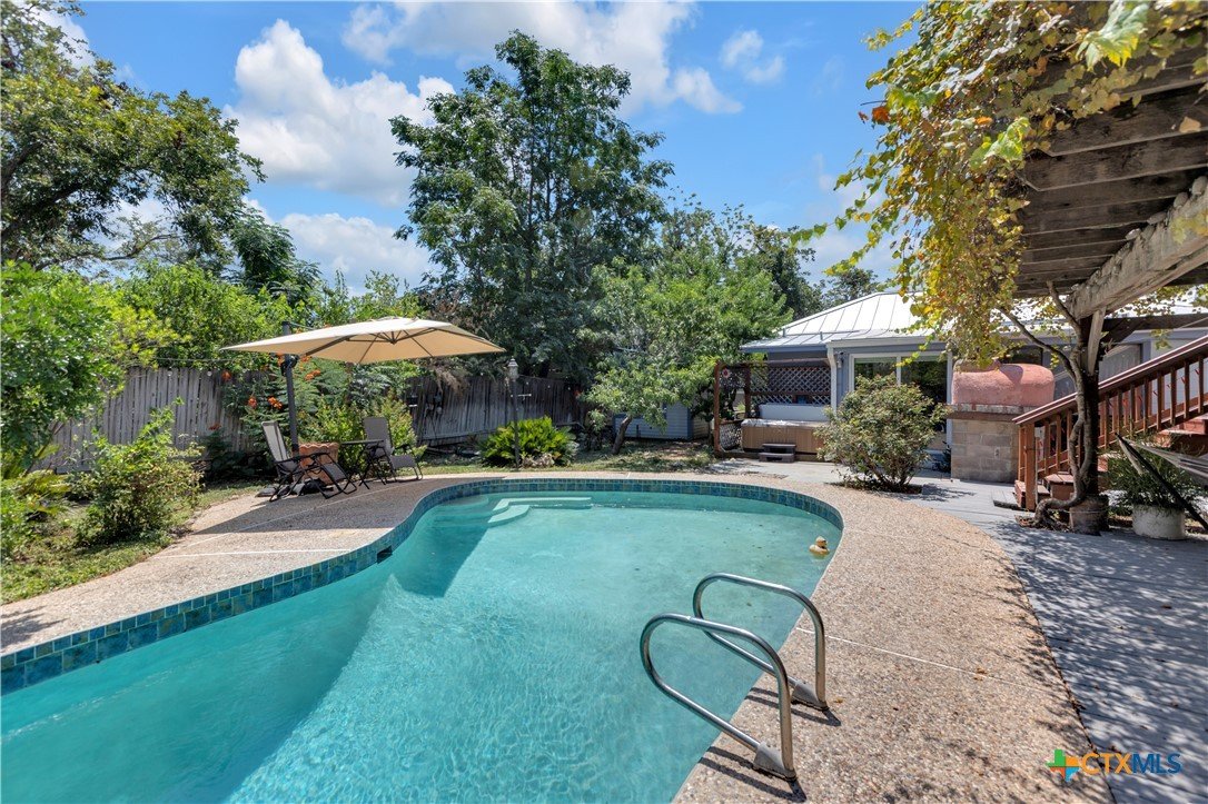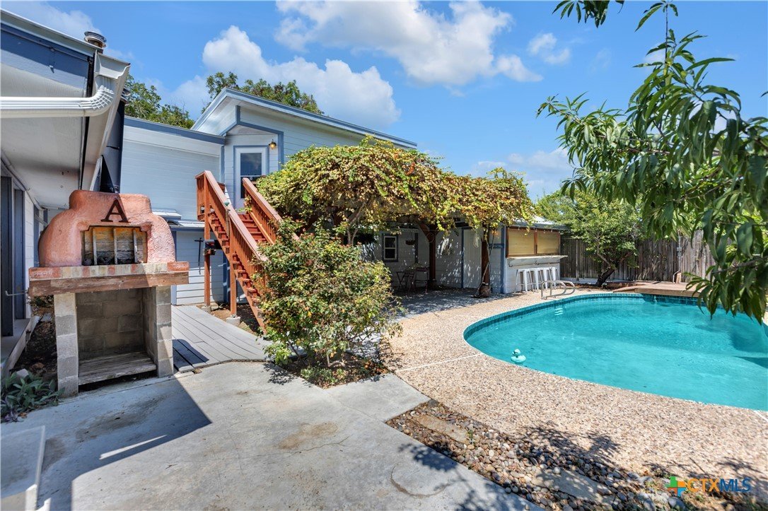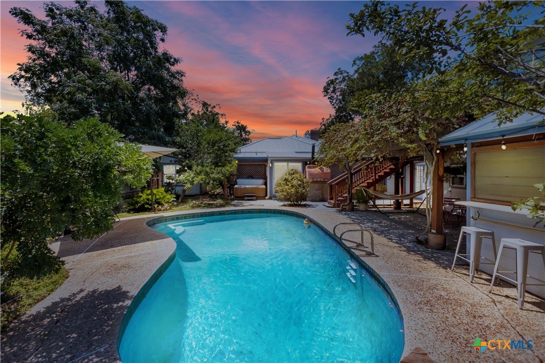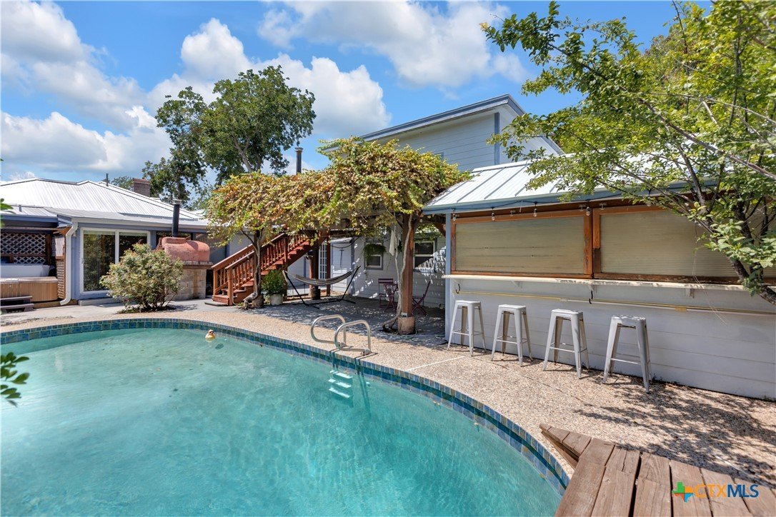 Downtown Seguin Stunner with Resort-Style Backyard! Nestled in downtown Seguin, this 4-bedroom, 3.5-bath masterpiece offers over 3,260 sq ft of elegance and comfort. Inside, hardwood and tile floors complement two living areas, ideal for gatherings and relaxation. Step outside to your private paradise with a pool, hot tub, pizza oven, and covered bar. The above-garage apartment with full bath provides a flexible guest or income opportunity, while the RV garage caters to adventurous spirits. Downstairs, enjoy a climate-controlled workout room and wine cellar. No HOA means more freedom to enjoy your dream home your way.