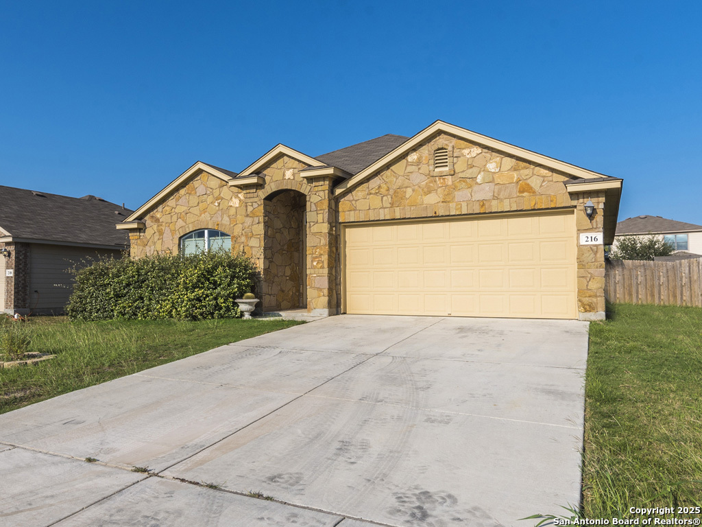 PRE-LEASING FOR AN AUGUST 11th, 2025 MOVE IN! Welcome to 216 Teron Dr. This stunning single-story home offers the perfect blend of comfort and style, featuring three spacious bedrooms, two modern bathrooms, and a two-car garage. Step into a bright and airy layout with soaring ceilings, comfy carpeted floors, and abundant natural light that fills the expansive living room. The open-plan design connects seamlessly to a contemporary kitchen equipped with a striking stone-front island, ample cabinet space, and a dedicated dining area ideal for everyday meals or special occasions. The main bedroom is a true retreat, boasting a spa-like bathroom with a soaking tub, single vanity, and a large walk-in closet. Two additional bedrooms provide generous space, while a separate home office offers a quiet and productive workspace. Step outside to a beautifully landscaped, privately fenced backyard-perfect for outdoor entertaining, weekend gatherings, or morning workouts. Located in the highly sought-after San Marcos School District, this home enjoys a prime location near local attractions, shopping, dining, and essential amenities. 216 Teron Dr is a move-in-ready opportunity that combines convenience, style, and space.