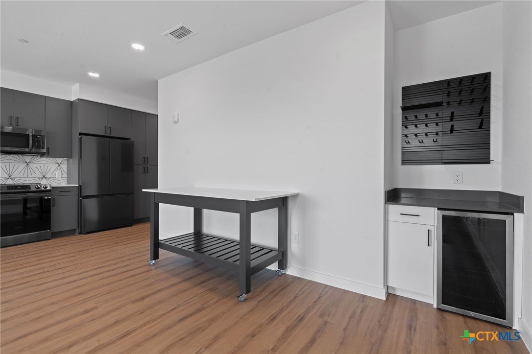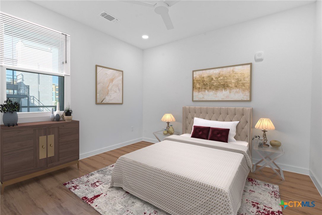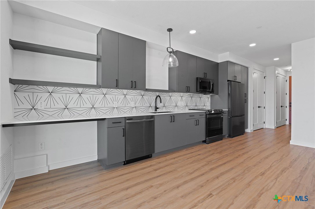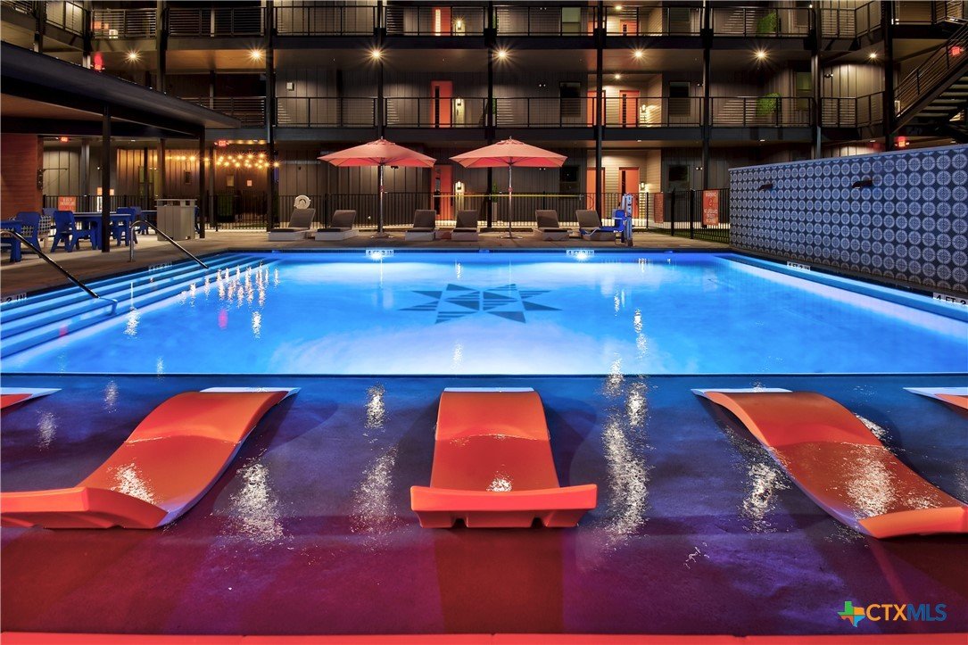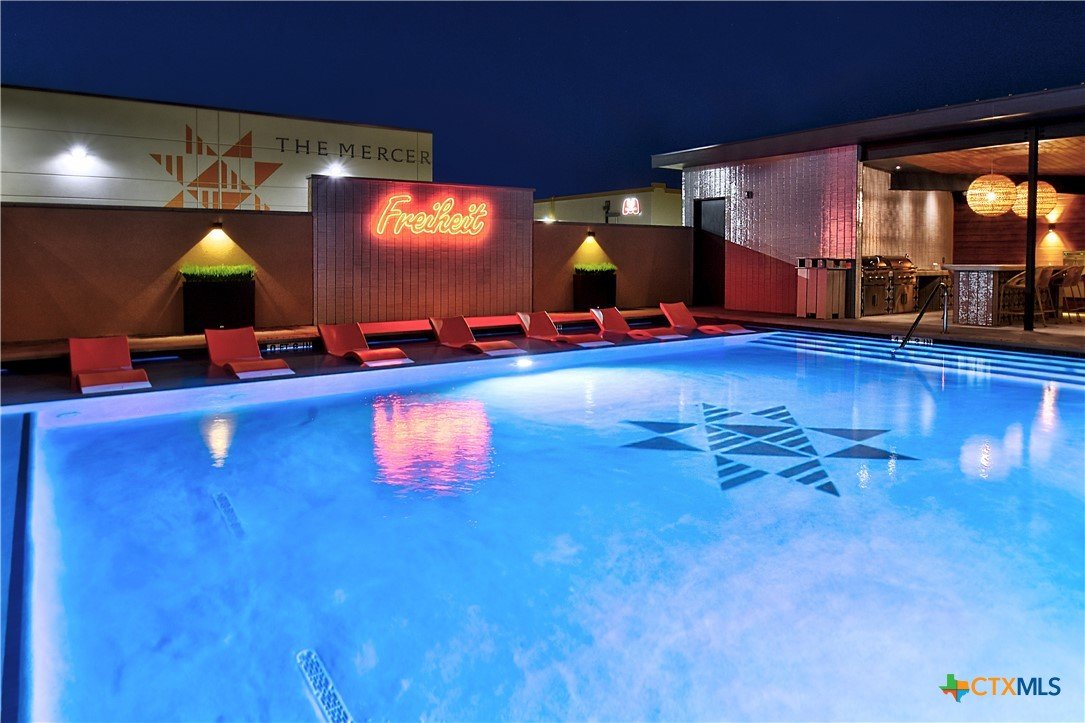 Discover this FULLY UPGRADED, NEVER-BEFORE-OCCUPIED condo within the premier condominium community in New Braunfels, THE MERCER! Situated in the vibrant, walkable Freiheit Village neighborhood, this commodious residence offers the pinnacle of modern, urban living. Step inside to discover an inviting, open floor plan with high ceilings, creating a spacious and airy feel along with a large balcony featuring open views of Uptown New Braunfels. The kitchen is equipped with sleek, brand new black stainless-steel appliances that perfectly complements the curated interior finish palette. A chic coffee and wine bar enhances the living area, adding both convenience and style. The primary bath is a luxurious retreat, showcasing oversized dual vanities and a walk-in shower with custom floor-to-ceiling tile work. The elevated experience doesn’t end here. The Mercer highlights a resort-style amenity set, including a boutique swimming pool, fully equipped outdoor summer kitchen, activity area, off-leash dog park with a dedicated pet washing station, elevator, and an Amazon Hub Locker. To top it off, the community is SHORT-TERM RENTAL friendly, making it an excellent investment opportunity or a flexible living option. Schedule a private tour today!