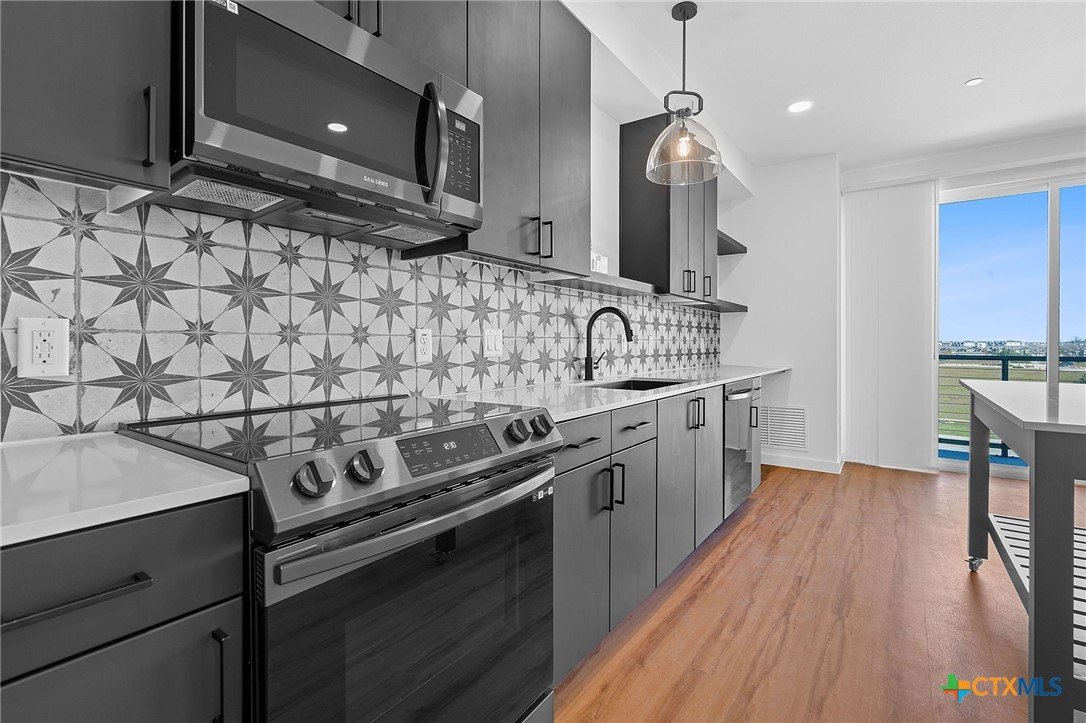 Brand new never been lived before one bedroom one bathroom condo with modern upgrades. Ready for your move-in and comes with washer, dryer, refrigerator. Unobstructed view from the balcony. Property is gated and comes with one assigned parking but plenty of parking available outside the gate and behind the condominium complex. Trash pickup is included. Close to many restaurants, and retail shopping places