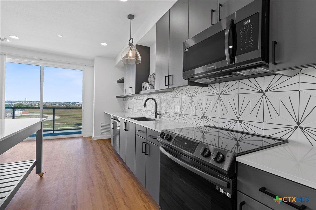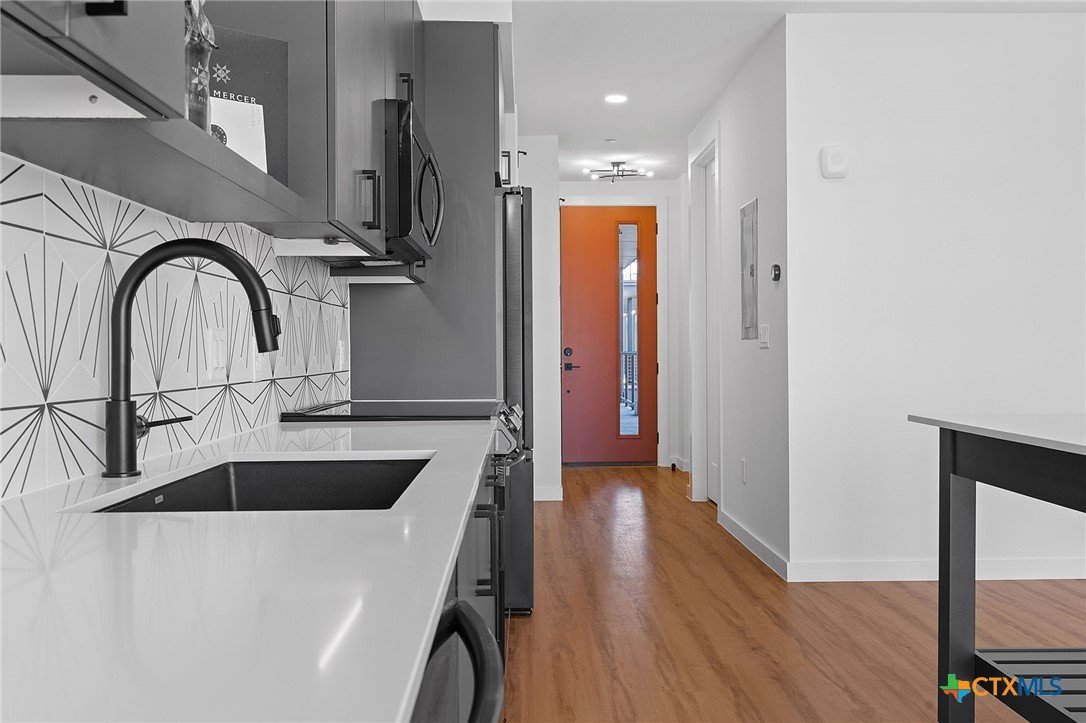 Brand new never been lived before one bedroom one bathroom condo with modern upgrades. Ready for your move-in and comes with washer, dryer, refrigerator. Unobstructed view from the balcony. Property is gated and comes with one assigned parking but plenty of parking available outside the gate and behind the condominium complex. Trash pickup is included. Close to many restaurants, and retail shopping places