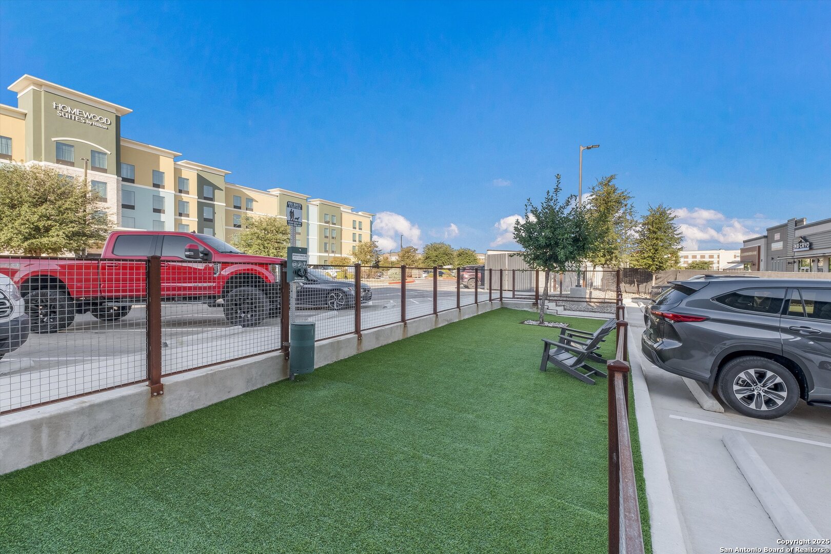Top Floor, Corner unit with Private balcony, Additional side Windows to bring in the light, Custom window coverings included, and there's an Elevator in the complex! Soft-close cabinets, Washer/Dryer combo, Samsung Appliances, Quartz Counter Tops, Water softener. Open Floorplan with plenty of light. Smart Home with Ring Doorbell and Programmable Thermostat. This complex is DOG friendly with Dog Park and even a Pet Bathing Station! Resort style pool, Entertainment area with double Gas Grills, Big ScreenTV, Dining and Seating area. Walk to shopping, schools, Restaurants. Minutes to Gruene and downtown New Braunfels. Amazon Lockers, Assigned Parking plus additional parking outside the gated parking lot. Monthly HOA fee $300.