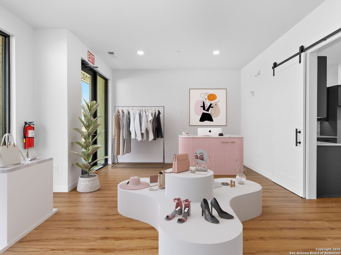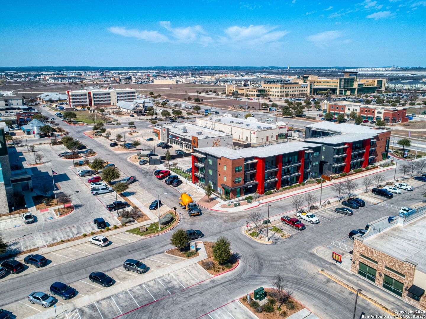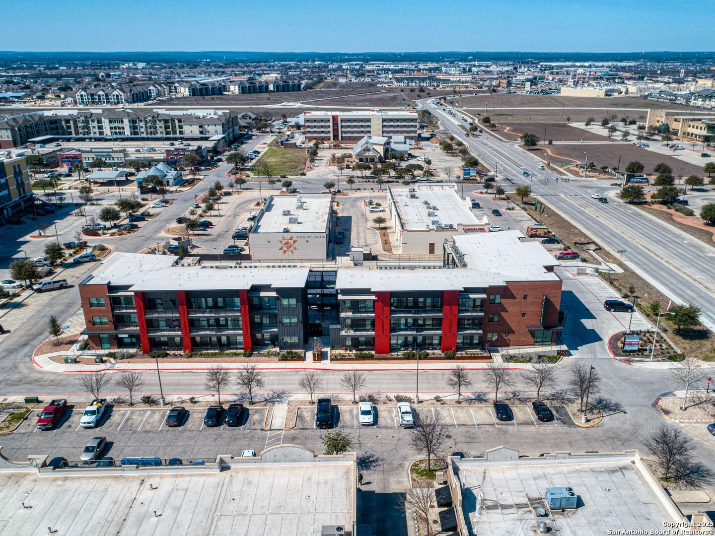 Seize this versatile live/work opportunity in The Mercer at Freiheit Village. This 1 bedroom, 1 bath open plan unit (single level) features high ceilings, expansive windows, a modern full kitchen, in unit laundry area, and abundant natural light. The layout includes a dedicated storefront with a separate entrance that supports small business, studio, or office use while preserving a private owner's suite with its own secure entrance - ideal for owner occupiers who need visible retail/office frontage. The Mercer offers gated access, elevators, assigned parking, and resort style amenities including a pool, outdoor entertaining and lounge areas, and a dog park. Excellent visibility in Freiheit Village places this unit steps from local restaurants, coffee shops, and retail at Village at Creekside, with major retail and entertainment at Creekside Town Center nearby. Located approximately 0.1 mile to Resolute Health, ~0.2 mile to Village at Creekside, and ~1.3 miles to Creekside Town Center, this property combines live/work flexibility with immediate access to commercial and healthcare hubs.