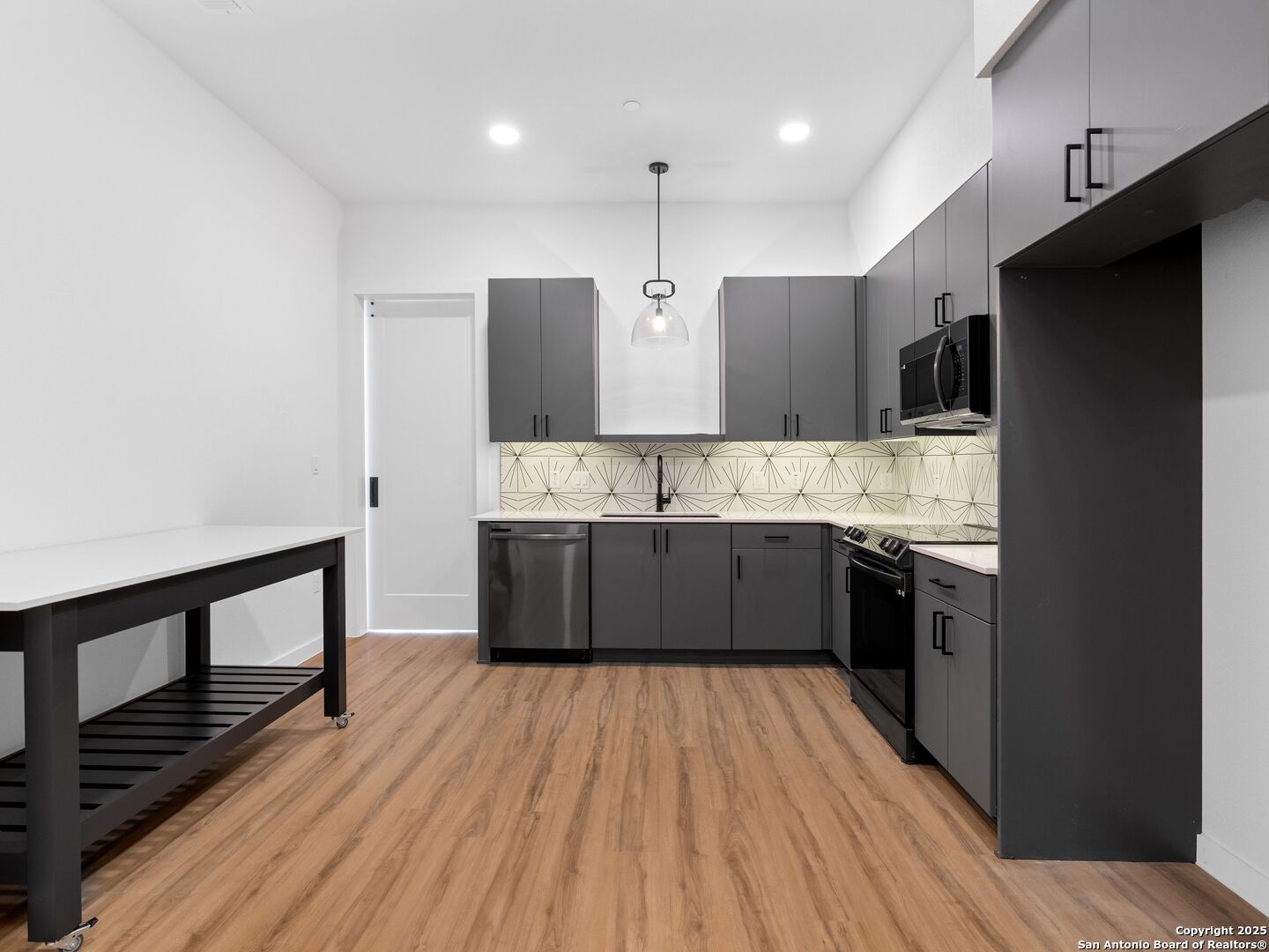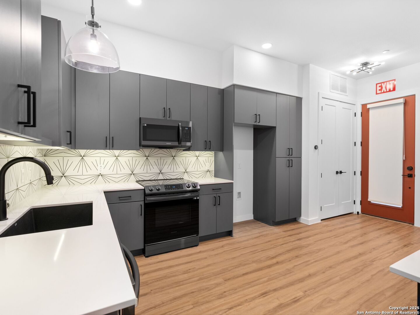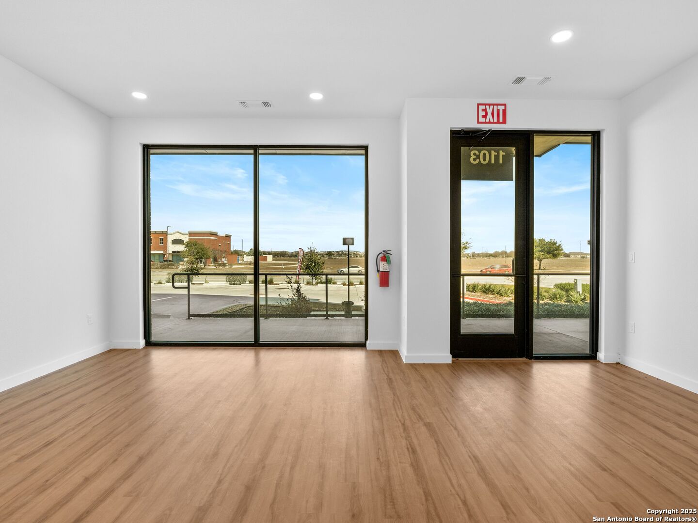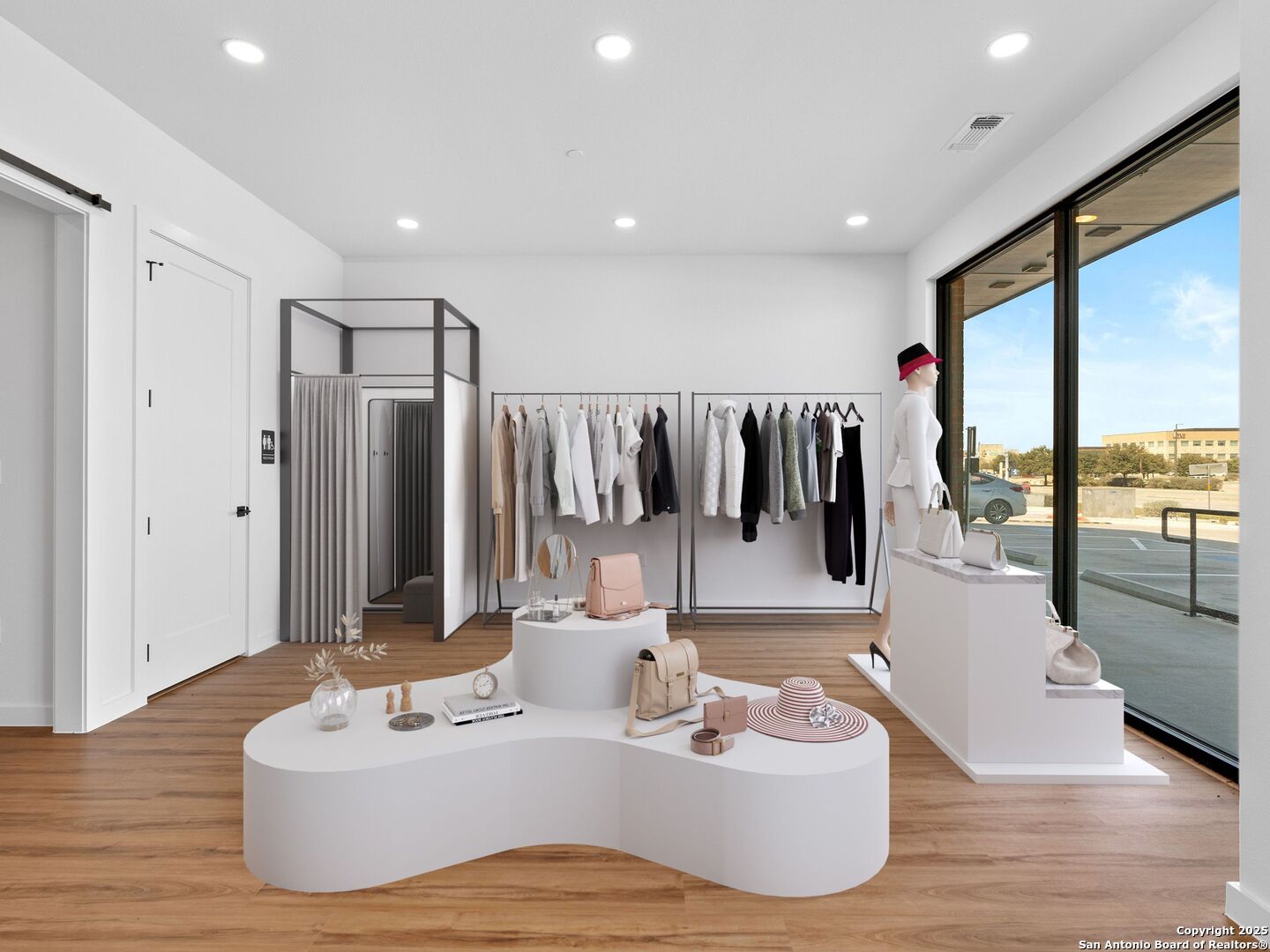 Seize this versatile live/work opportunity in The Mercer at Freiheit Village. This 1 bedroom, 1 bath open plan unit (single level) features high ceilings, expansive windows, a modern full kitchen, in unit laundry area, and abundant natural light. The layout includes a dedicated storefront with a separate entrance that supports small business, studio, or office use while preserving a private owner's suite with its own secure entrance - ideal for owner occupiers who need visible retail/office frontage. The Mercer offers gated access, elevators, assigned parking, and resort style amenities including a pool, outdoor entertaining and lounge areas, and a dog park. Excellent visibility in Freiheit Village places this unit steps from local restaurants, coffee shops, and retail at Village at Creekside, with major retail and entertainment at Creekside Town Center nearby. Located approximately 0.1 mile to Resolute Health, ~0.2 mile to Village at Creekside, and ~1.3 miles to Creekside Town Center, this property combines live/work flexibility with immediate access to commercial and healthcare hubs.