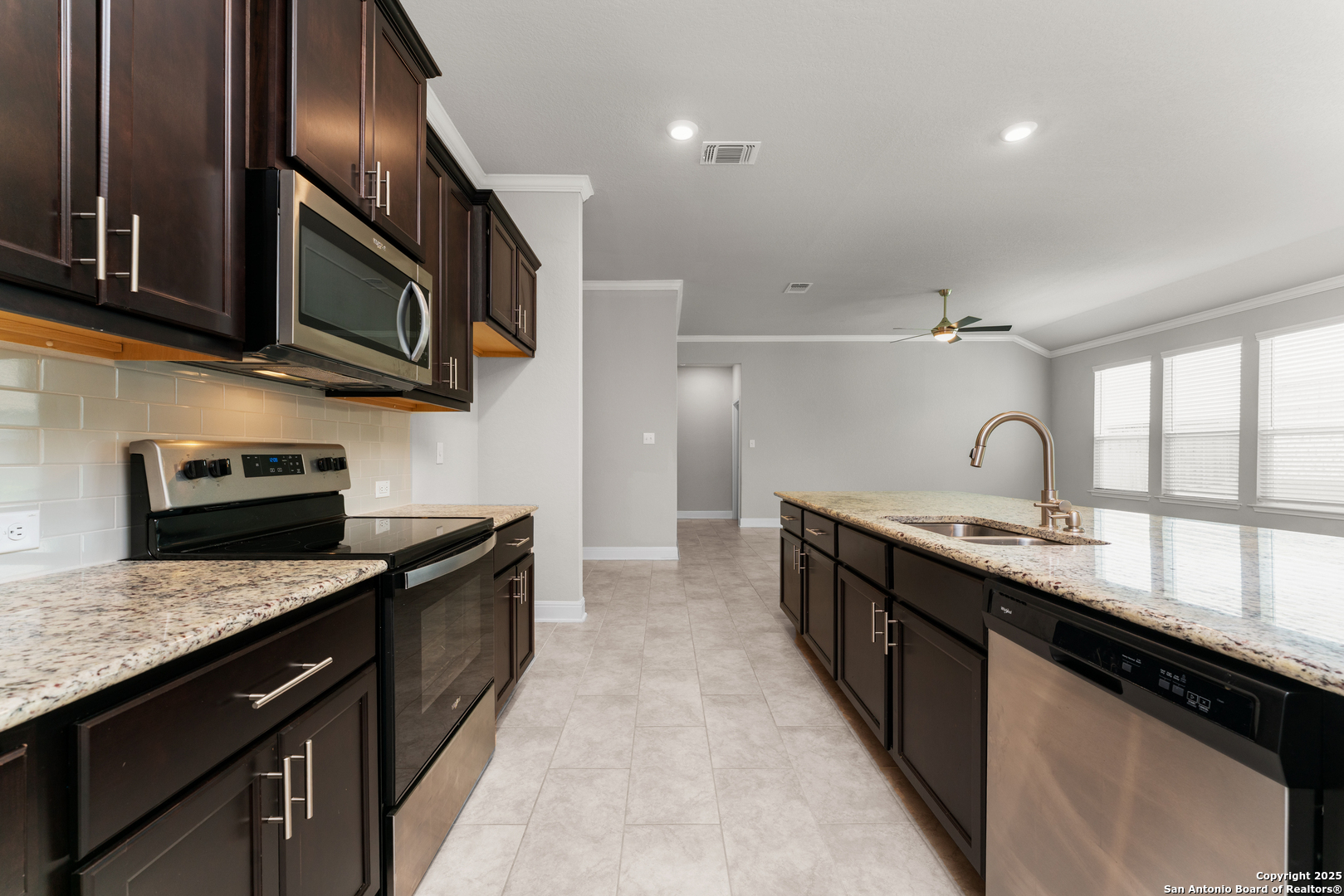 Beautiful 4 bed, 2 bath home located in the heart of Cibolo. Blending modern charm with timeless appeal, this thoughtfully crafted home offers a spacious living area with high ceilings, and a seamless indoor-outdoor flow perfect for both entertaining and everyday living. Boasting a large office for work, play area or indoor gym, every corner of this home exudes warmth and sophistication. The open-concept kitchen is a chef's dream, featuring premium stainless steel appliances, quartz countertops, and a large island that invites conversation. Unwind in the inviting living room with large windows that bathe the space in natural light, or retreat to the luxurious primary suite complete with a spa-like bathroom and generous walk-in closet. Enjoy the tranquil backyard oasis - ideal for morning coffee, weekend BBQs, or simply soaking in the peace of your private space. Home has full gutters and filtration system with water softener. Located in the highly desirable neighborhood of Saratoga, this home is minutes away from dining, shopping, entertainment and Randolph AFB!