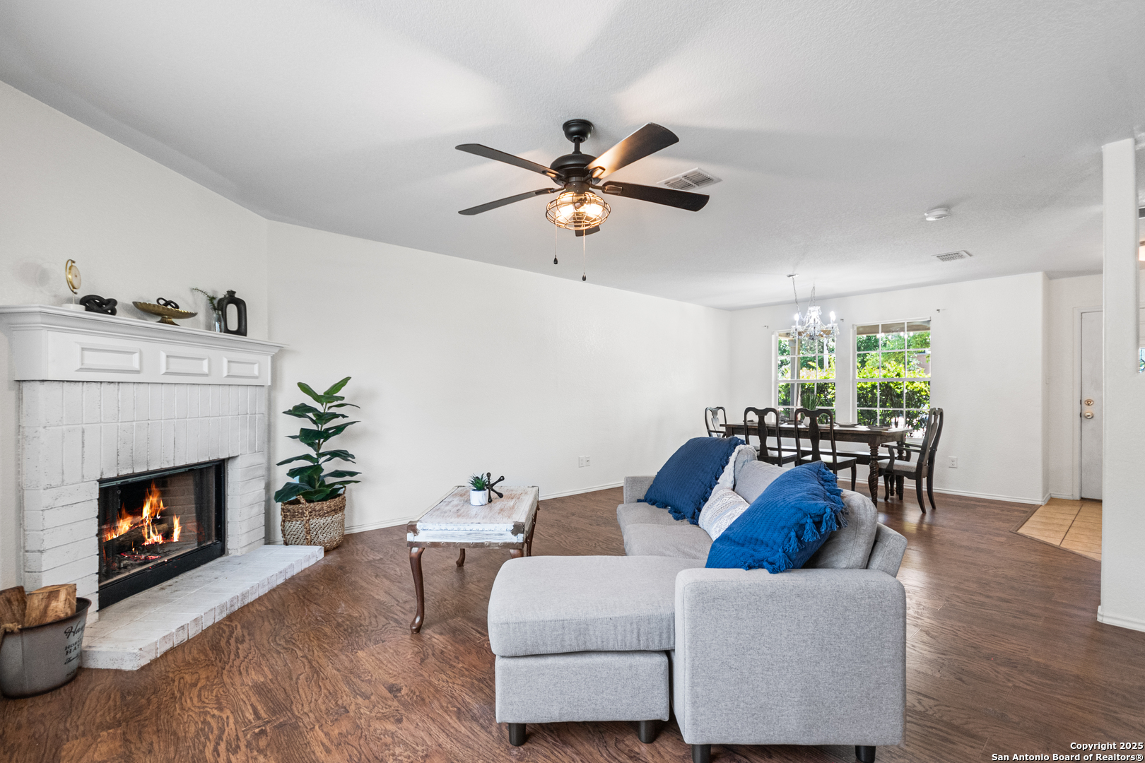 Don't miss this fantastic opportunity to own a beautiful home in the highly desirable Kensington Ranch community! Ideally located in Selma, this home offers quick access to major employers, shopping, dining, and entertainment-combining convenience with suburban charm. Featuring a 3-bedroom, 2.5-bath layout, the spacious open-concept living area includes a cozy wood-burning fireplace and a large eat-in kitchen perfect for gatherings. All bedrooms are privately located upstairs, including a generous primary suite with a versatile sitting area-ideal for a home office, nursery, or personal retreat. A loft upstairs offers flexible space for a second living area, game room, or playroom. Step outside to enjoy a large covered patio overlooking a spacious backyard, complete with a storage shed for tools and equipment. Recent upgrades include a brand-new HVAC system and water heater, and all kitchen appliances convey. This move-in ready gem is priced to sell-schedule your showing today!