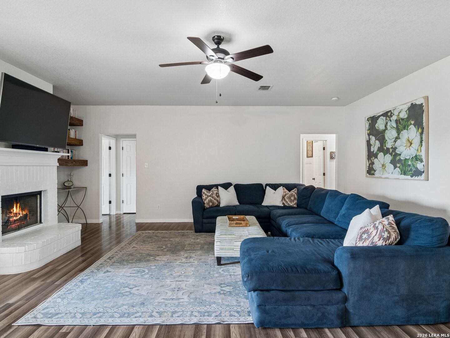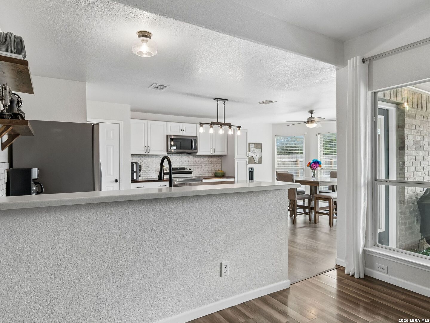 Welcome home to this charming one-story, 4 sides brick home, in the highly desirable Voss Farms community! From the moment you step inside, you'll be drawn to the stunning kitchen-perfect for family meals, weekend baking, and gathering with friends. Black deep sink, upgraded cabinets and countertops, and beautiful lighting! The open floor plan creates a comfortable flow between the kitchen, dining, and spacious living room, where a beautiful fireplace makes the perfect spot for cozy evenings and family movie nights. Large back windows bring in natural light and frame peaceful views of the picturesque farmhouse behind the property. This thoughtfully designed home offers 3 bedrooms plus a spacious flex room with double French doors-ideal for a home office, playroom, homeschool space, or guest room. The owner's retreat provides a relaxing escape with double sinks, a soaking tub, and a separate shower, along with a generous closet. A private door leads directly from the suite to the covered back patio, making it easy to enjoy quiet mornings with coffee or unwind in the evening while taking in the beautiful Texas views. Step outside to the covered patio, perfect for family barbecues, outdoor dining, or simply watching the sunset over the farm scenery. Living in Voss Farms means enjoying fantastic neighborhood amenities including a community pool, park, and walking trails-great for active families and outdoor fun. The home is also conveniently located near schools, grocery stores, restaurants, and Fischer Park, one of the area's favorite spots for playgrounds, fishing, and nature trails. f you're looking for comfort, charm, and a family-friendly neighborhood, this home truly has it all.