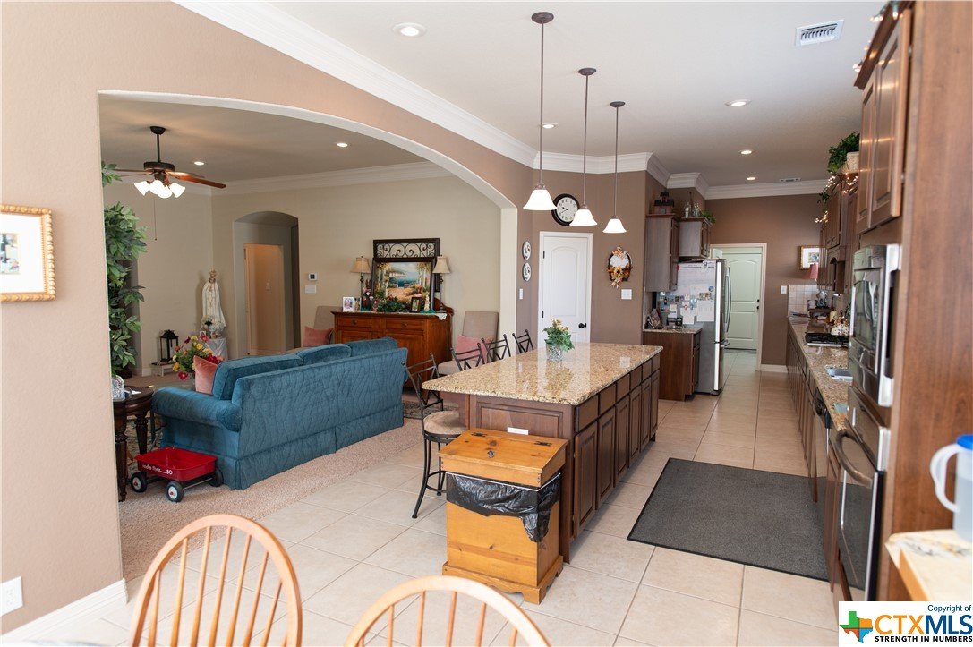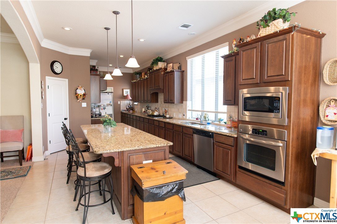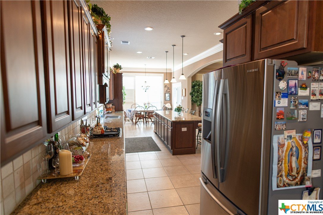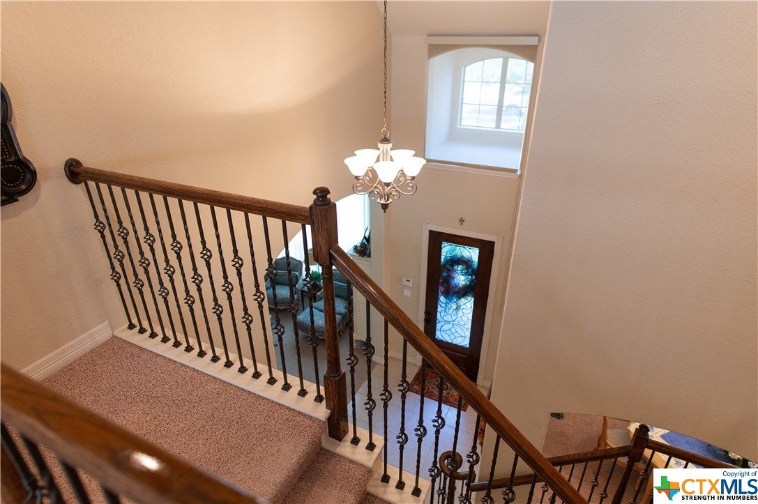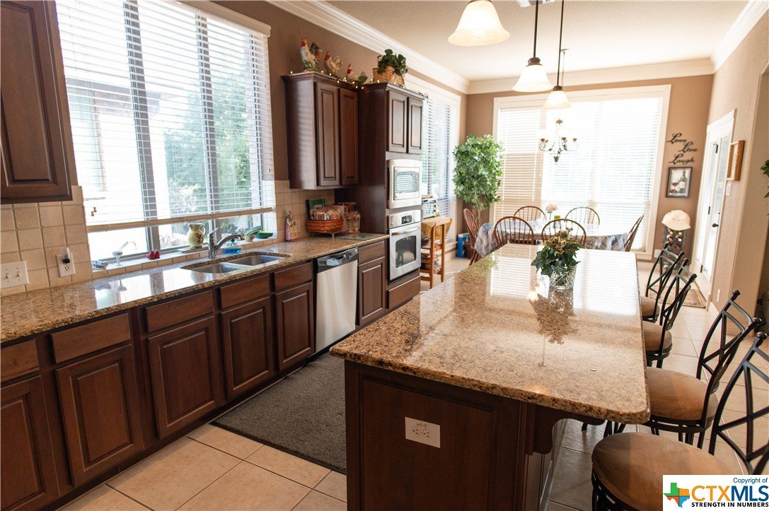 Picture yourself in this beautiful Highland Home in this established gated neighborhood! Walk through a beautiful ornate glass front door into the formal dining, formal living and stylish stairwell to the upstairs. As you step into the family room, you will see the beautiful fireplace and enormous kitchen and island. This kitchen as 17 custom cabinets, lots of granite counter space, center island with seating and a fabulous walk-in pantry. While the lovely primary bedroom and bath are downstairs, up the stairs are a game room currently used as a library and three additional bedrooms and bathrooms. The yard is perfectly landscaped. Sit and enjoy the evenings in the large covered back patio overlooking a decent sized backyard. Schedule a showing today! Buyer confirms all room measurements. Refrigerator in kitchen, washer, dryer and water softener convey with home. Foundation warranty transfers. Radiant barrier added. New roof in 2019. Plumbing work to relieve "bubble" completed January 2026.