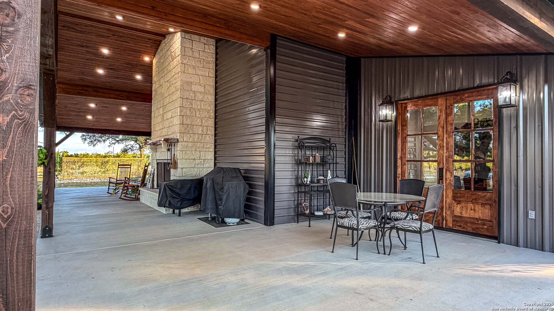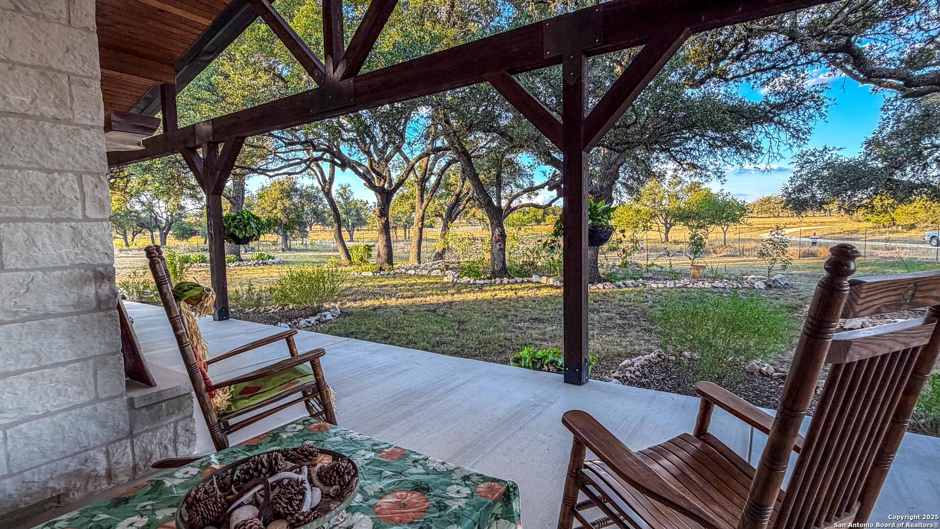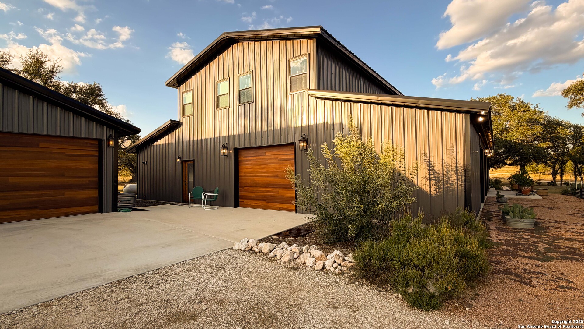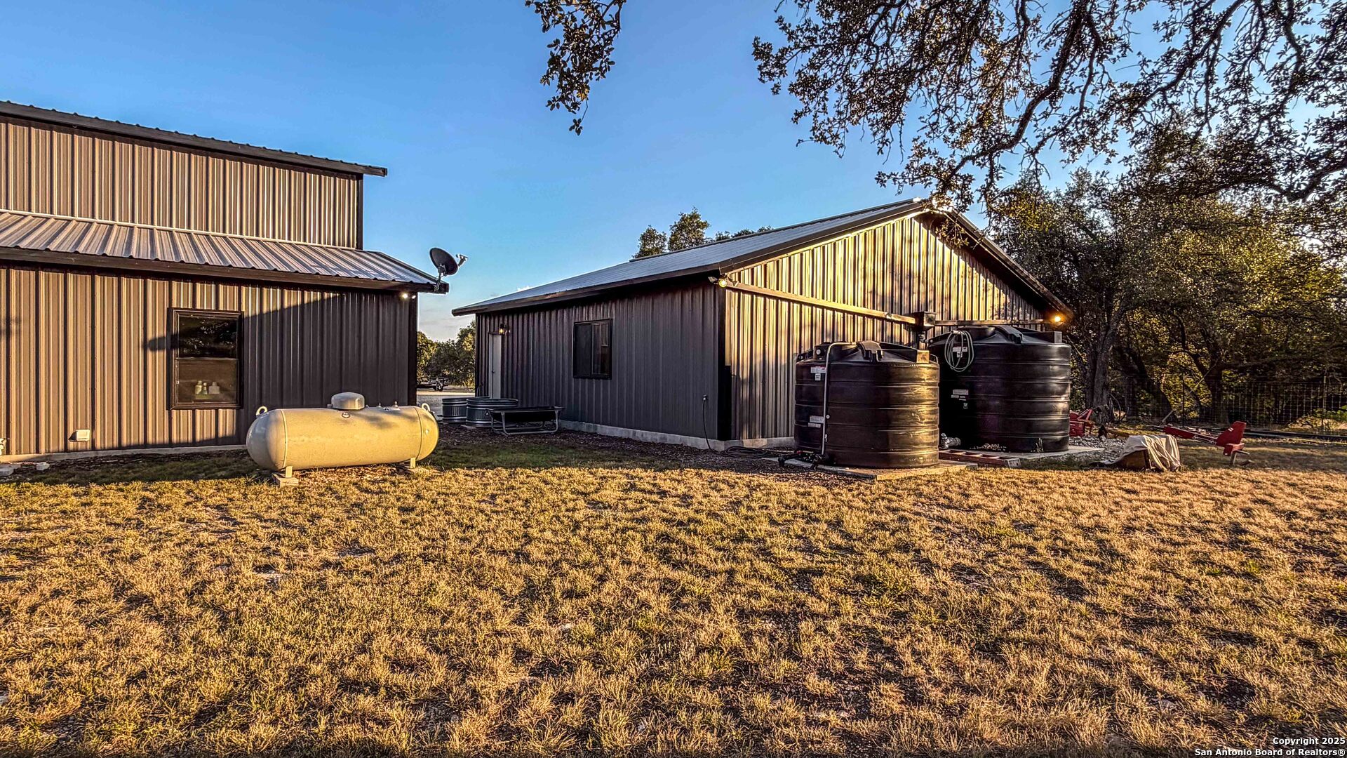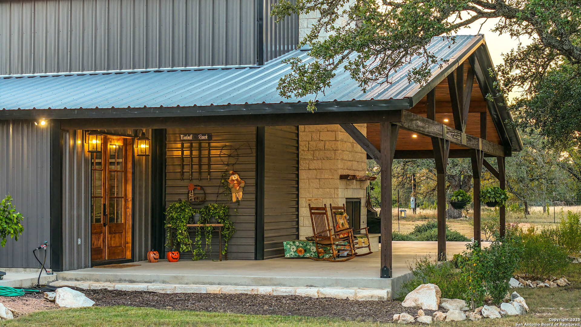 Located just south of Harper, this 20 acre Hill Country homestead offers a rare blend of privacy, thoughtful improvements, and exceptional access. The property sits minutes from the amenities, cafes, and grocery options in Harper, with Fredericksburg-one of Texas's premier destinations for dining, wineries, and shopping -just an easy drive to the east. Also a short drive to the south is access to Kerrville and the top ranked Peterson Health System. With no HOA fees, minimal deed restrictions, and 19 acres under ag valuation (plus a 1-acre deer-proof fenced homestead), the property delivers both freedom and long-term tax advantages. The land features gently rolling terrain, deep soils, mature oaks and cedar elms, and classic views of the dry Pedernales River country, known for its scenic limestone bluffs. The owners have established extensive native landscaping along with productive gardens and plantings, including ten above-ground planter boxes, two 20'x20' raised beds, multiple herb gardens, eighteen mature grape vines, and an orchard with fig, peach, apple, and pear trees. Water systems include a private well with a 1,350-gallon AquaScience holding tank plus a separate 2,500-gallon rainwater collection tank. The newly constructed home is built with durability and efficiency in mind, featuring all-metal siding and roofing, stick framing, blown-in insulation, insulated garage doors, an owned 250-gallon propane tank, and a 1,000-gallon septic system. Offering nearly 2,900 sq. ft. of heated and cooled space (5,200 sq. ft. under roof), the home includes concrete floors, ceilings ranging from 9' to 22', custom alder cabinetry, Whirlpool appliances, an oversized 12'x20' butler's pantry, and an open-concept design centered around a double-sided indoor/outdoor masonry fireplace. The downstairs primary suite features separate vanities, a large closet with washer/dryer, and an aging-in-place wet room. The home includes three bedrooms, two full baths, and two half baths, with ADA-friendly features such as 36" doors and accessible bathrooms. Two additional upstairs bedrooms and a 12'x21' flex room are served by a separate HVAC system and can be closed off when not in use. A standout element is the 14'x50' downstairs flex room-ideal as a greenhouse, den, or game room-with three insulated 10'x8' roll-up doors, drainage, and a sink area. The 54'x20' covered front porch, complete with the outdoor side of the masonry fireplace, creates an inviting space to enjoy sunrise views and wildlife. Beyond the home, a separate 36'x36' insulated garage includes three insulated roll-up doors, a workshop area, and full RV accommodations with 50-amp service, septic hookup, and freshwater connection. An additional 1,296 sq. ft. insulated barn with roll-up doors offers even more storage for equipment, vehicles, or recreational use. Two automated entry gates enhance privacy and convenience, and the property supports abundant native wildlife along with free-roaming exotics such as axis and blackbuck. This is a turnkey Hill Country homestead-quality construction, mature improvements, productive land, and unmatched access to both Harper and Fredericksburg-ready to enjoy from day one.