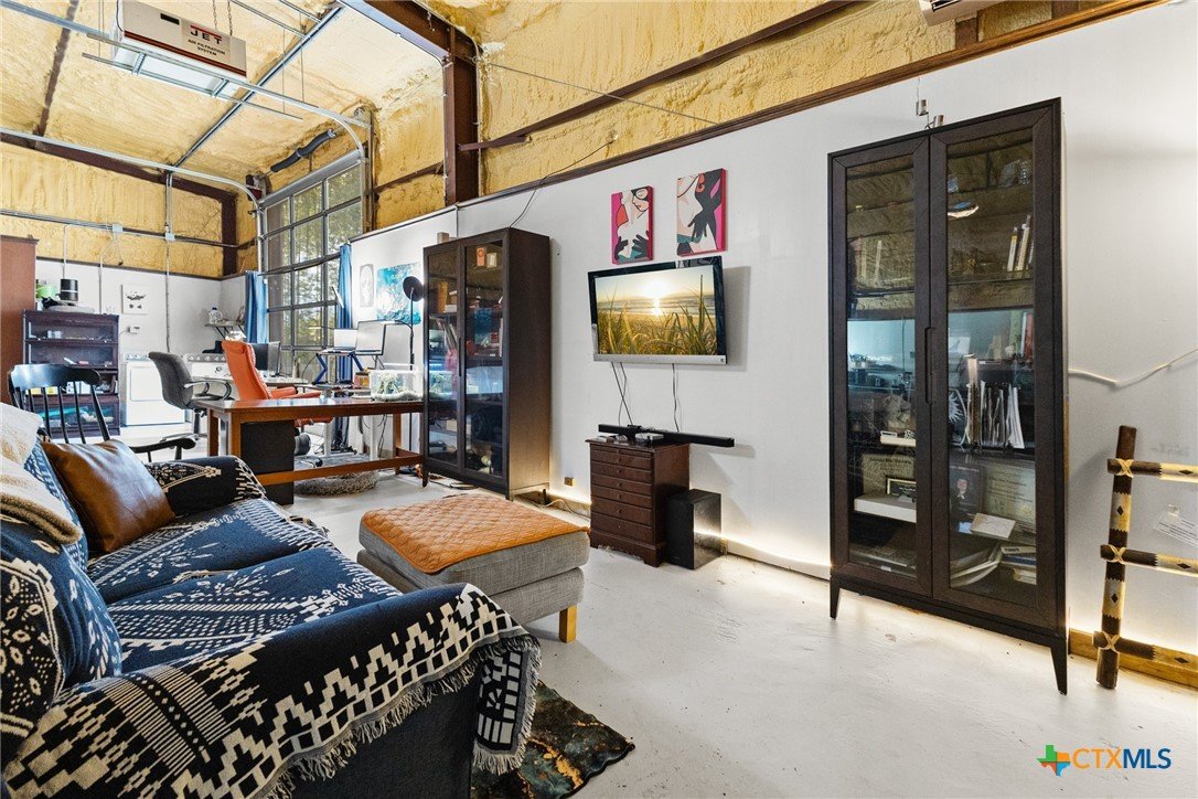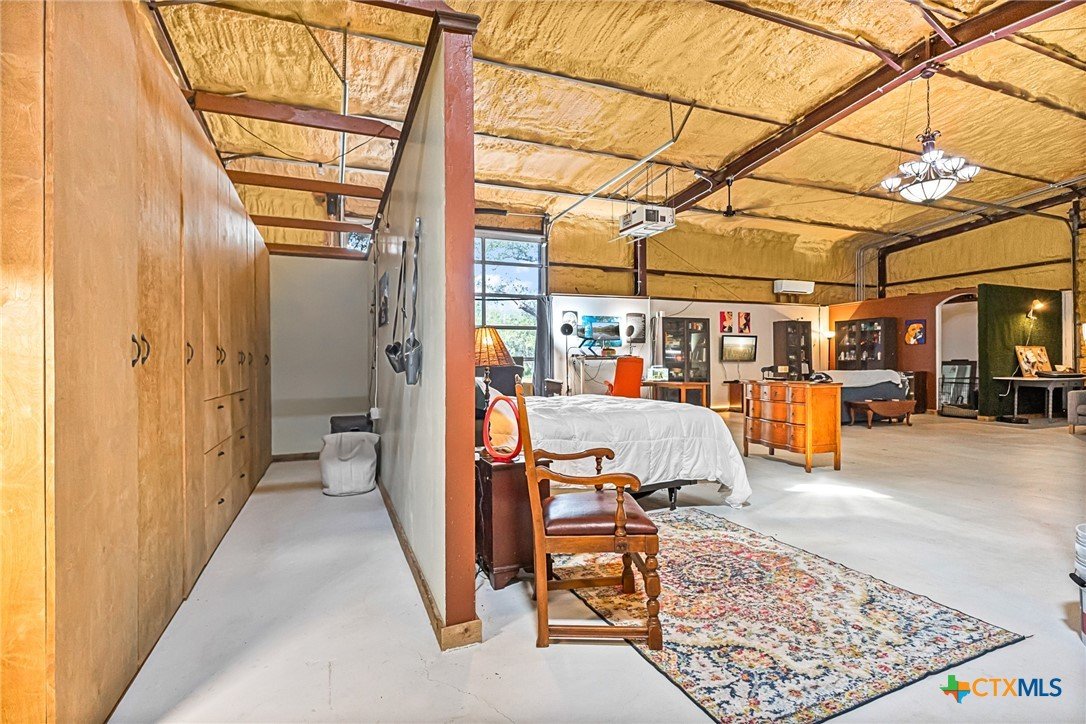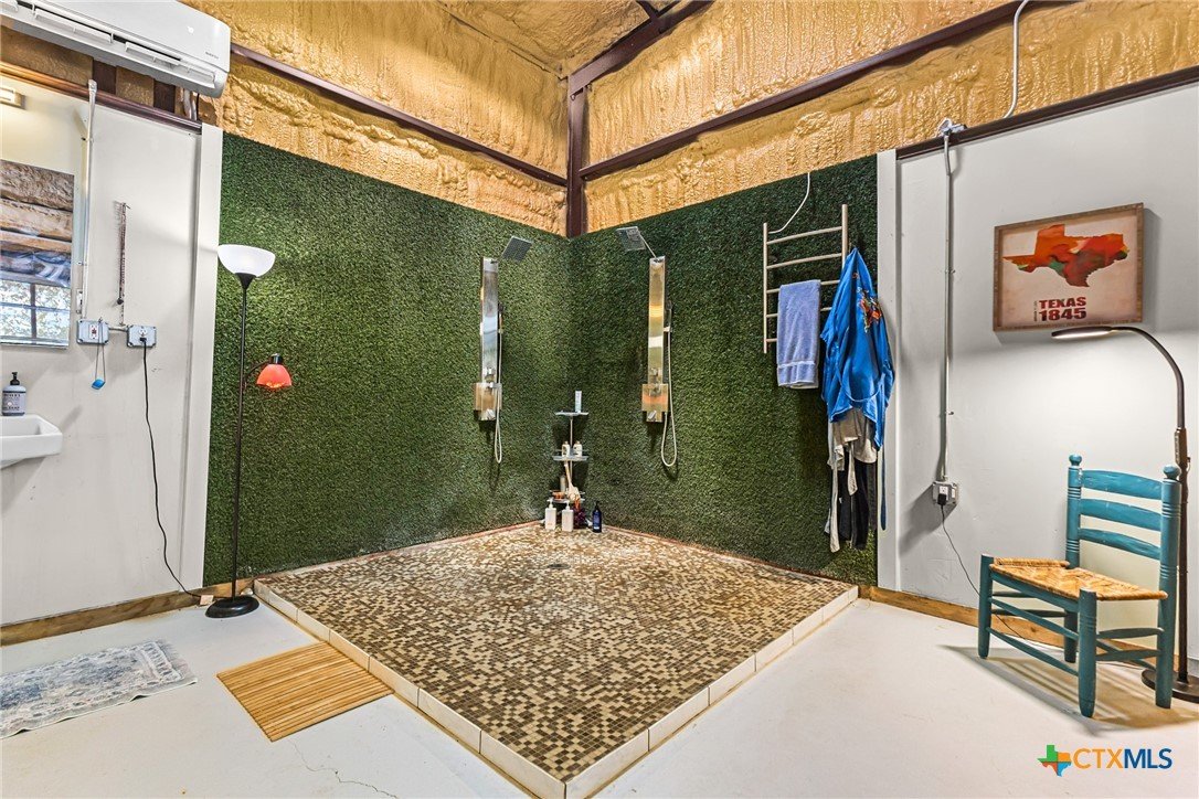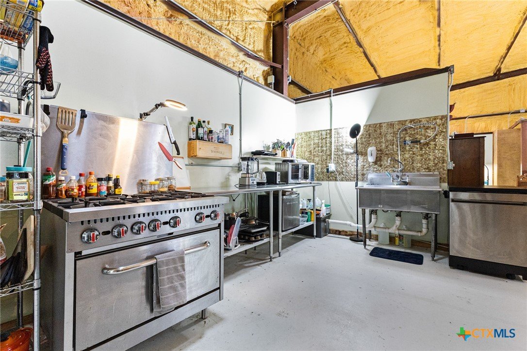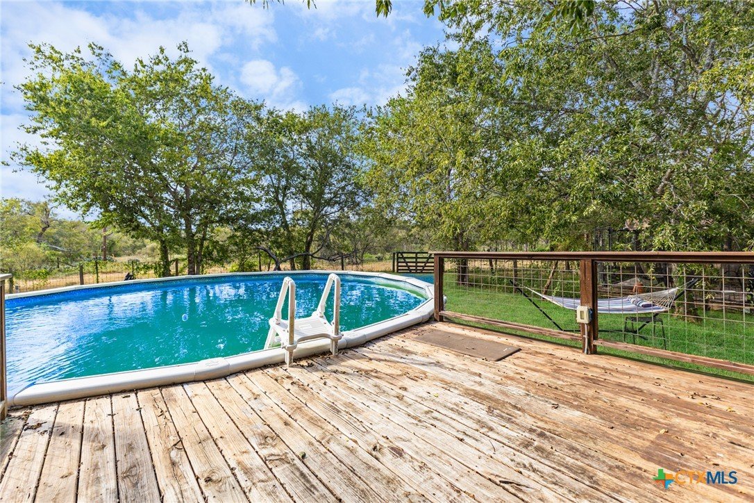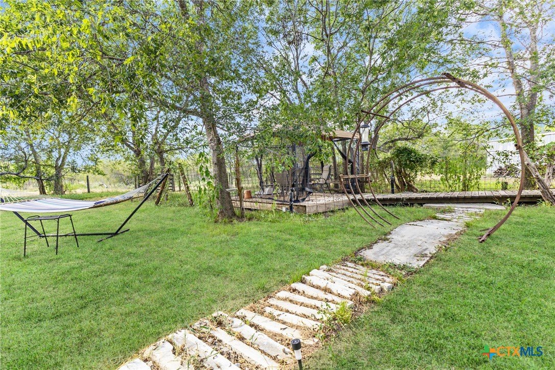 Escape the hustle and embrace simple living on this beautiful 10.05 acre property, ideal for those seeking privacy, space, functionality and opportunity. Tucked away in a grove of old mesquite and live oak trees, this land features a 2,000 sq ft, 1 bedroom, 1 bath barndominium full of rustic character and modern simplicity. With a cozy 550 sq ft tiny log cabin, offering potential for guest quarters, rental income, or a separate studio space. The potential does not stop there! With a rifle range, chicken coop with a solar powered automatic door, large 33 ft above ground pool, fenced garden, hunting blind with an outhouse, off-grid well water system with a salt based water softener, two storage sheds, recently installed aerobic plumbing field, and covered carport you can easily enjoy a fun and sustainable lifestyle. The fenced property has a homestead and ag exemption to help keep lower property taxes! The yard garden also offers peach and pear trees, asparagus, tomatoes, thyme and rosemary with room to grow much more. The open air barndominium with vaulted ceilings also boasts a five-star gourmet, commercial kitchen experience with stainless steel large 3-tier fridge, gas/oven range, and 3-tier sink with an ice machine outside. Enjoy a walk in shower with two triple shower heads complete with rain water, hand held and body faucet alongside a heated towel rack. Whether you’re looking to homestead, invest, or enjoy a more sustainable lifestyle, this property offers flexibility and charm to be a family compound, brewery, and much more. The possibilities here are as big as the Texas sky!