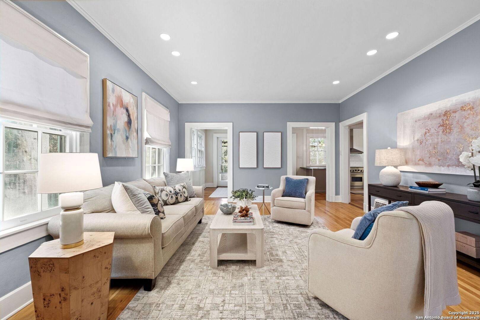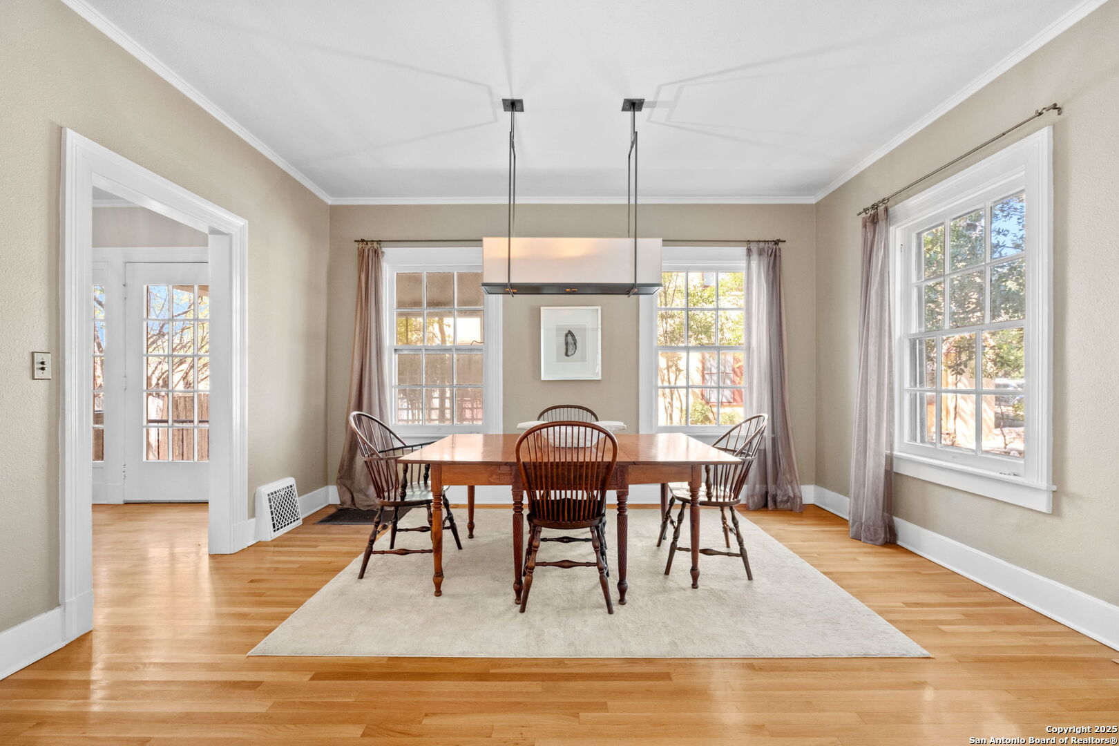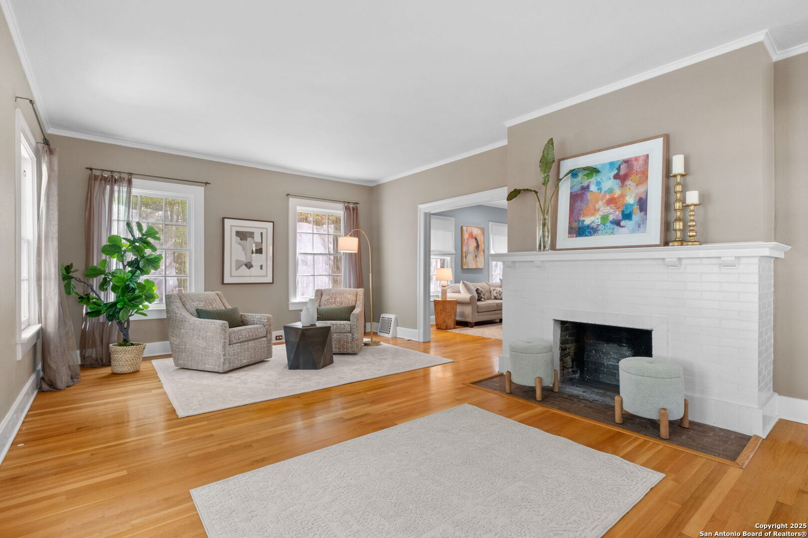 Steps from Landa Library & Gardens, this distinctive Atlee B. Ayres Colonial Revival is a hidden jewel in historic Monte Vista. Enjoy the charm of a walled garden from the wide veranda, while inside offers gracious formal rooms and a spacious floor plan. Beautiful updated kitchen with breakfast room looks out to the large screened in porch and well manicured yard. 3 spacious bedrooms with 2 baths upstairs. The resort-like .4 acre lot backs to Laurel Heights Place and includes a pool, casita/studio, and two-car garage. Additional highlights include a basement, butler's pantry, and porte cochere.