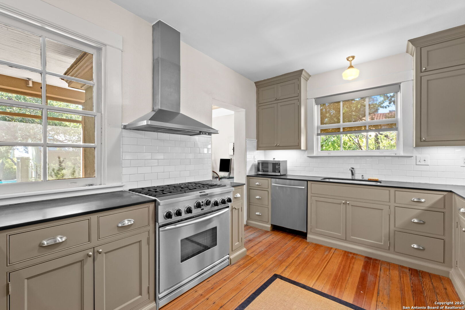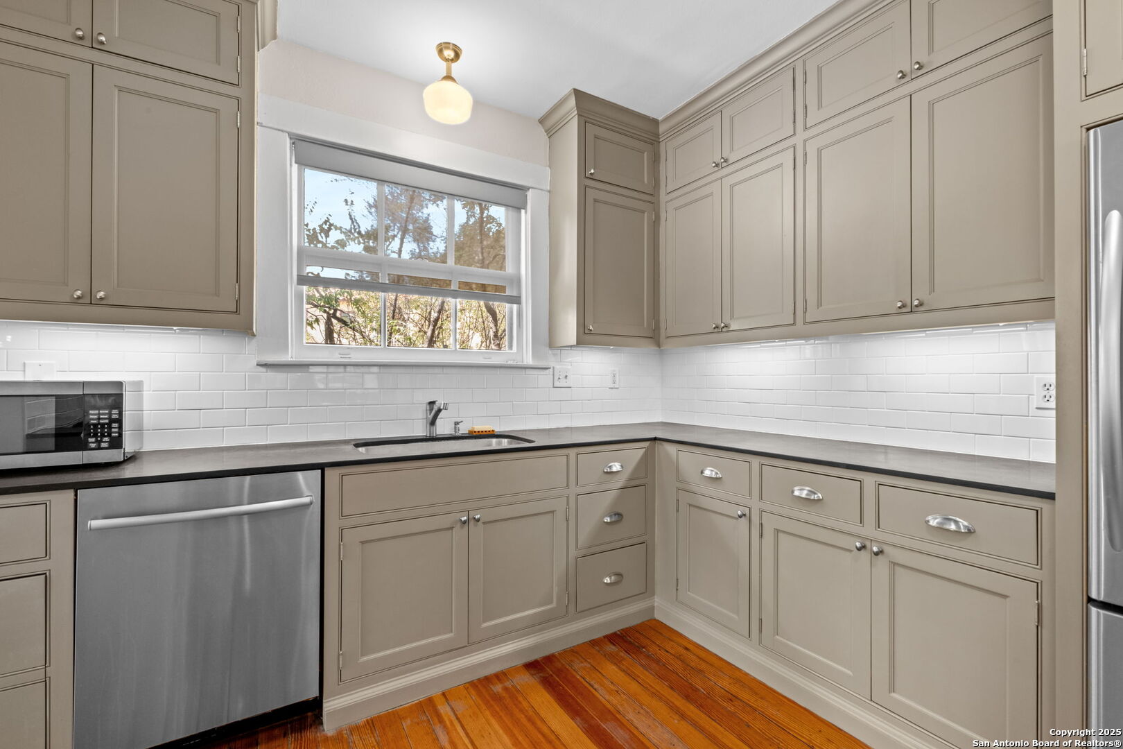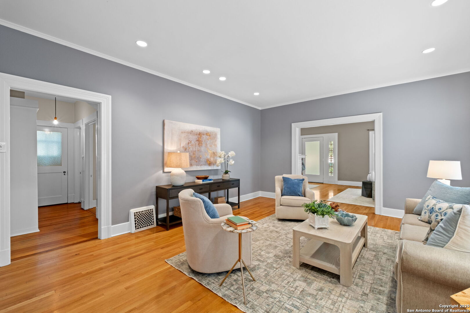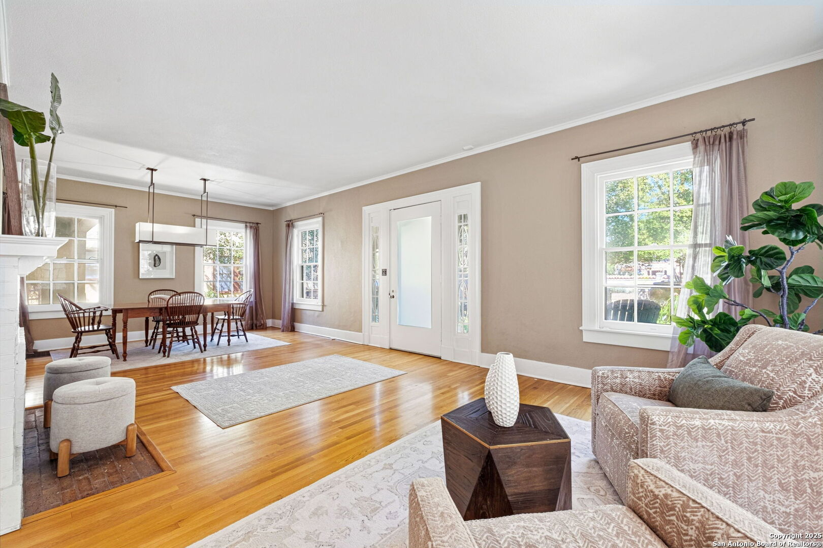Steps from Landa Library & Gardens, this distinctive Atlee B. Ayres Colonial Revival is a hidden jewel in historic Monte Vista. Enjoy the charm of a walled garden from the wide veranda, while inside offers gracious formal rooms and a spacious floor plan. Beautiful updated kitchen with breakfast room looks out to the large screened in porch and well manicured yard. 3 spacious bedrooms with 2 baths upstairs. The resort-like .4 acre lot backs to Laurel Heights Place and includes a pool, casita/studio, and two-car garage. Additional highlights include a basement, butler's pantry, and porte cochere.