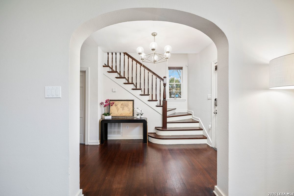 Nestled within Monticello Park's historic neighborhood, this meticulously renovated property offers a blend of historical charm and modern conveniences. With three bedrooms and two and a half bathrooms, this home provides a spacious and inviting environment. The classical floor plan welcomes you with timeless elegance, from the captivating staircase to the hardwood floors that span the home. Oversized windows bathe the interiors in natural light and provide picturesque views of the outdoors. The kitchen, updated for contemporary living, boasts ample cabinetry, granite countertops, and stainless steel appliances. The primary bedroom is a serene retreat, featuring a generous layout complemented by a cozy sitting area and an ensuite bathroom. Exceptional closet space provides practical storage solutions while enhancing the suite's functionality. Outside, the private backyard oasis beckons with a stunning pool and multiple seating areas, perfect for relaxation and hosting gatherings. With its seamless integration of historic charm and modern comforts, this property epitomizes the essence of luxurious living in the sought-after Monticello Park neighborhood.