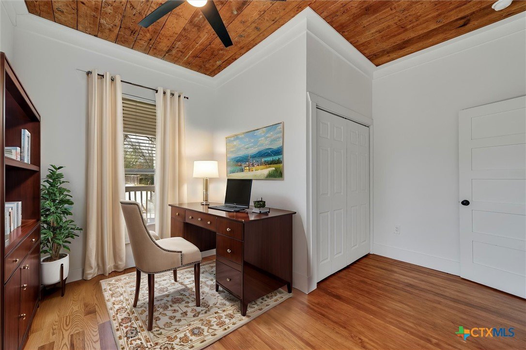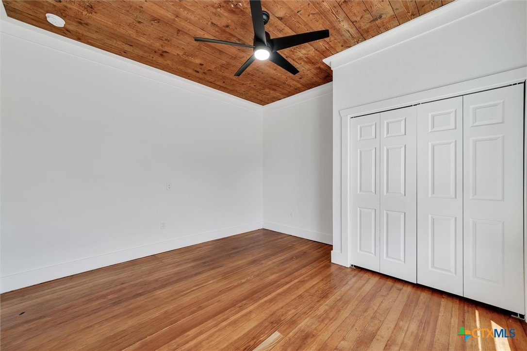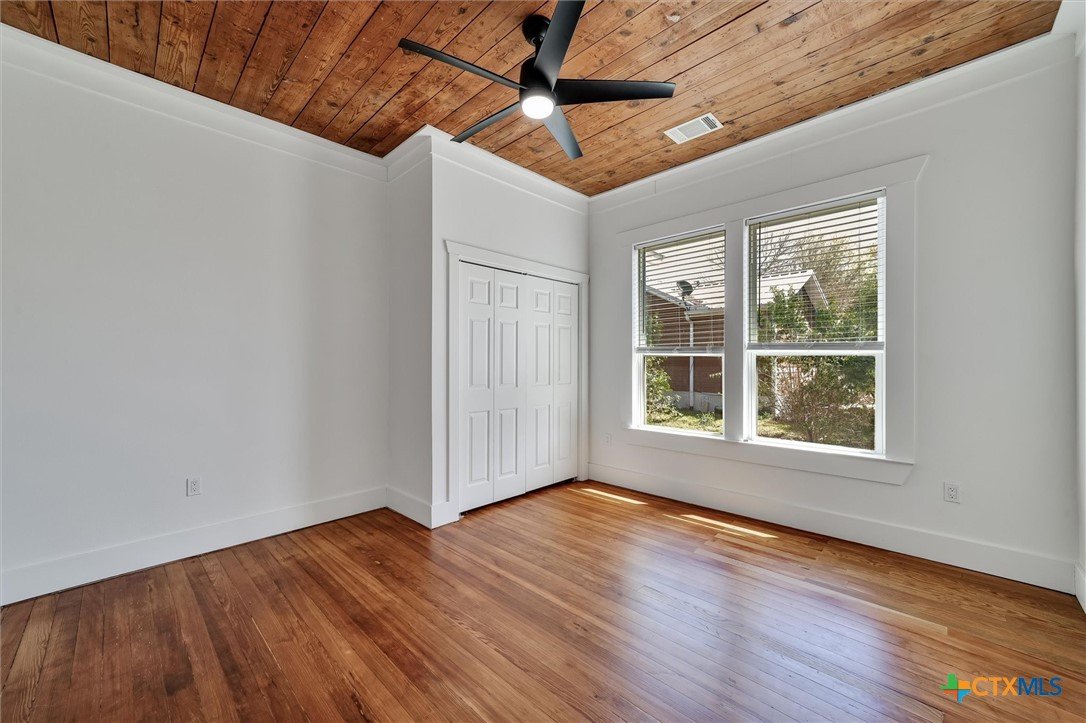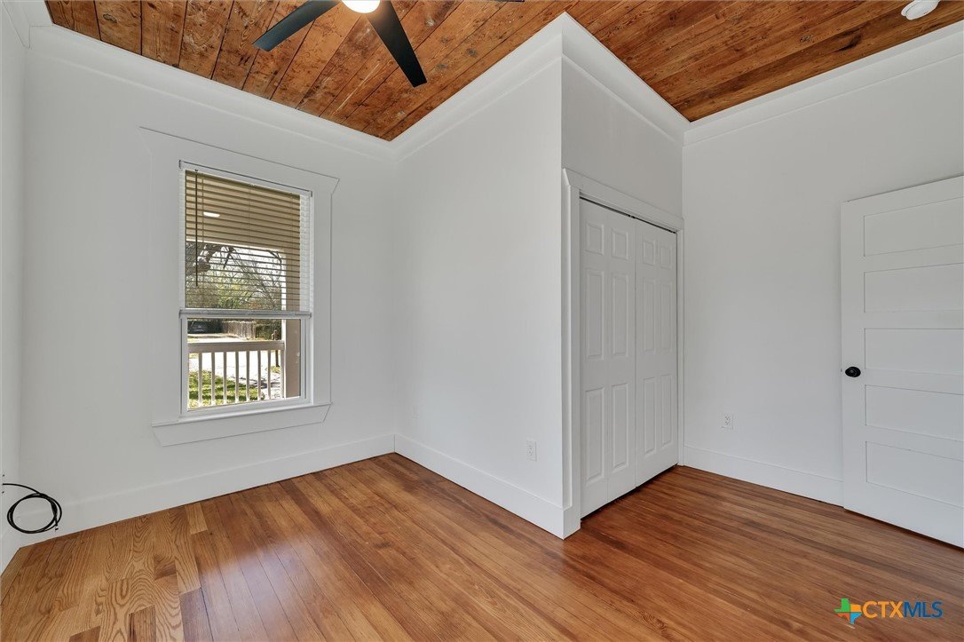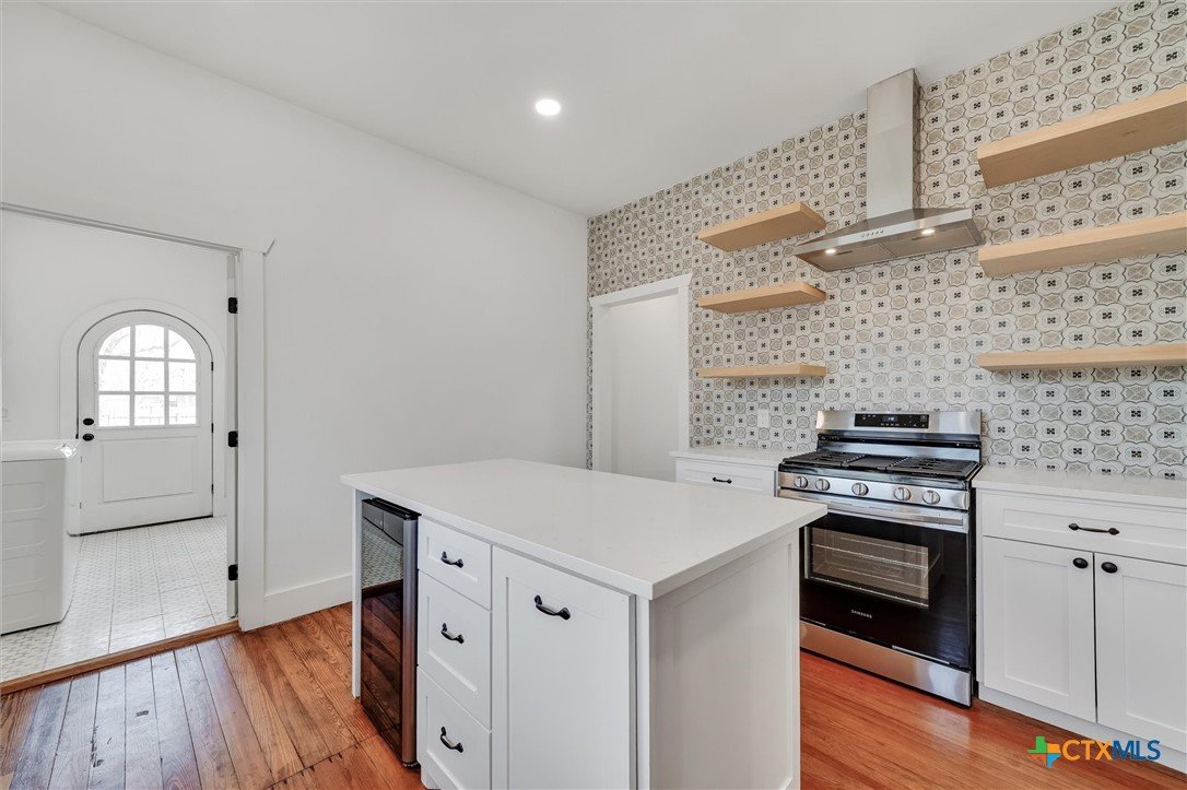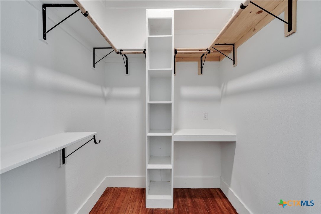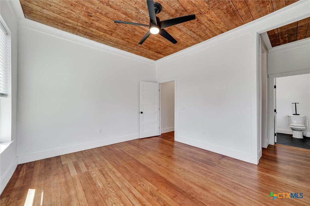 Nestled in the heart of Lockhart, this enchanting 1925 Craftsman/Farmhouse blends historic charm with modern updates. The home’s inviting white exterior, shaded by towering pecan trees, welcomes you with a lovely front porch—perfect for sipping sweet tea and enjoying the Texas breeze. Inside, original hardwoods and exposed shiplap walls highlight the home’s character, while high ceilings, recessed lighting, and thoughtful renovations create a bright, airy atmosphere. The fully remodeled kitchen is a chef’s dream, featuring custom white cabinets, a mosaic tile backsplash, stainless steel appliances, floating shelves, and a wine refrigerator nestled in the island. A charming Dutch door in the laundry room leads to the backyard, blending function and style. The primary suite is a serene retreat, with original shiplap ceilings, French doors to the backyard, and a spacious walk-in closet with built-in shelving. The en suite bathroom exudes vintage elegance with dual vanities, a walk-in shower, and classic hex and penny tile. Two additional bedrooms share a beautifully appointed hallway bathroom, complete with intricate marble and porcelain tilework. Outside, a sprawling 32’ back deck runs the length of the home, overlooking a huge, private yard. Two impressive workshops offer endless possibilities—the first (14’x20’) features a roll-up garage door and a concrete slab, while the second (16’x24’) includes a loft with stairs and double doors for easy access. Just minutes from Lockhart’s historic square, this home offers walkable convenience without an HOA. Move-in ready and oozing charm, this is a rare opportunity to own a piece of Texas history with all the comforts of modern living.