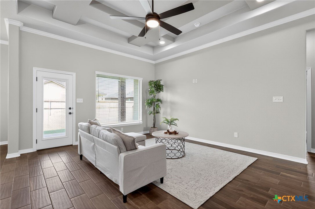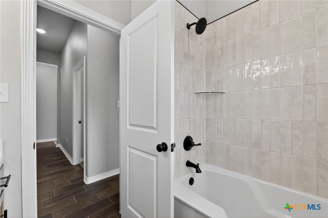 Step into the allure of a two-story retreat that seamlessly blends style and functionality. This beautifully designed home features four bedrooms and three bathrooms, with the fourth bedroom and third bath located upstairs alongside a spacious bonus room—perfect for a home office, entertainment area, or playroom. This upper-level space offers added privacy and flexibility, making it a true retreat within the home. Enjoy the luxury of top-tier finishes that define the Carothers Executive Homes experience. With over 2,200 square feet, this plan showcases beamed ceilings, walk-in closets, wood-look ceramic tile flooring, leathered granite countertops, and custom soft-close cabinets and drawers—all crafted with meticulous attention to detail. Located in Blackland Ranch, residents benefit from community amenities including a playground and dog park, as well as convenient access to Baylor Scott & White Hospital, schools, shopping, and dining. It’s a neighborhood designed for comfort, connection, and a better way of living.