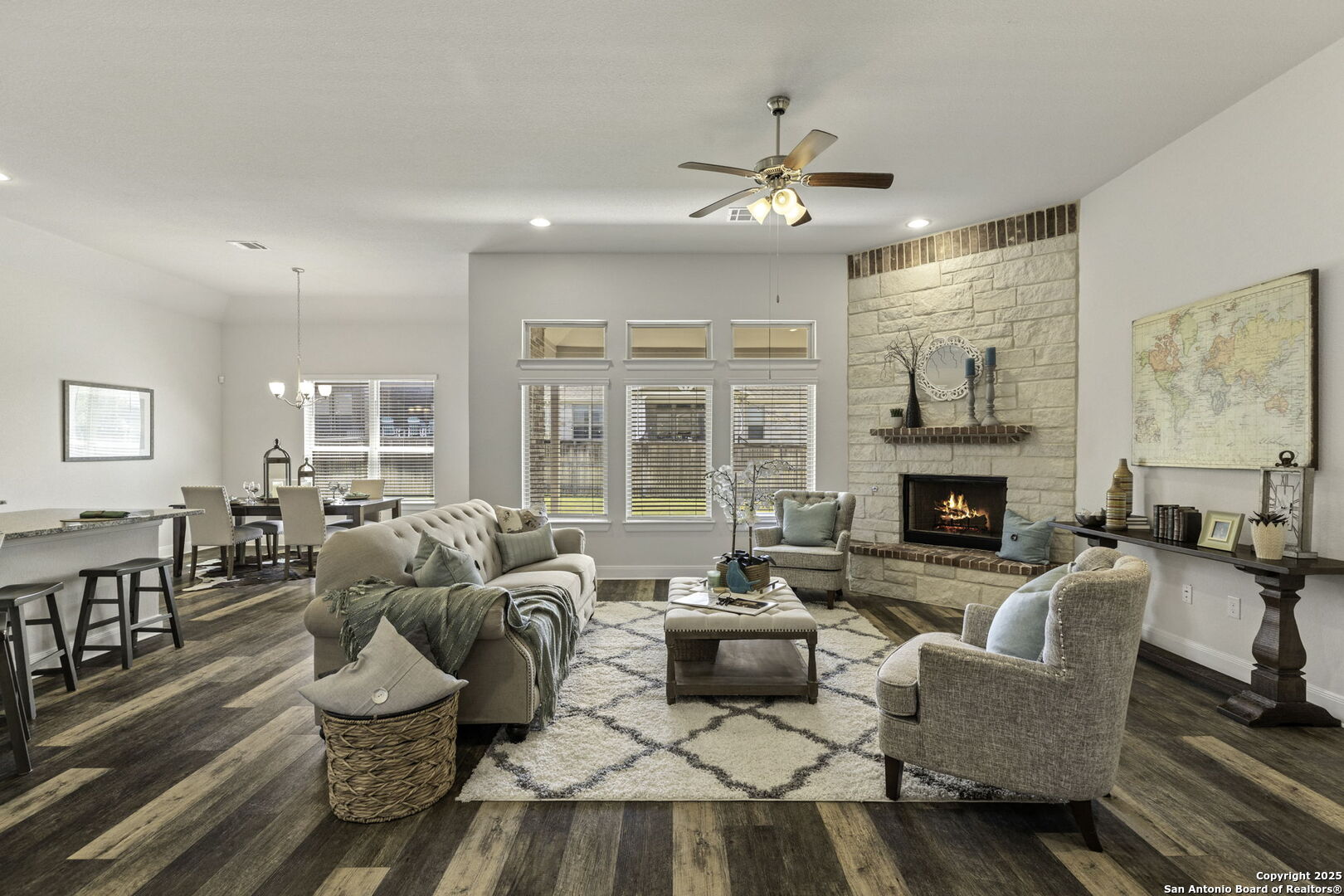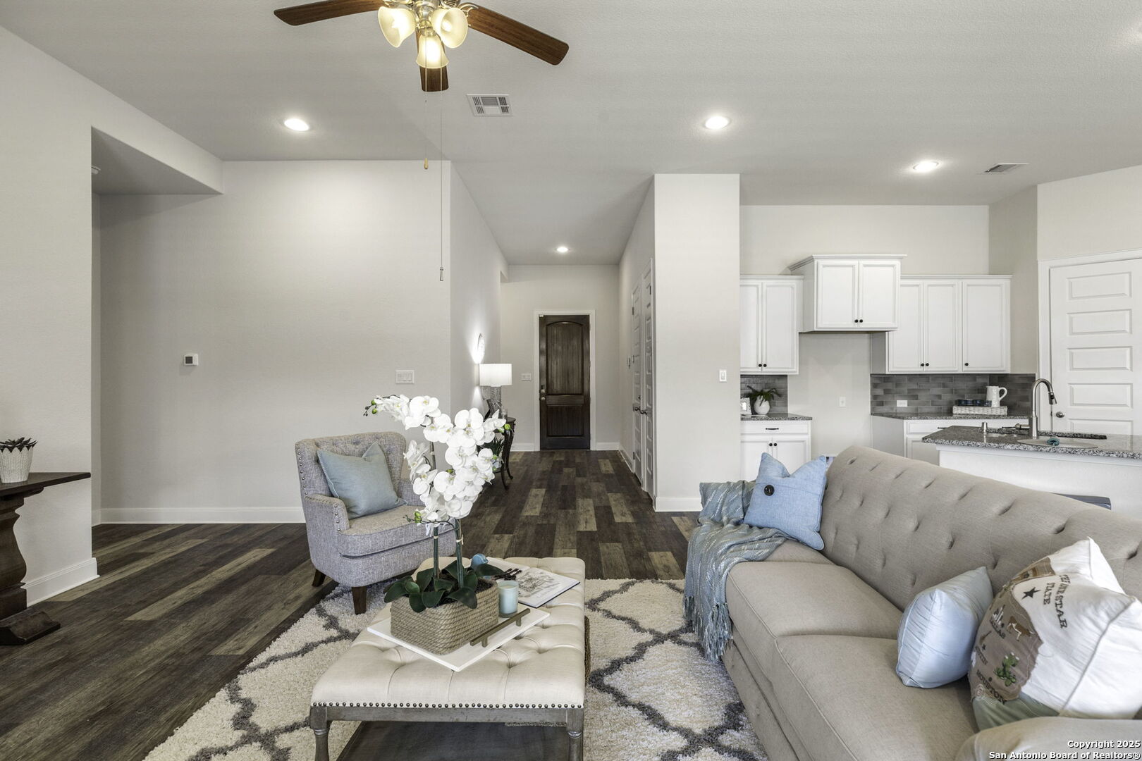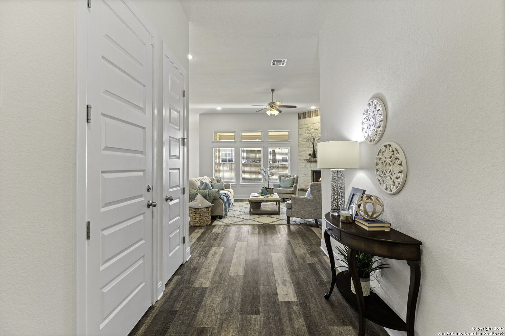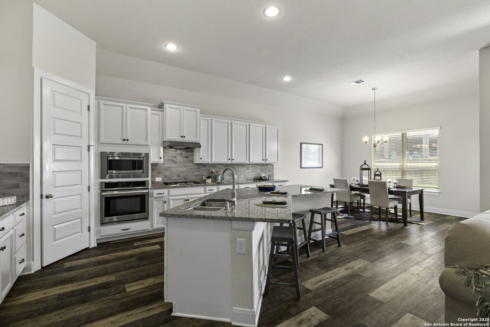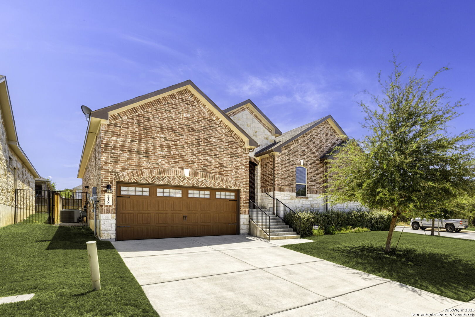 Welcome to this beautifully designed home in the sought-after community of The Villas at Manor Creek. Don't miss that Manor Creek has significantly lower property taxes than the nearby neighborhoods. Featuring the popular Roadrunner Plan, this residence blends comfort, functionality, and style. The gourmet kitchen opens to the family room and is highlighted by granite countertops, upgraded cabinetry, a gas cooktop, spacious island, walk-in pantry, and an oversized breakfast area - ideal for both everyday living and entertaining. Thoughtful upgrades include luxury vinyl plank flooring, a tankless water heater, water softener, built-in desk area, smart home technology, and full front-and-back irrigation. Situated on a corner lot, the property offers additional space plus quick access to Highway 46 West. The extended backyard with a gas connection on the deep covered back porch makes outdoor living easy. The primary suite serves as a private retreat with a spa-like bath and an expansive closet that connects directly to the laundry room for convenience. Community amenities include walking trails, a swimming pool, and a playground. Located in West New Braunfels, residents enjoy close proximity to shopping and schools, while benefiting from lower infrastructure taxes compared to nearby new developments. 218 Sigel offers the perfect combination of modern upgrades, thoughtful design, and a prime location - a home you'll be proud to call your own.