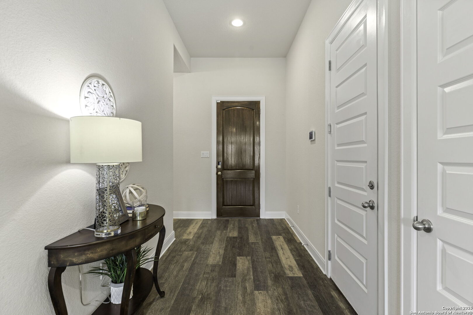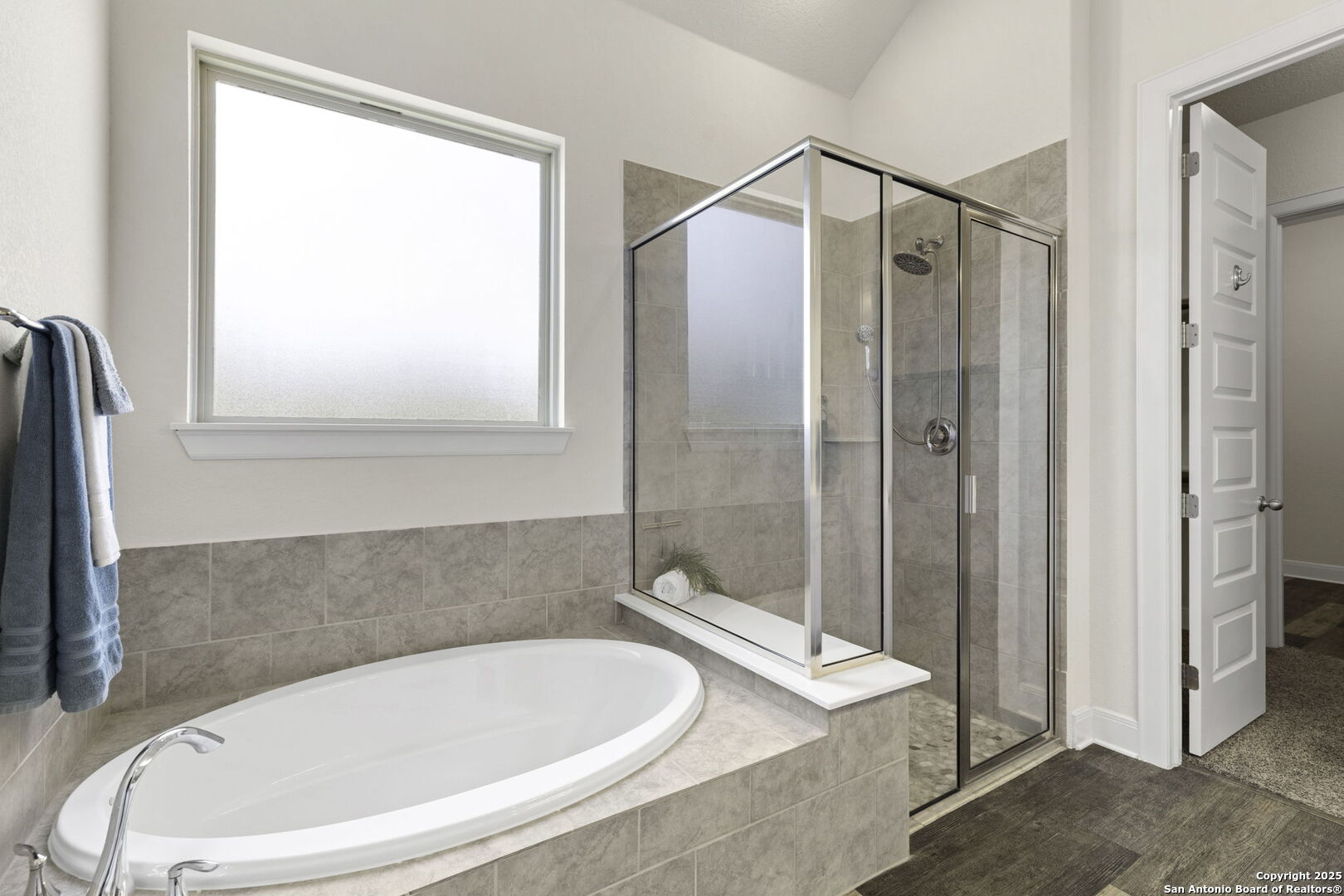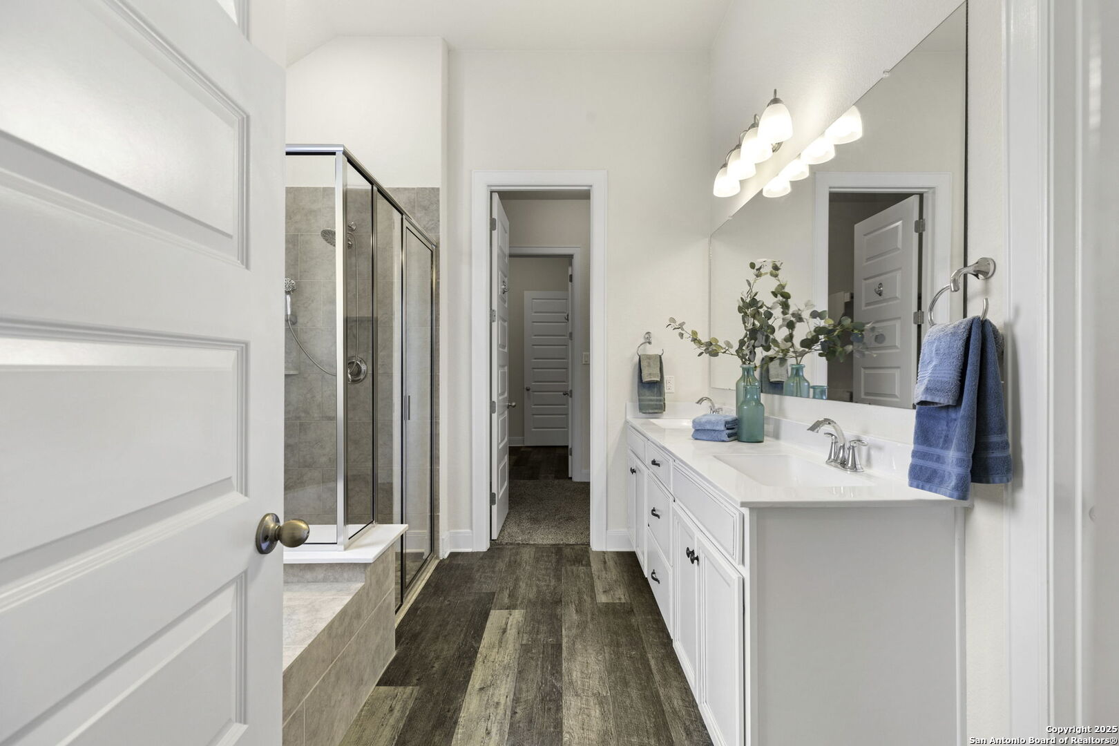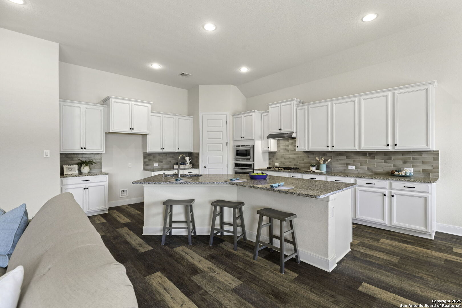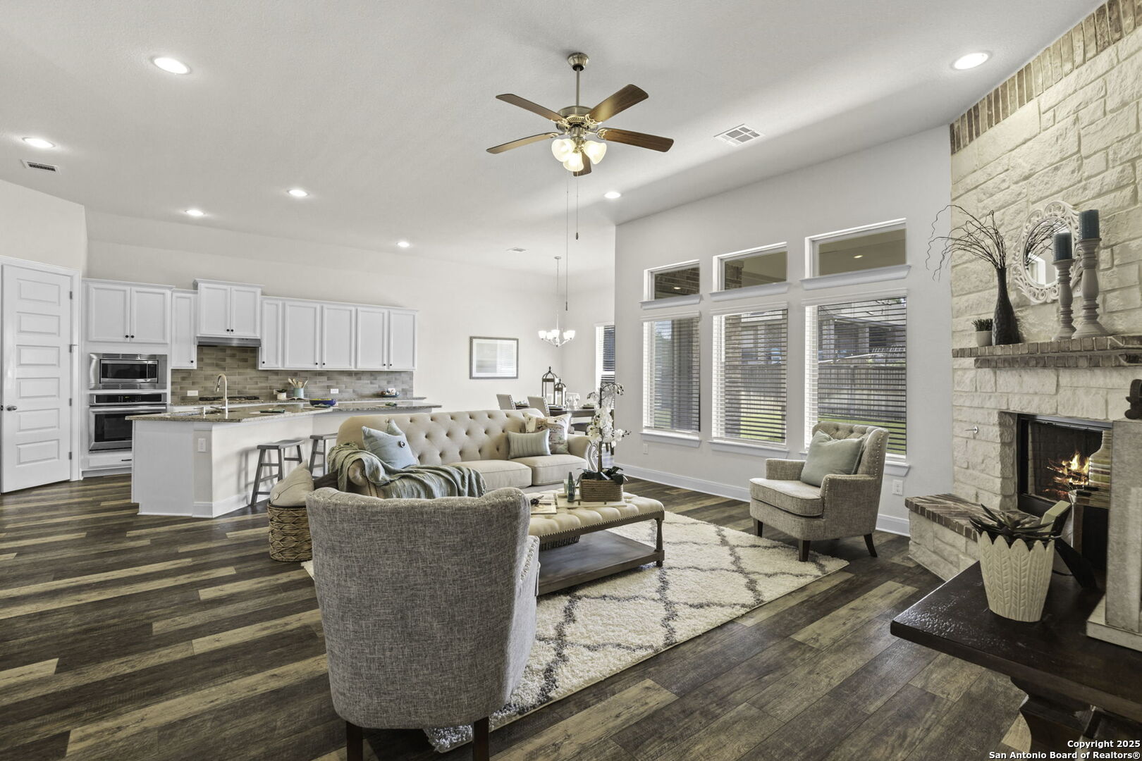 Welcome to this beautifully designed home in the sought-after community of The Villas at Manor Creek. Don't miss that Manor Creek has significantly lower property taxes than the nearby neighborhoods. Featuring the popular Roadrunner Plan, this residence blends comfort, functionality, and style. The gourmet kitchen opens to the family room and is highlighted by granite countertops, upgraded cabinetry, a gas cooktop, spacious island, walk-in pantry, and an oversized breakfast area - ideal for both everyday living and entertaining. Thoughtful upgrades include luxury vinyl plank flooring, a tankless water heater, water softener, built-in desk area, smart home technology, and full front-and-back irrigation. Situated on a corner lot, the property offers additional space plus quick access to Highway 46 West. The extended backyard with a gas connection on the deep covered back porch makes outdoor living easy. The primary suite serves as a private retreat with a spa-like bath and an expansive closet that connects directly to the laundry room for convenience. Community amenities include walking trails, a swimming pool, and a playground. Located in West New Braunfels, residents enjoy close proximity to shopping and schools, while benefiting from lower infrastructure taxes compared to nearby new developments. 218 Sigel offers the perfect combination of modern upgrades, thoughtful design, and a prime location - a home you'll be proud to call your own.