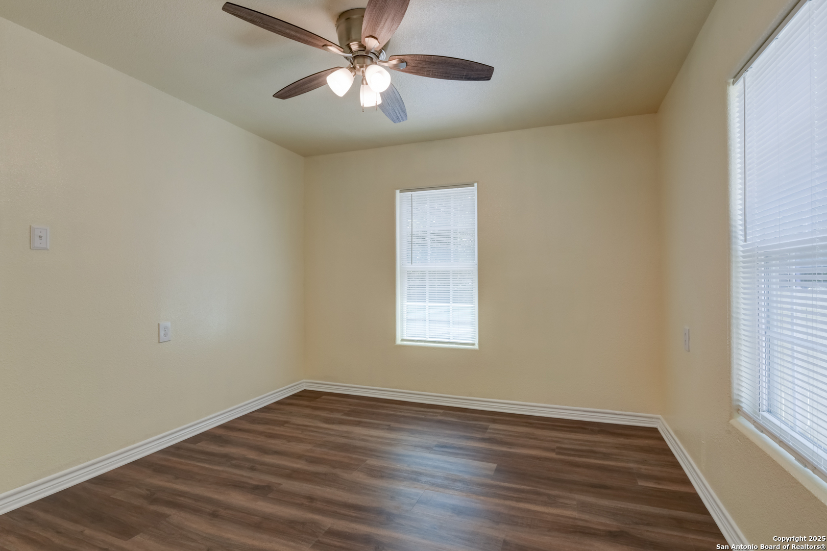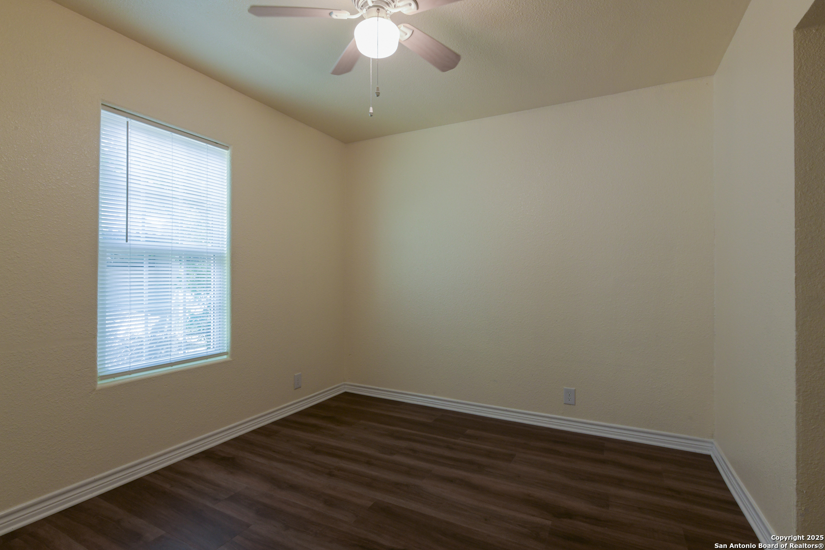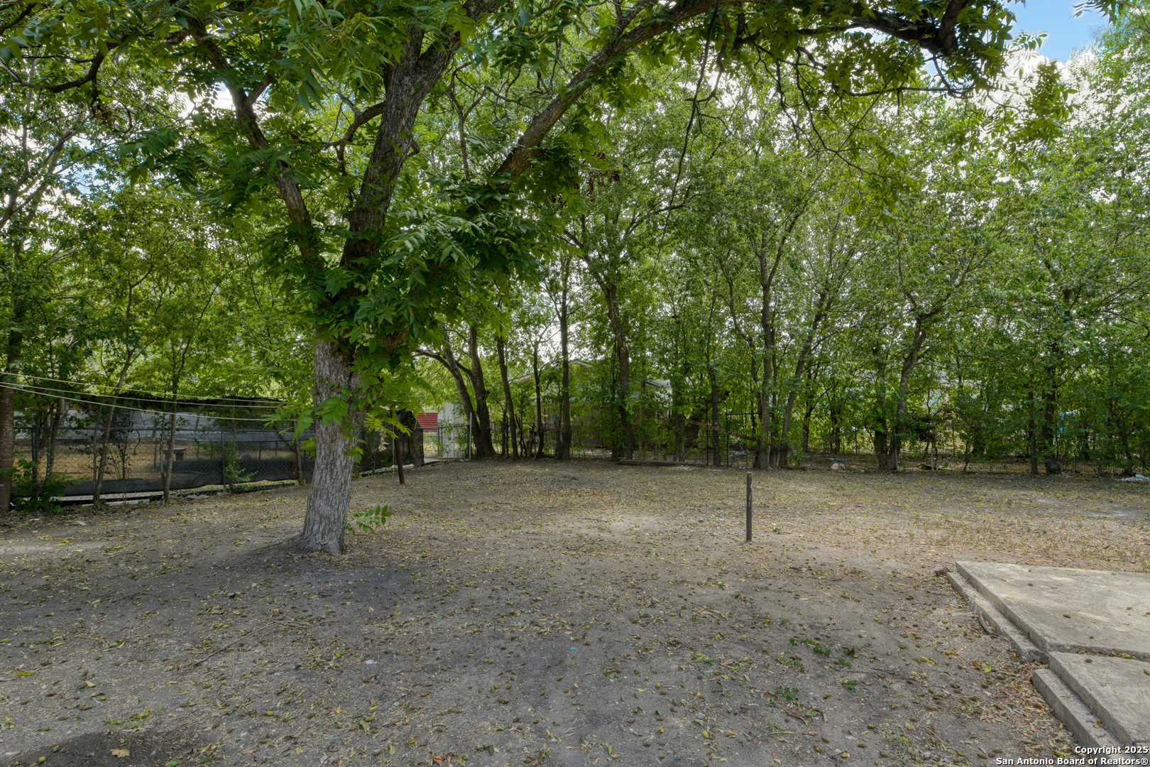Tucked away in a central spot just minutes from downtown San Antonio, this single-story home welcomes you with its fresh pale-yellow exterior and inviting covered entries at both the front and side. From the moment you arrive, the cheerful curb appeal sets the stage for the warm interior that follows. Step inside and you'll find a bright living room where neutral tones and updated tile flooring create a clean, comfortable space. The ceiling fan overhead adds to the ease of daily living, and the layout flows naturally into the dining area and kitchen, making the home feel connected and functional. In the kitchen, ample cabinet storage lines the wall, paired with a smooth-top range and a chimney vent ready for everyday cooking. Sunlight pours in through the windows, giving the space a welcoming and open feel that makes even routine meals enjoyable. The primary bedroom offers a spacious retreat with water-resistant vinyl wood-like flooring that brings in both style and practicality. Two additional bedrooms share the same updated flooring, keeping the home consistent and fresh throughout. Each room is brightened by natural light and cooled by ceiling fans, making them comfortable spaces for rest or work. The bathroom has also been updated, featuring a tub and shower combination surrounded by beautiful tile that extends all the way to the ceiling. Out back, the story continues with a large yard shaded by mature trees, creating a relaxing space for outdoor living, gatherings, or simply enjoying the open air. A storage shed stands ready to handle tools, yard gear, or seasonal items, adding a layer of convenience to the property. With three bedrooms, thoughtful updates, and a location close to downtown conveniences, this home offers the best of both comfort and practicality in one charming package.