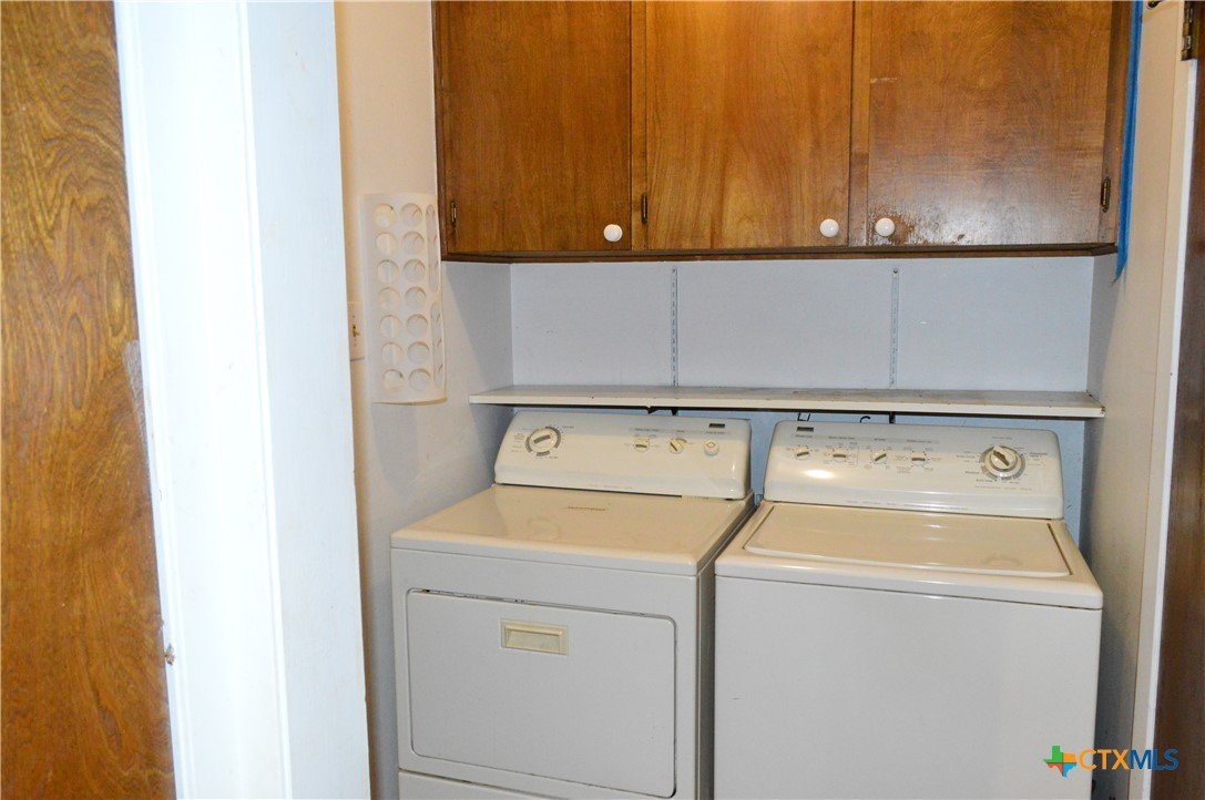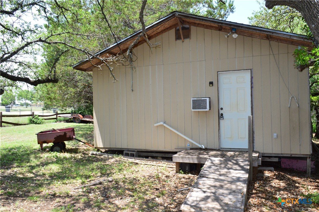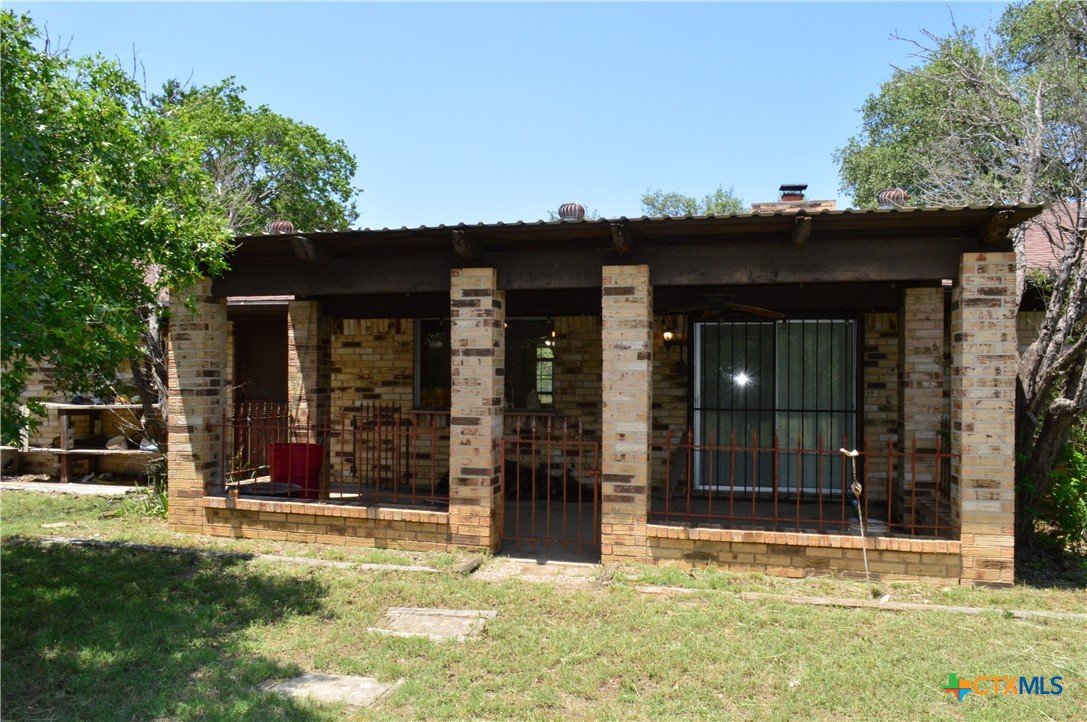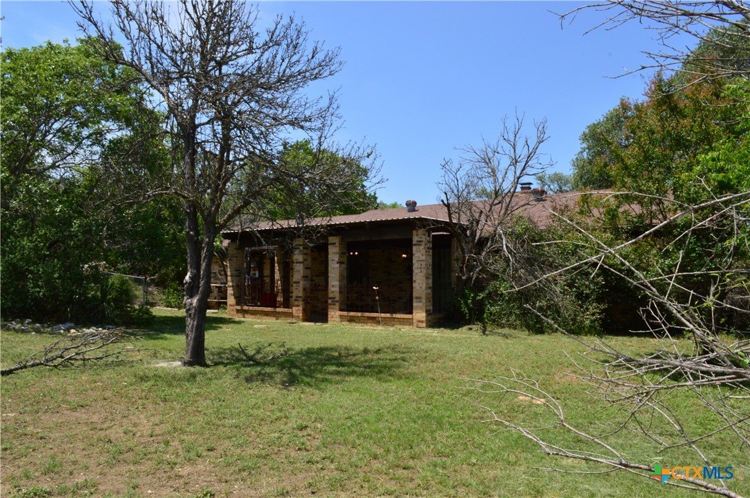 FOUR SIDES BRICK HOME ON 1.19 ACRE LOT, THREE BEDROOMS, TWO BATHS, TWO CAR GARAGE, WOOD BURNING FIREPLACE, FENCED WITH DRIVE THROUGH GATE ON THE ASPHALT DRIVEWAY, 20' X 24' SHOP WITH ELECTRICITY AND WINDOW AIR CONDITIONER, 18' X 20' CARPORT The home features a 17' 8" X 5' covered front porch and a 20' 5" X 11' covered patio. The kitchen has a range, dishwasher, disposal, and a water line for a refrigerator. The family room has a ceiling fan and wood burning fireplace with mantle and raised hearth. There are ceiling fans in all bedrooms, the kitchen and dining area. The back yard is private, and lot is dotted with mature shade trees in front and back. There is a second driveway leading to the 18' X 20' carport. A second drive-through gate allows easy access to the lower yard. Utilities are provided by Kempner Water Supply, Pedernales Electric Coop, on-site septic, and Spectrum high speed internet. Please visit the virtual tour for videos of the home and property. The property is being sold AS IS. Cash only.