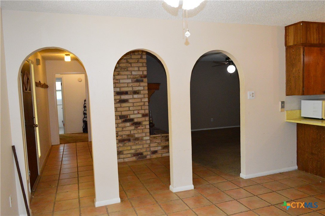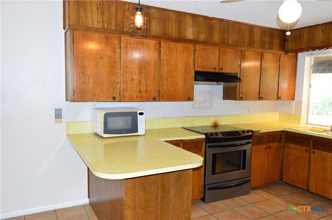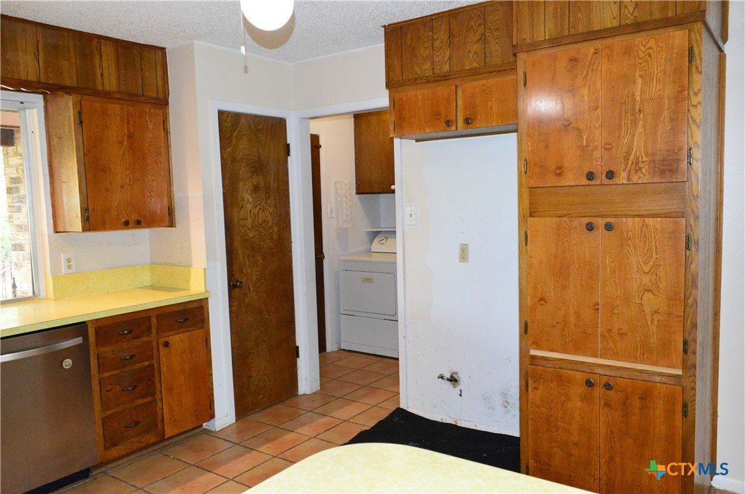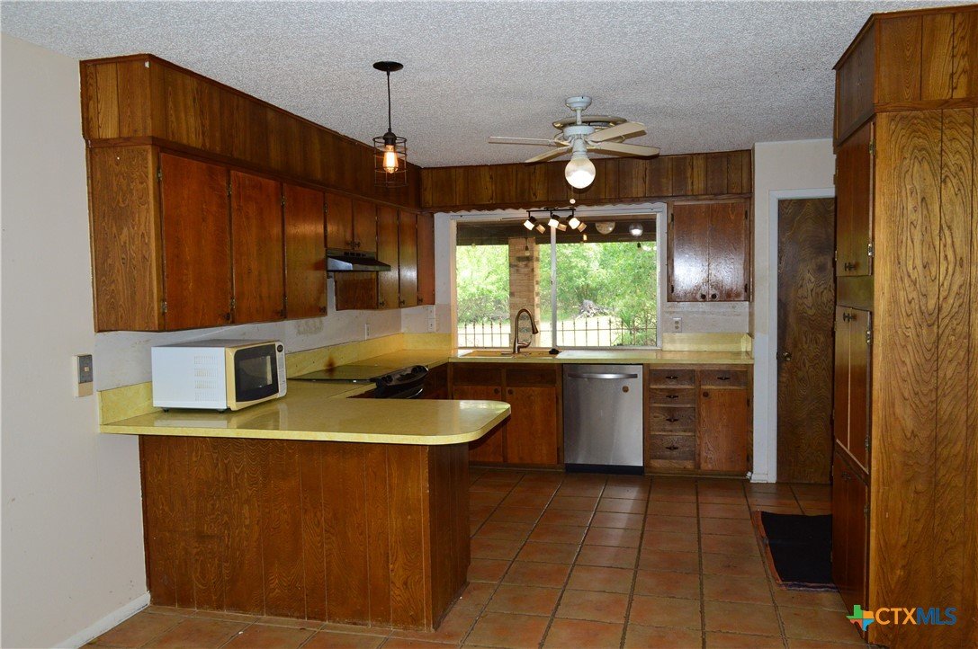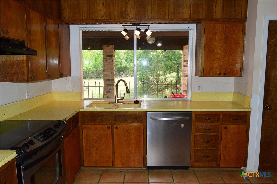 FOUR SIDES BRICK HOME ON 1.19 ACRE LOT, THREE BEDROOMS, TWO BATHS, TWO CAR GARAGE, WOOD BURNING FIREPLACE, FENCED WITH DRIVE THROUGH GATE ON THE ASPHALT DRIVEWAY, 20' X 24' SHOP WITH ELECTRICITY AND WINDOW AIR CONDITIONER, 18' X 20' CARPORT The home features a 17' 8" X 5' covered front porch and a 20' 5" X 11' covered patio. The kitchen has a range, dishwasher, disposal, and a water line for a refrigerator. The family room has a ceiling fan and wood burning fireplace with mantle and raised hearth. There are ceiling fans in all bedrooms, the kitchen and dining area. The back yard is private, and lot is dotted with mature shade trees in front and back. There is a second driveway leading to the 18' X 20' carport. A second drive-through gate allows easy access to the lower yard. Utilities are provided by Kempner Water Supply, Pedernales Electric Coop, on-site septic, and Spectrum high speed internet. Please visit the virtual tour for videos of the home and property. The property is being sold AS IS. Cash only.