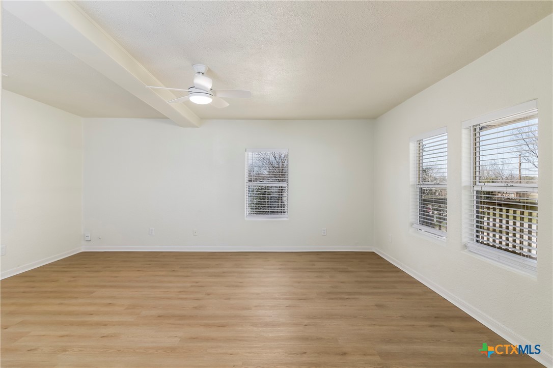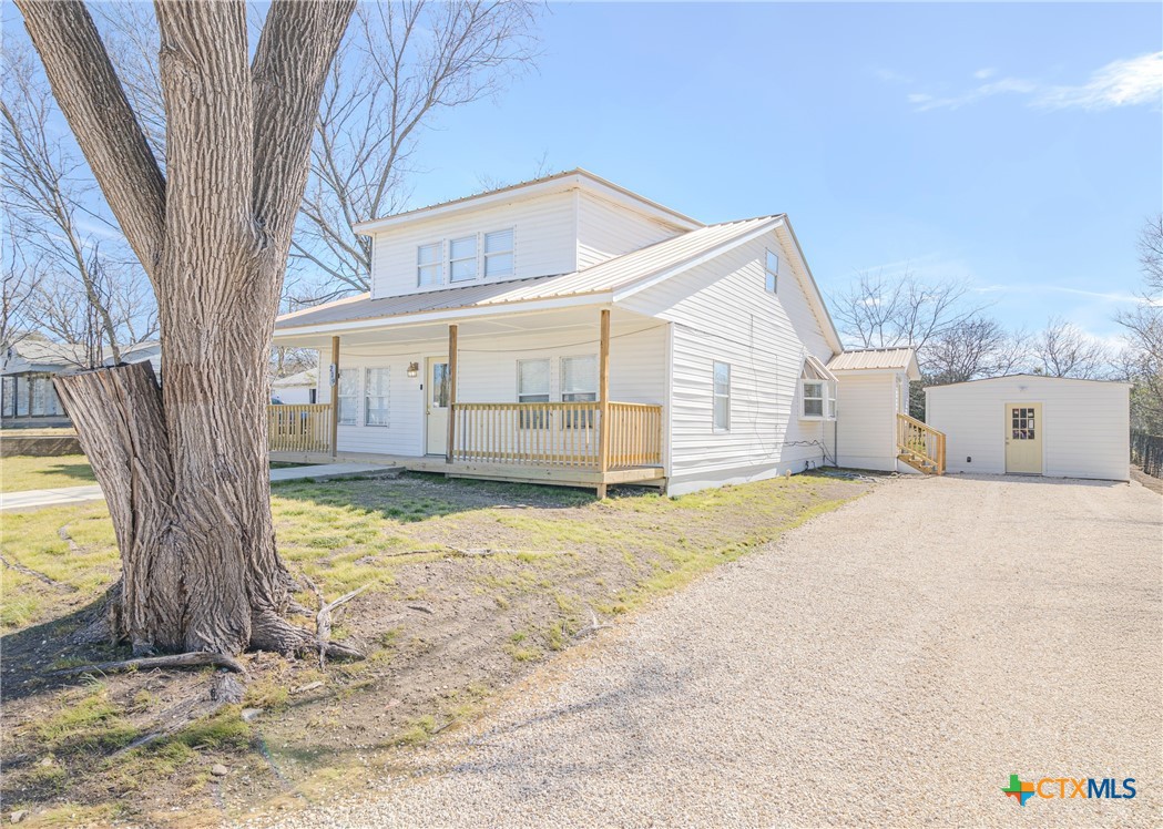 Don’t miss out on this beautifully remodeled gem located in the heart of Troy, Texas! This charming 3-bedroom, 2.5-bathroom home boasts a thoughtful layout, with the primary suite conveniently located downstairs. The primary bathroom offers a stunning vanity, a tiled walk-in shower, and a luxurious soaking tub. Upstairs, you’ll find the secondary bedrooms along with a cozy loft area. The secondary bathroom includes a tub-shower combo and vanity. The upgraded kitchen is a chef’s dream, featuring stainless steel appliances, quartz countertops, and a sink with a view of the formal dining area. A separate laundry room provides access to the spacious backyard, perfect for entertaining guests. The backyard features a large workshop, a beautiful deck perfect for cookouts and family gatherings. The home also comes with a durable metal roof for long-lasting protection and a covered front porch ideal for morning coffee. This property is a must-see for anyone looking for comfort, style, and the perfect setting for family and friends!
