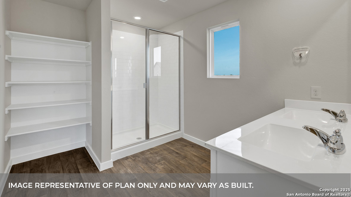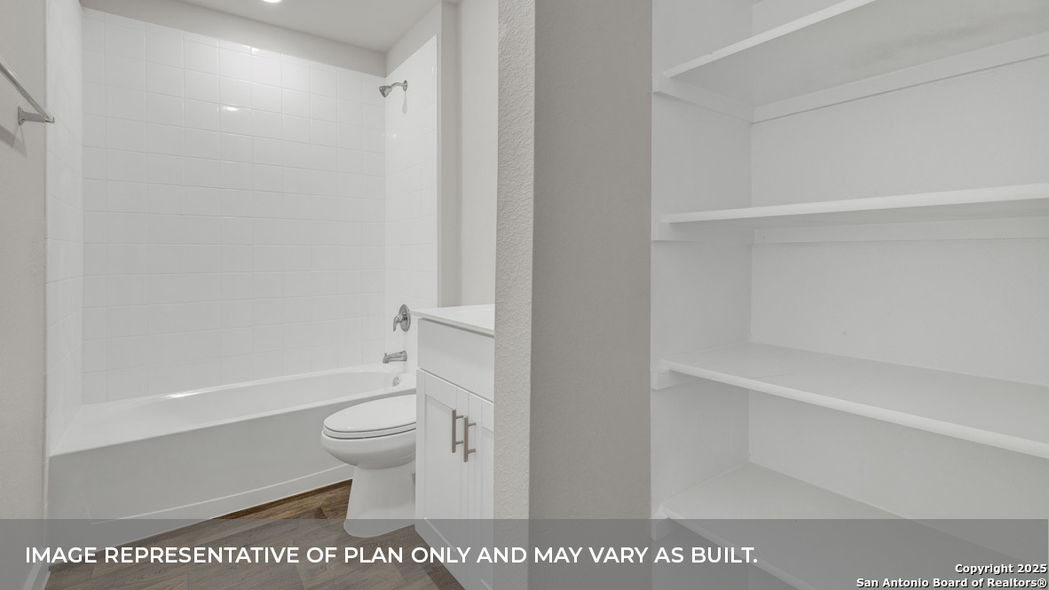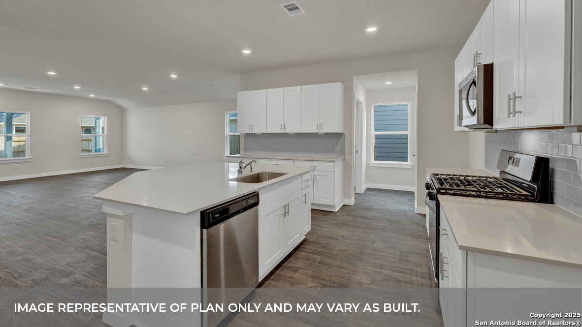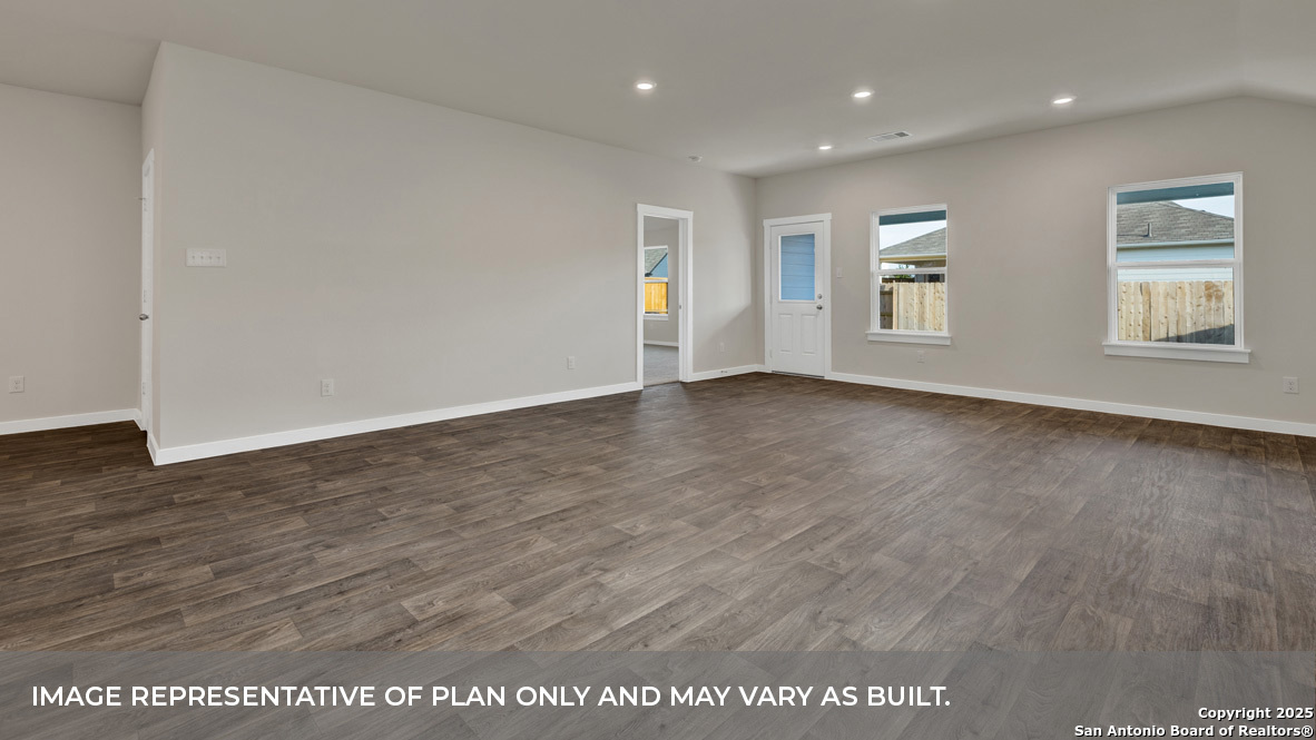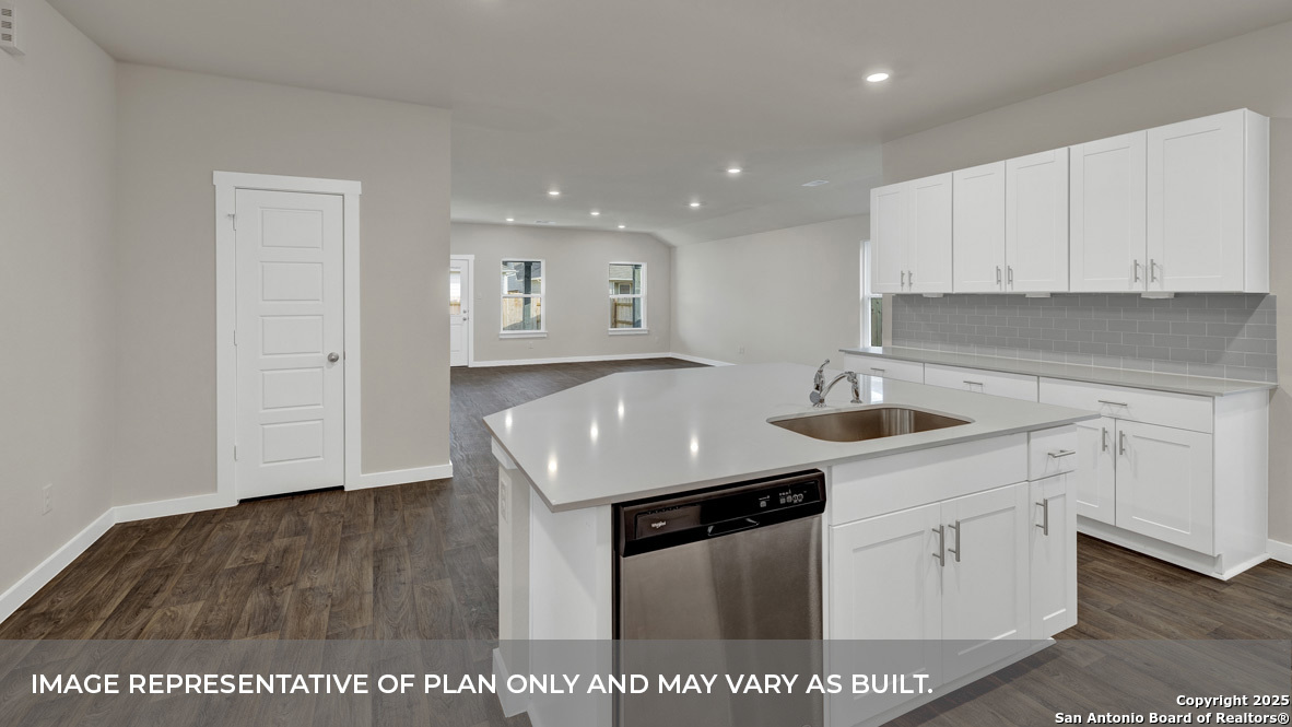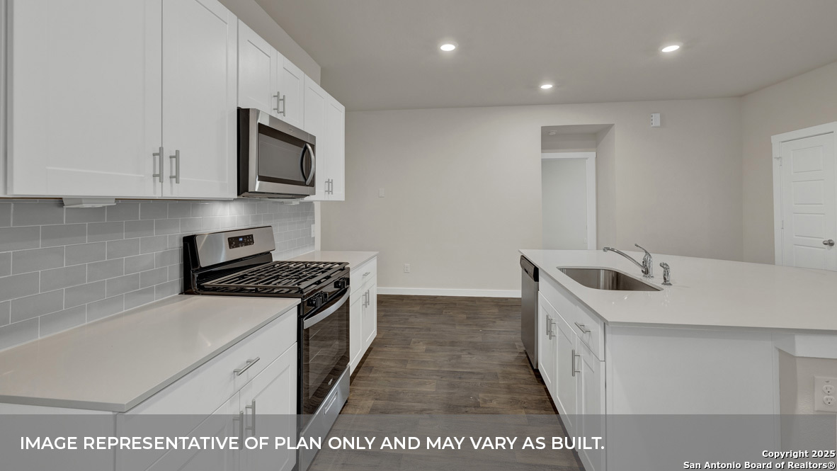 MOVE IN READY. COMMUNITY LOCATED NEXT TO I-35. Check out the Kingston, one of our one-story floorplans offered at Trace in San Marcos Texas. This beautiful 2,024 square feet home has 4 bedrooms, 2 bathrooms home and a 2-car garage. Our homes in Trace feature farmhouse exteriors. Step inside the home from the covered front porch and pass through the long foyer to the family room, kitchen, and dining room. This open concept living space will become the heart of your home, a place where many memories will be made. The kitchen features an oversized island with undermount sink, quartz countertops, 36" upper cabinets, and stainless-steel appliances. The utility room and pantry are tucked off the kitchen. The primary bedroom is located at the back of the home, off the family room. Stretch out at the end of your day in this private ensuite. The attached bathroom includes a walk-in shower, double vanity with marble counter tops, private door to the toilet area, and a walk-in closet. The secondary bedrooms and bathroom are located at the front of the home. Each bedroom includes a closet with wood shelving and the hall bathroom includes a shower/tub combination. The Kingston includes vinyl flooring throughout the common areas of the home, and carpet in the bedrooms. All our new homes feature a covered back patio, full sod, an irrigation system in the front and back yard, and a 6' privacy fence around the full yard. This home includes our America's Smart Home base package, which includes the Amazon Echo Pop, Front Door Bell Deadbolt Lock, Home Hub, Thermostat, and Deako Smart Switches