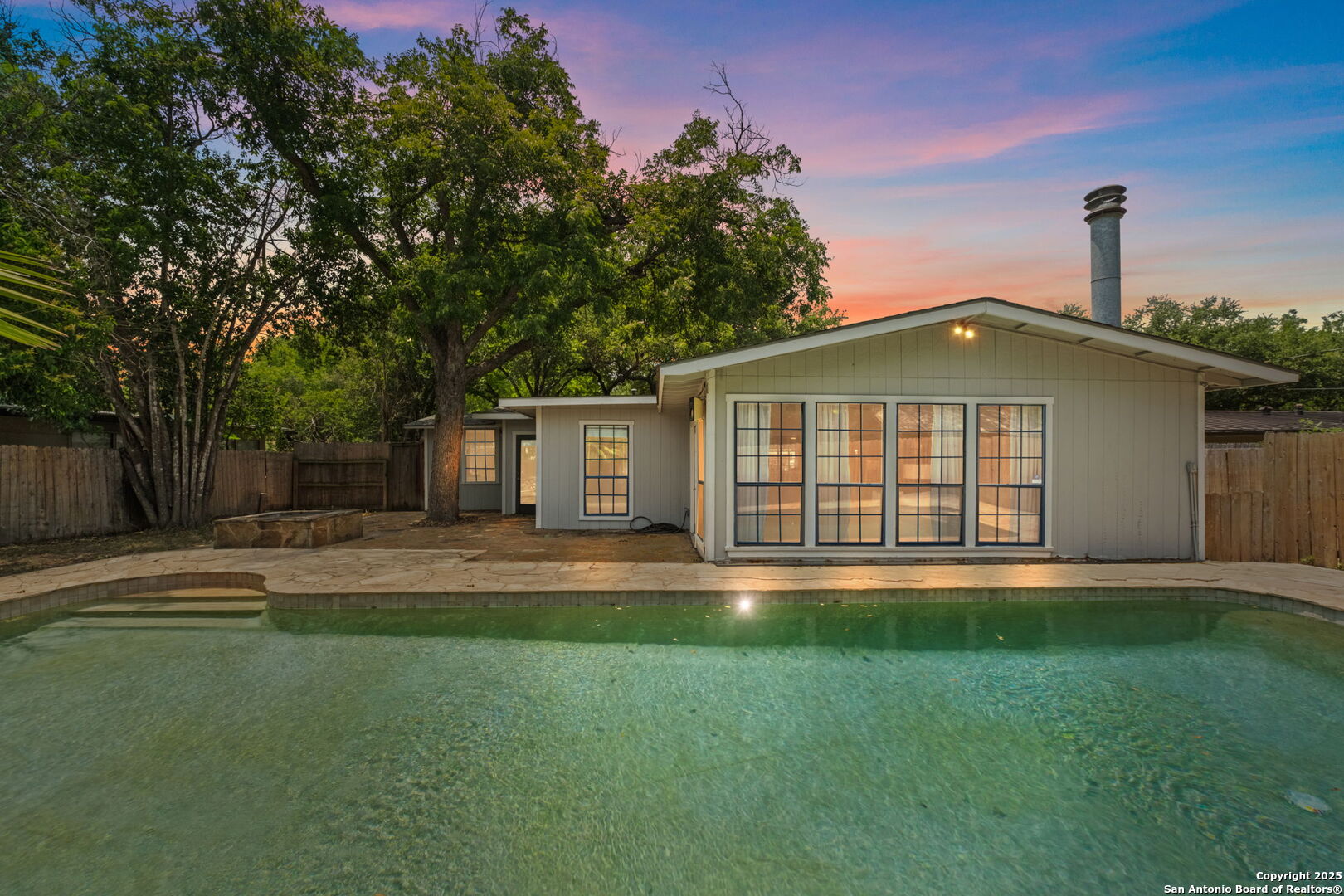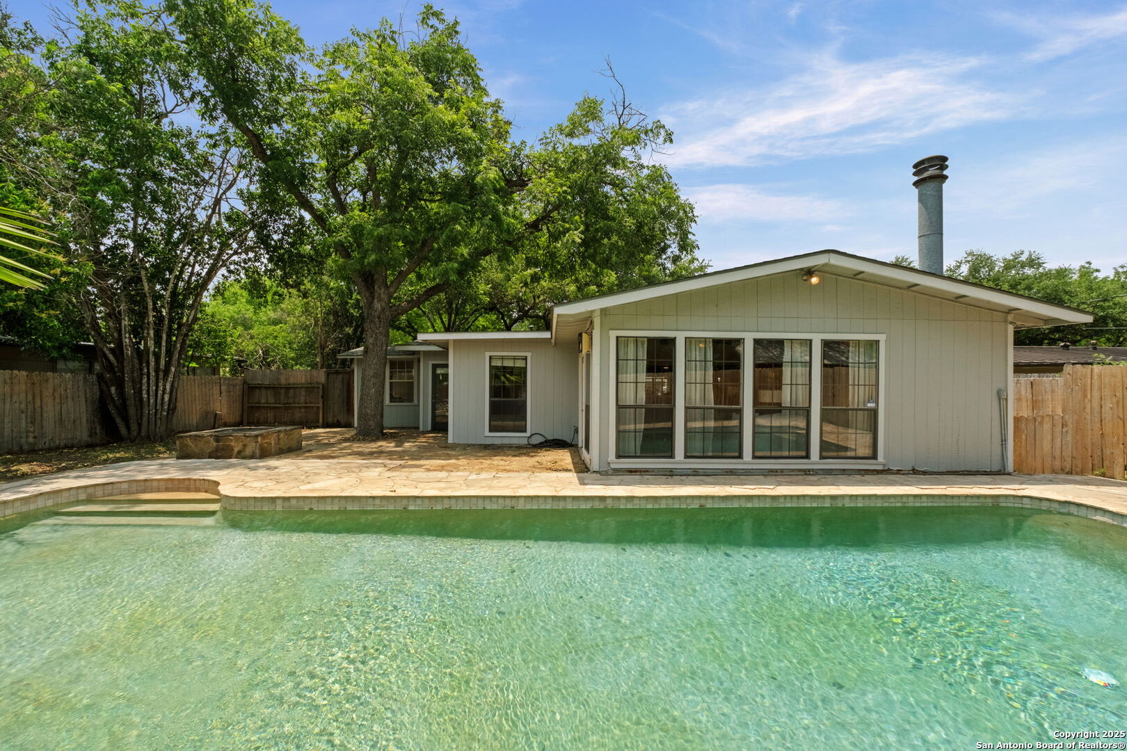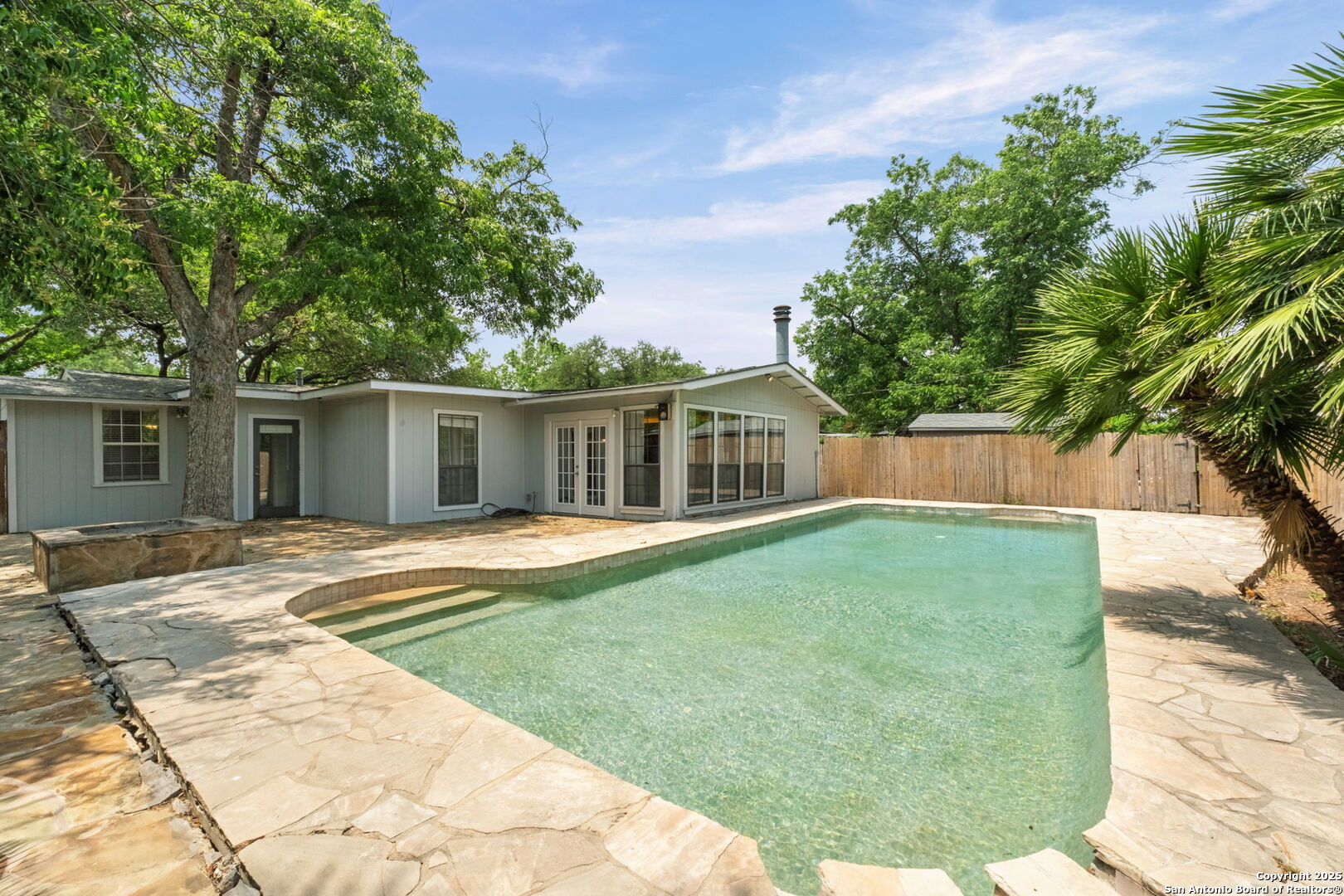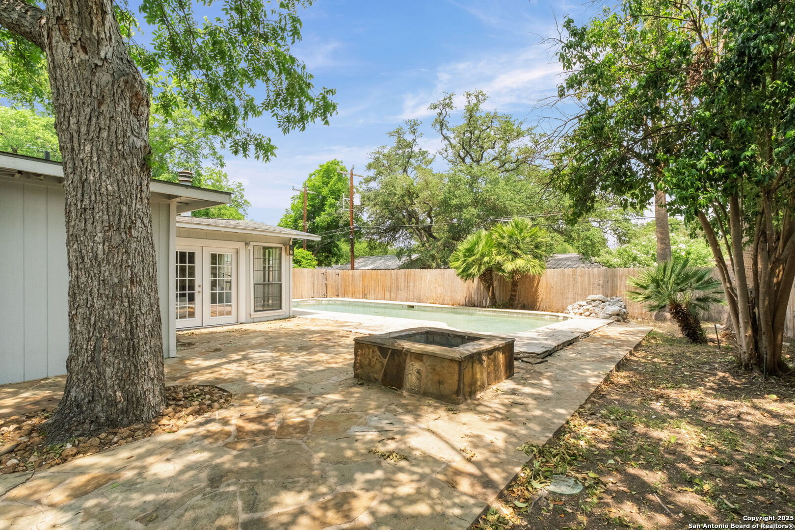 Welcome to 219 Ridgehaven Place, a stunning single-story retreat in the sought-after Northridge neighborhood, zoned to the highly acclaimed Alamo Heights ISD. This 3-bedroom, 2-bathroom home measuring nearly 2300 square feet offers an elevated living experience with a layout designed for comfort. Step inside to an open-concept design where rich hardwood floors guide you into a bright living area. A marble-surround gas fireplace creates a warm focal point, ideal for cozy evenings. The space flows effortlessly into the kitchen, featuring ample cabinetry, a butcher-block island, and a modern breakfast bar-great for casual meals or entertaining. Just beyond, a second living area with its own stone-clad gas fireplace adds versatility, whether you're hosting guests or enjoying a quiet night in. The dining area, framed by large windows and French doors, is soaked with an abundance of natural lighting and opens to the outdoors, making it perfect for gatherings. The primary bedroom offers a serene escape with hardwood floors and a welcoming ambiance, while the two additional bedrooms provide flexibility for family or guests. A bonus room adds even more value-use it as a guest suite, a home office, or a quiet study to suit your needs. The backyard is a true private oasis. A sparkling pool is ready for those summer days, and a stone fire pit sets the stage for memorable evenings under the stars. Combinations of surrounding mature and palm trees provide shade and a sense of seclusion, making this outdoor space a true retreat. With two distinct living areas, a smart layout, and a prime location, 219 Ridgehaven Place is a rare find. Schedule your private tour today and see why this home is the perfect place to start your next chapter!