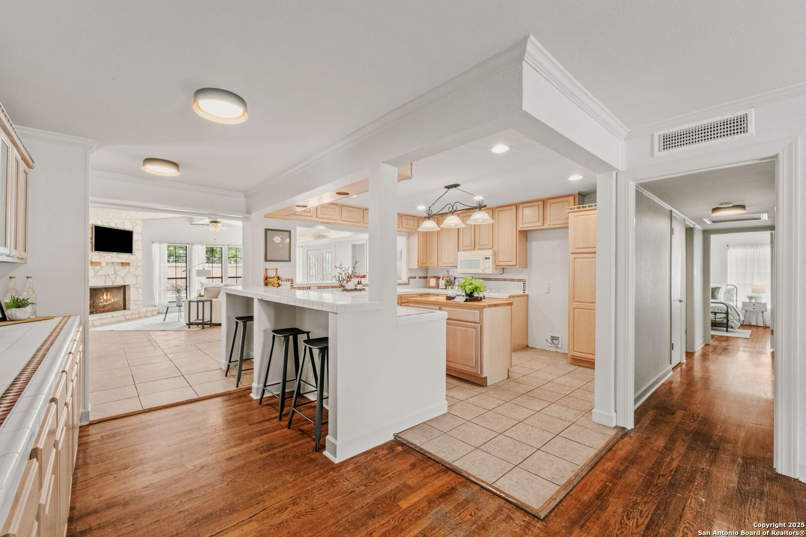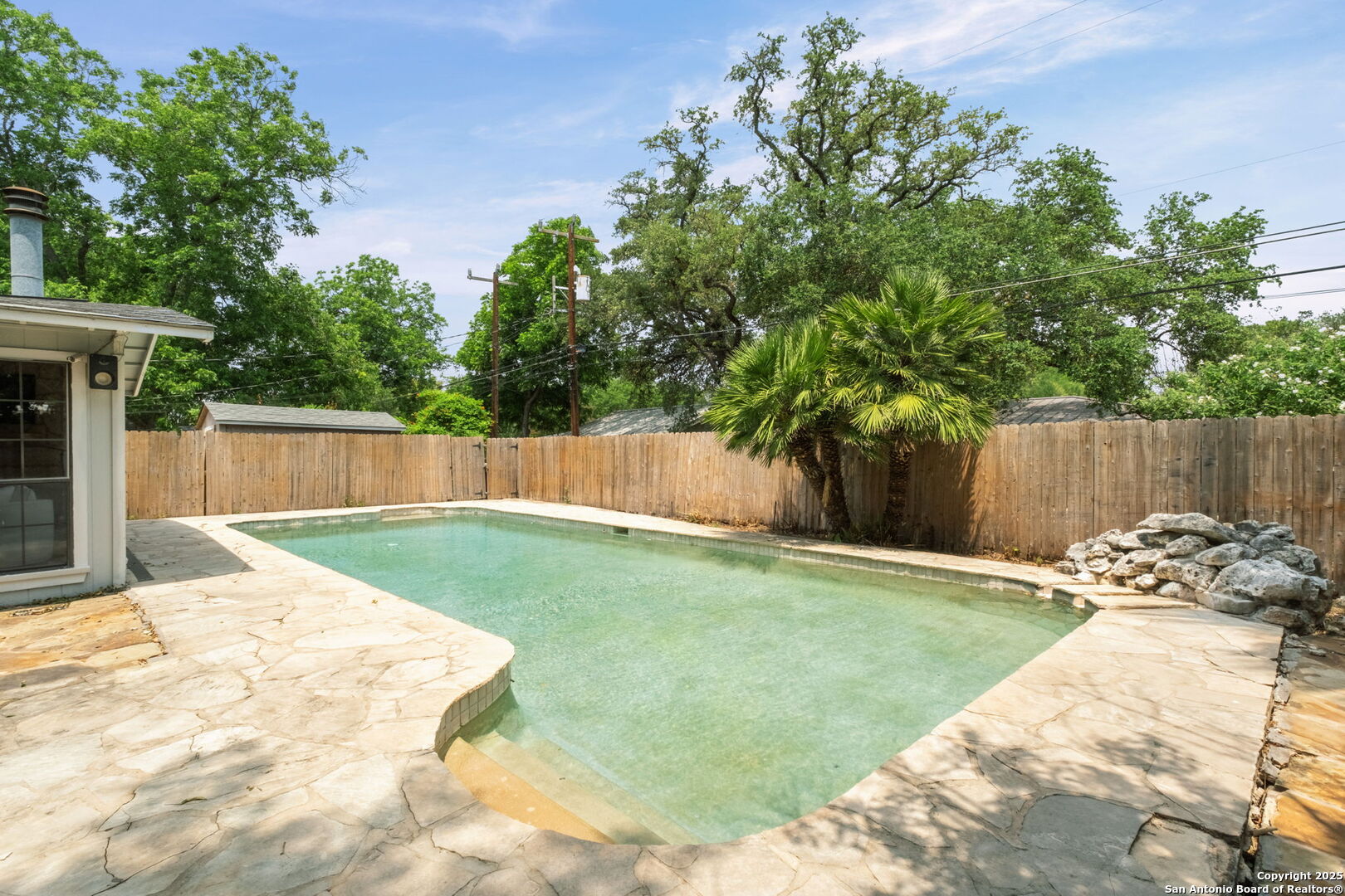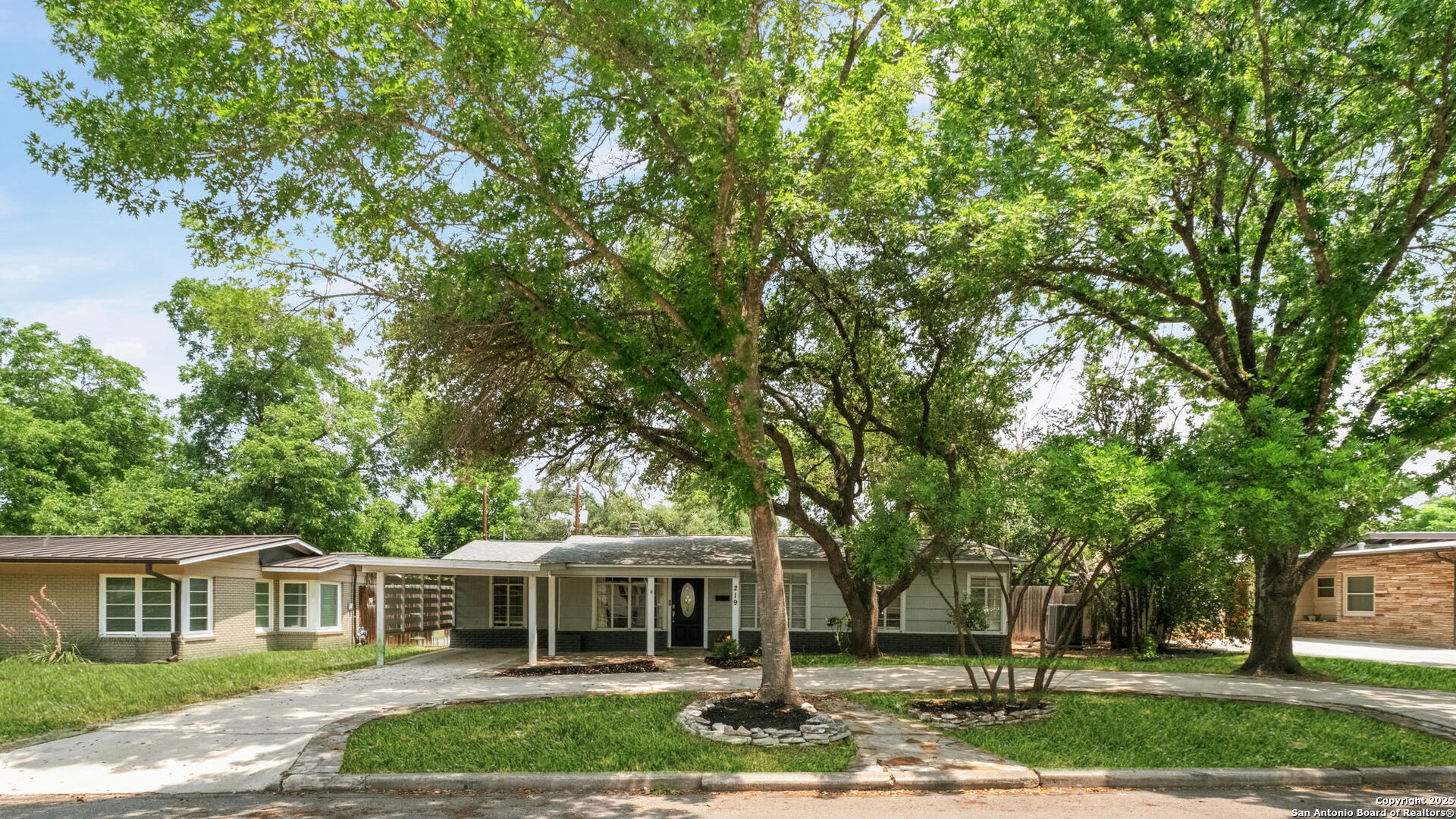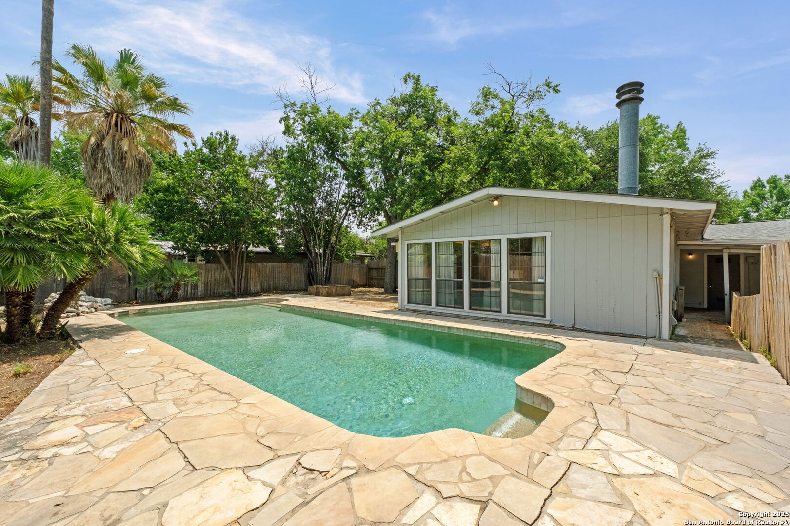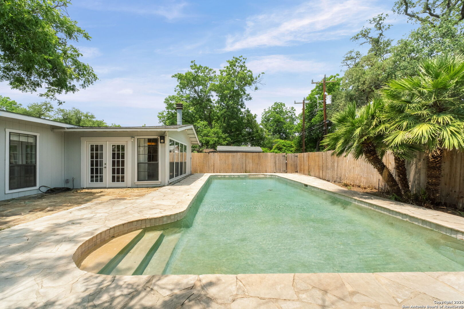 Welcome to 219 Ridgehaven Place, a stunning single-story retreat in the sought-after Northridge neighborhood, zoned to the highly acclaimed Alamo Heights ISD. This 3-bedroom, 2-bathroom home measuring nearly 2300 square feet offers an elevated living experience with a layout designed for comfort. Step inside to an open-concept design where rich hardwood floors guide you into a bright living area. A marble-surround gas fireplace creates a warm focal point, ideal for cozy evenings. The space flows effortlessly into the kitchen, featuring ample cabinetry, a butcher-block island, and a modern breakfast bar-great for casual meals or entertaining. Just beyond, a second living area with its own stone-clad gas fireplace adds versatility, whether you're hosting guests or enjoying a quiet night in. The dining area, framed by large windows and French doors, is soaked with an abundance of natural lighting and opens to the outdoors, making it perfect for gatherings. The primary bedroom offers a serene escape with hardwood floors and a welcoming ambiance, while the two additional bedrooms provide flexibility for family or guests. A bonus room adds even more value-use it as a guest suite, a home office, or a quiet study to suit your needs. The backyard is a true private oasis. A sparkling pool is ready for those summer days, and a stone fire pit sets the stage for memorable evenings under the stars. Combinations of surrounding mature and palm trees provide shade and a sense of seclusion, making this outdoor space a true retreat. With two distinct living areas, a smart layout, and a prime location, 219 Ridgehaven Place is a rare find. Schedule your private tour today and see why this home is the perfect place to start your next chapter!