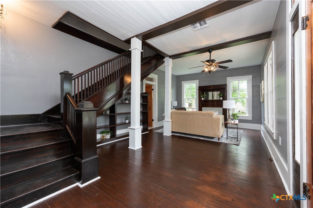 Set peacefully at the edge of a quite city street, this is where your next memories of home will be made. This classic, classy, nicely updated home feels spacious, warm, & bright. Enjoy quiet mornings with coffee, a good book, and some rocking chairs on your covered front porch or 1 of 2 covered balconies on the 2nd floor. Inside, you’ll love the entertainer's floorplan with high ceilings, hardwood floors, and sunlight pouring in through large windows. The 1st floor showcases an easy flow kitchen open to a large formal dining room and living space right off the entry and a half bath all downstairs. It's dining room is big enough to hold huge dinner parties and family events that also manages to feel like the perfect spot for a cozy meal. It's kitchen was perfectly planned with updates around the historic glass-faced cabinets, butcher block counters, modern appliances and island seating. Upstairs, 3 bedrooms and 2 renovated full baths with antique custom vanities create a peaceful retreat. Outside you'll enjoy the lovely yard that's big enough with space for a swing set, garden, bbqs, pets. Live like a local being just blocks away from downtown dining, shopping, and schools.