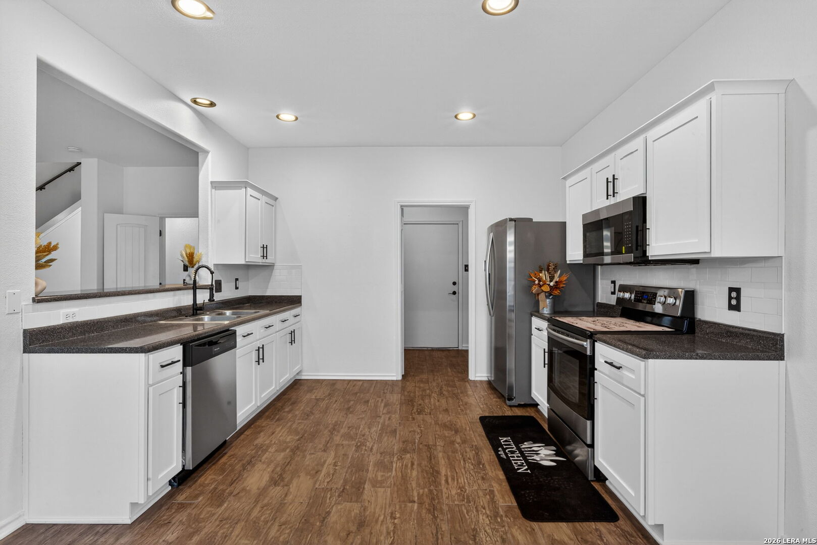 This home has it all: Move-in ready, recently renovated, spacious corner lot, gated access and great neighborhood schools! NEW appliances, NEW cabinets, NEW ceramic tile in kitchen and bathrooms! This cozy home has plenty of yard space on the side and front and brand NEW fences. The majestic neighborhood entrance stone fence borders the front and back yards. From the ceramic wood-like tile flooring downstairs to the beautifully updated bathrooms, there has been attention to detail throughout. From the soft-close cabinets to the stainless steel appliances to the extra storage space in the garage, this is a homeowner's dream. And the kitchen is a chef's dream with a walk-in pantry and new backsplash, plus new Frigidaire microwave and dishwasher. The fresh paint throughout and recessed kitchen lighting only add to the allure. Come and experience life in the Villas at Stone Oak.