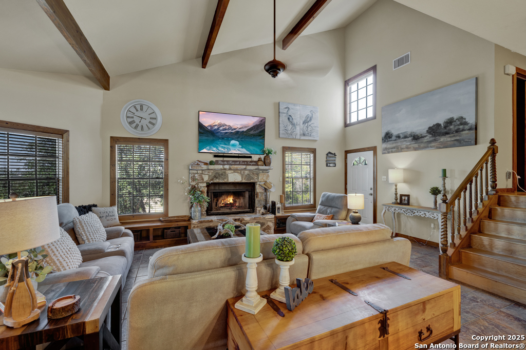 *MOTIVATED SELLER* Lakehouse retreat on Canyon Lake with beautiful hill country views. Located on the north side of Canyon Lake, this home is nestled among mature trees and offers multi-level views. This home is partially furnished and ready to enjoy all the property has to offer. This 4-bedroom, 3 full bath home offers a multi-level open floor plan and maximizes surrounding views. The kitchen features granite countertops, stainless steel appliances, eat-in dining and opens to the adjoining family room. The large windows in the family room overlook Canyon Lake, the stone fireplace and wood beams are nice accents to the high ceilings and open living area. The bedrooms are on the upper floors just off the main living area, and owners can retreat to the master suite which offers wood floors, private balcony with beautiful views, custom walk-in shower, granite counters, and separate closets. The 4 bedroom on the lower floor features a full bath with walk-in shower and perfect place for home office or large bedroom suite. The backyard is perfect for entertaining with a large, covered deck, partially fenced backyard, side yard with doggy door for your family pets. The gentle sloping lot leads down to the lake where you and your guests can enjoy a day of fun under the covered awning and adjacent fire pit area. This home is conveniently located to area shopping and local attractions in New Braunfels, San Antonio and Austin.