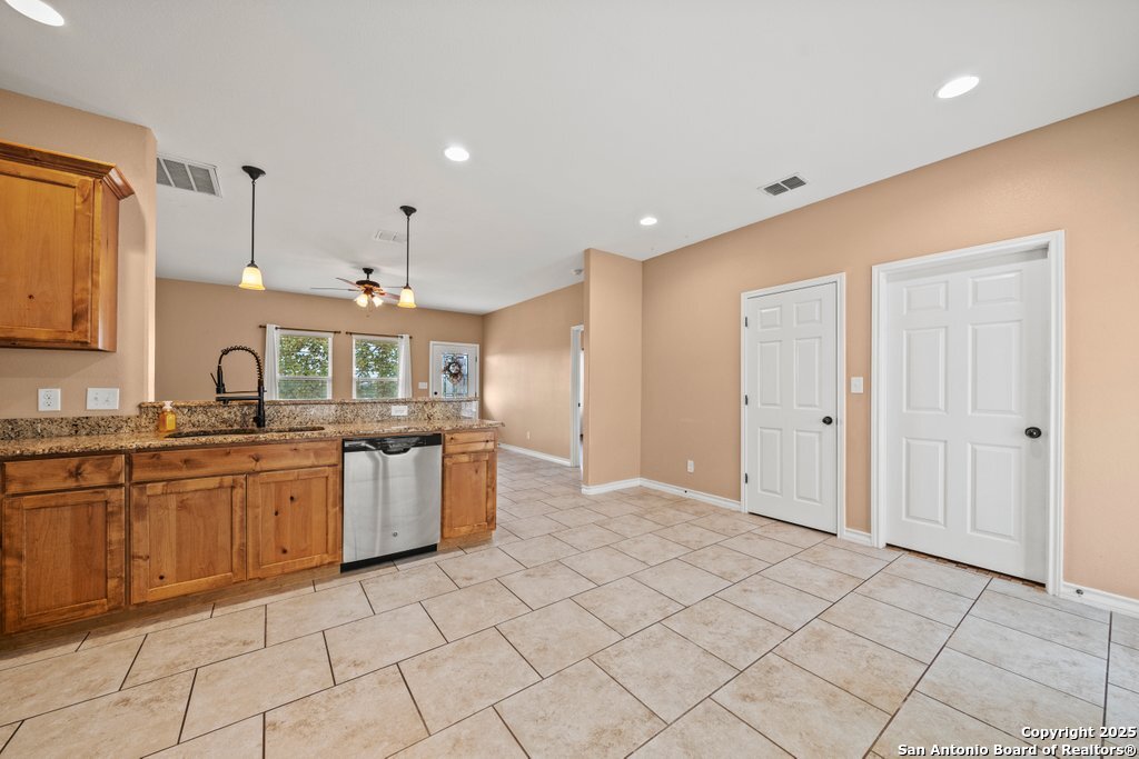 Tucked away at the end of a quiet cul-de-sac in the desirable Rocky Creek Ranch subdivision, this secluded .71-acre property offers the perfect blend of privacy and Hill Country charm. The fully fenced and gated lot surrounds a warm and inviting home featuring an open-concept floor plan, a spacious eat-in kitchen with granite countertops, knotty pine cabinetry, recessed lighting, and a thoughtful split layout with 3 bedrooms and 2 full bathrooms. Rocky Creek Ranch is located in Canyon Lake's northern hotspot, just minutes from Potters Creek Park, Canyon Lake High School, and a variety of shops and restaurants. Residents enjoy access to a gated amenity park complete with a sparkling pool, sport court, clubhouse, and pavilion-making this an ideal retreat for comfort, convenience, and Texas Hill Country living.