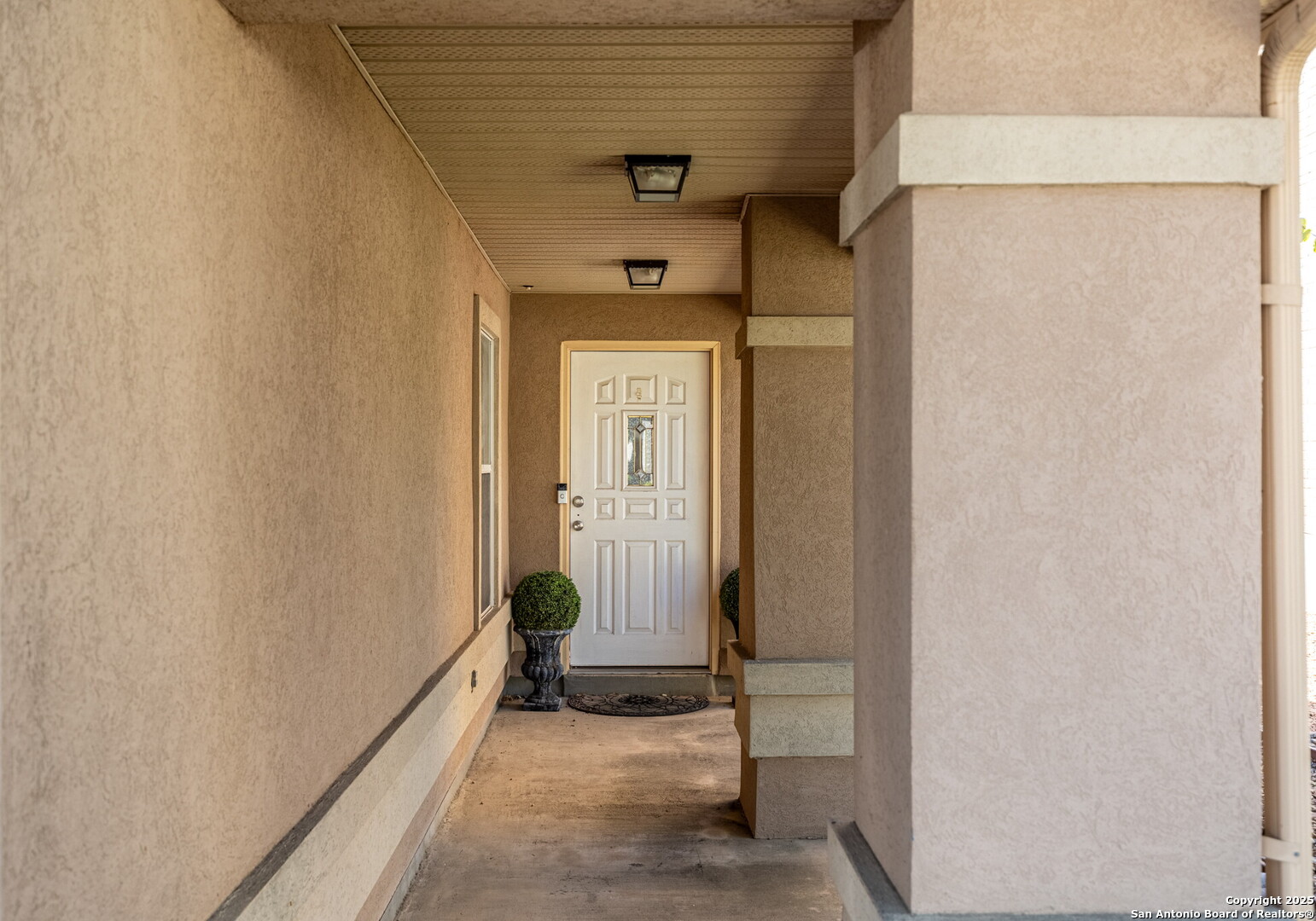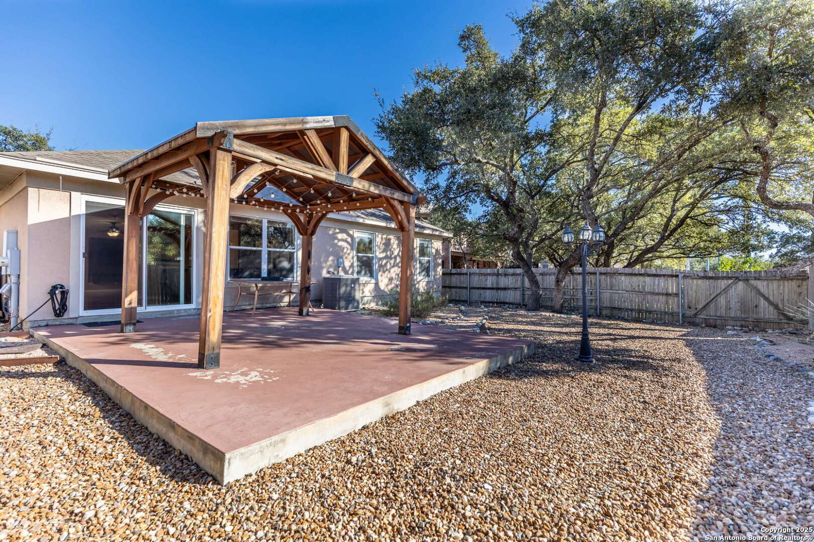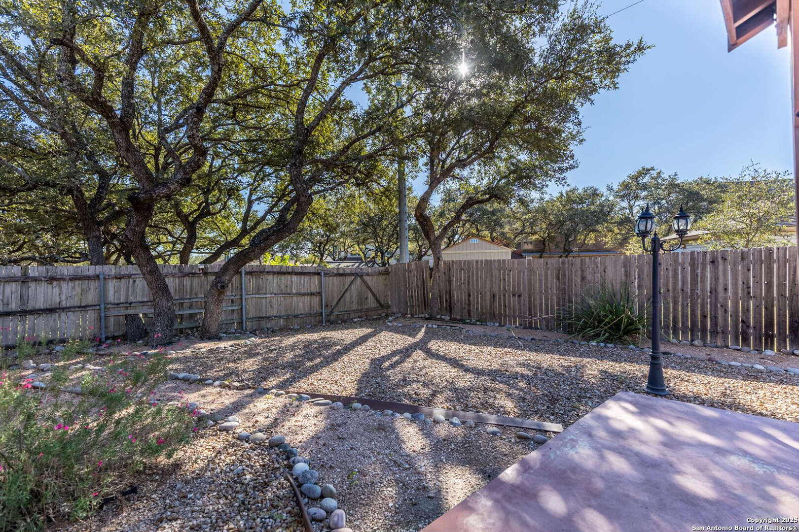 Step into this warm and inviting home, ready for move-in! Featuring easy-to-maintain concrete flooring throughout, the spacious living room flows seamlessly into the island kitchen, complete with granite countertops and sleek stainless steel appliances. The primary suite offers a large walk-in closet and a full en suite bath with both a tub and shower. Enjoy low-maintenance living with xeriscaped front and back yards-perfect for a busy lifestyle. Unwind or dine on the private covered patio in the backyard. Located in the highly desirable Stone Oak area, just minutes from premier shopping, dining, and entertainment. Schedule your showing today!