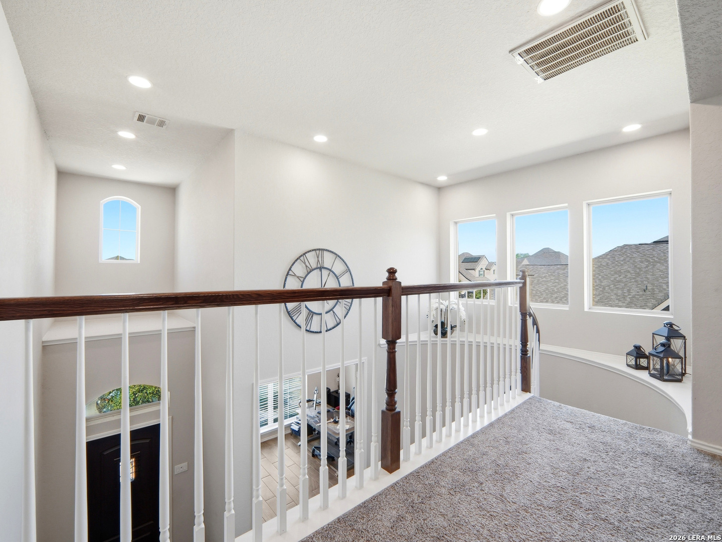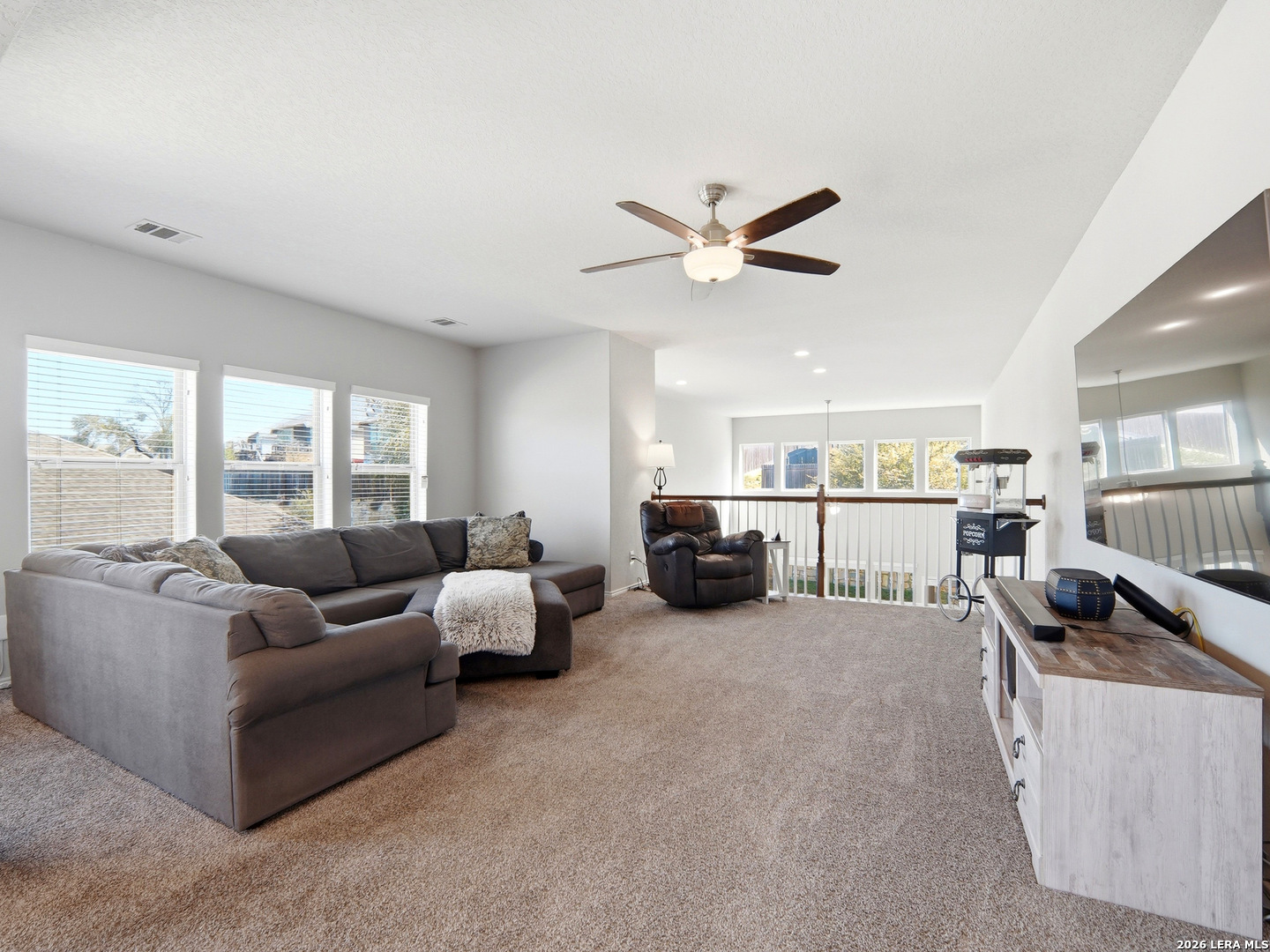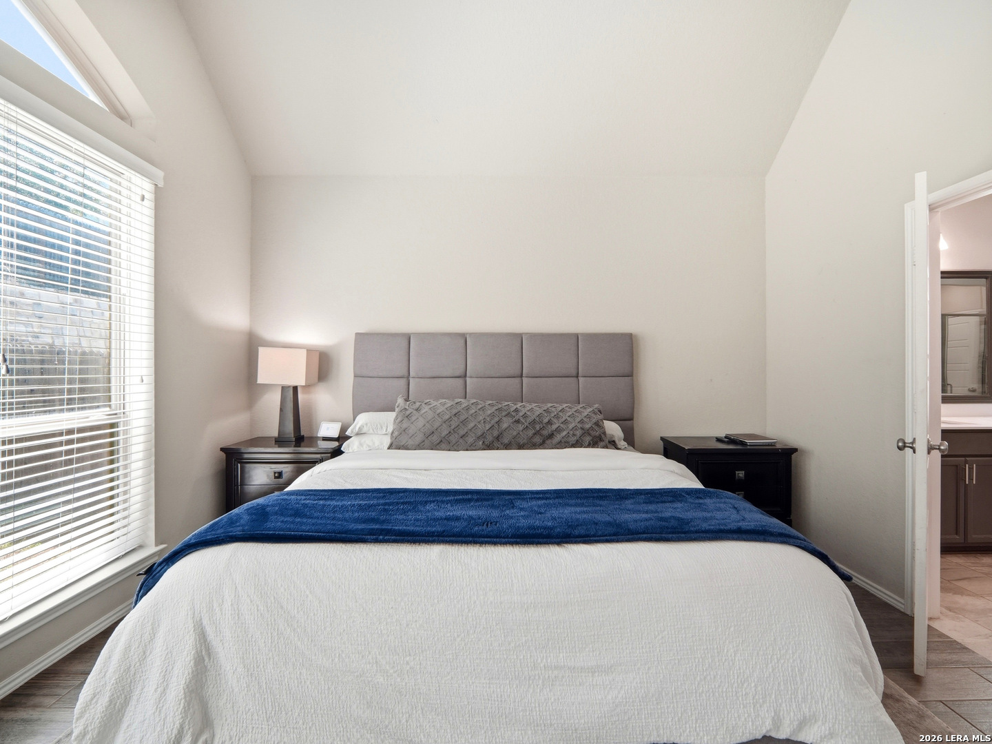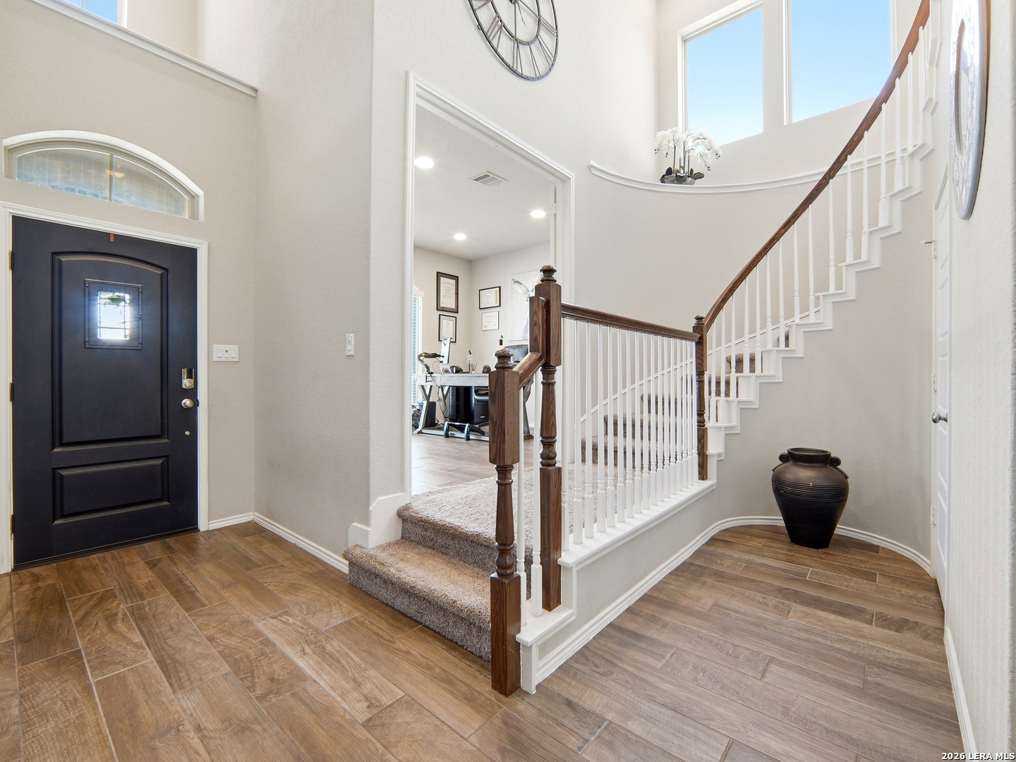 Move-In Ready! Step into this stunning home built by Perry Homes, where thoughtful design meets modern elegance. Upon entering the home, you're greeted by beautifully crafted stairway and soaring 19-foot ceilings in the foyer. A private home office with French doors offers the ideal work-from-home setup. The modern kitchen is a true showstopper, featuring a large island with available seating space, sleek finishes, and a spacious walk-in pantry-perfect for both everyday living and entertaining. Stainless steel kitchen appliances including the stove/oven, refrigerator, microwave, and dishwasher are also included with the home. Featuring an impressive two-story family room with high ceilings, filled with natural light from a wall of windows. The primary suite also boasts a wall of windows and a luxurious ensuite bathroom with dual vanities, a relaxing garden tub, a separate glass-enclosed shower, and a generous walk-in closet. A first-floor guest suite provides comfort and privacy for visitors. Upstairs, you'll find a spacious game room along with secondary bedrooms and full bathroom, creating the perfect layout for family or guests. Additional highlights include ceramic tile flooring, a mudroom for added convenience, and a covered backyard patio-ideal for outdoor gatherings. Located within walking distance to the neighborhood amenities, residents enjoy easy access to a clubhouse, resort-style pool, park access, and scenic walking/jogging trails - perfect for an active and connected lifestyle. This home is a must-see in desirable northwest San Antonio, conveniently located near shopping, dining, and everyday essentials, as well as top-rated schools of N.I.S.D. and newly located hospital. Complete with a sprinkler system, low maintenance yard, and a three-car garage, this home blends style, function, and comfort in every detail!