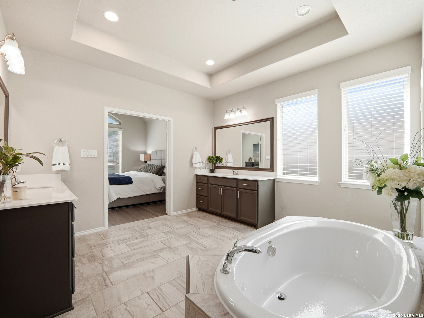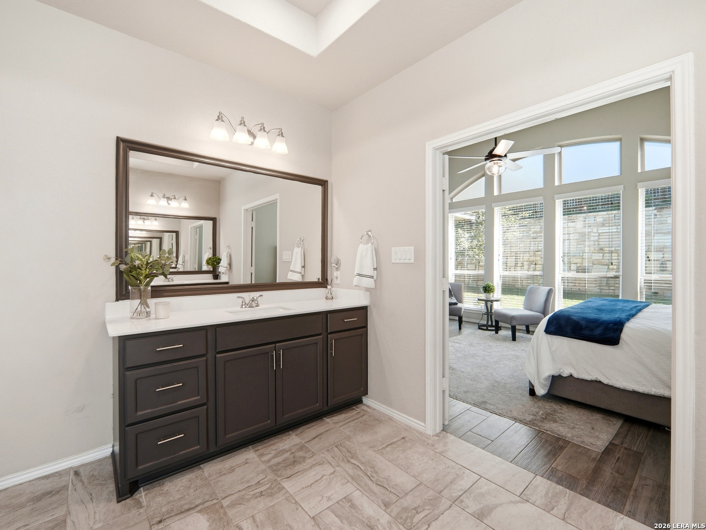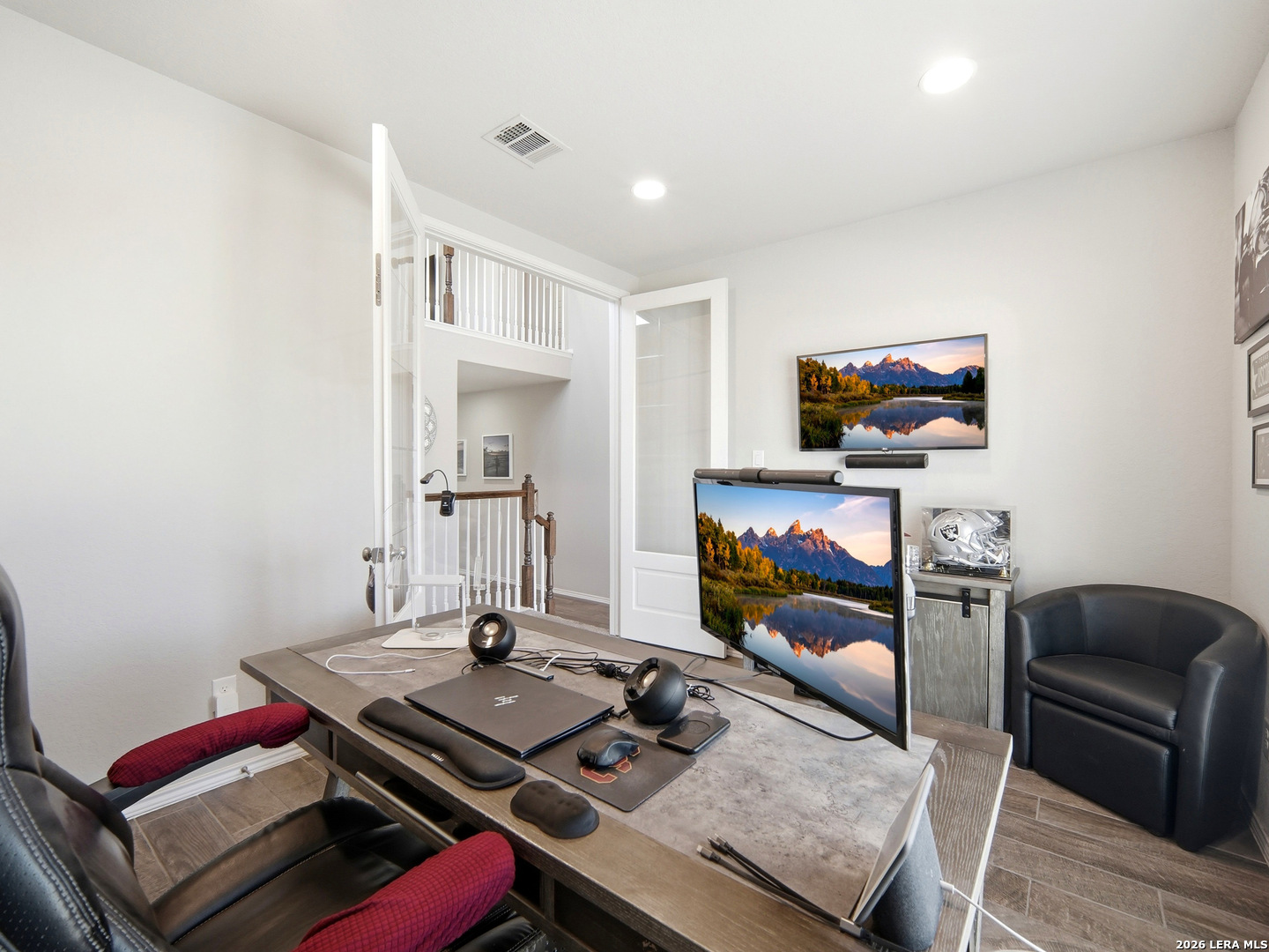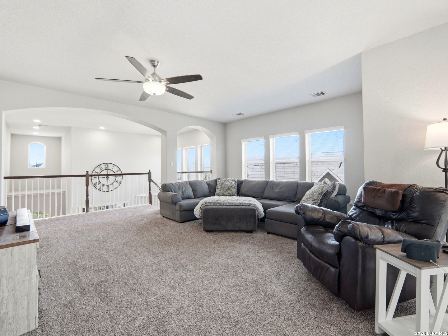 Move-In Ready! Step into this stunning home built by Perry Homes, where thoughtful design meets modern elegance. Upon entering the home, you're greeted by beautifully crafted stairway and soaring 19-foot ceilings in the foyer. A private home office with French doors offers the ideal work-from-home setup. The modern kitchen is a true showstopper, featuring a large island with available seating space, sleek finishes, and a spacious walk-in pantry-perfect for both everyday living and entertaining. Stainless steel kitchen appliances including the stove/oven, refrigerator, microwave, and dishwasher are also included with the home. Featuring an impressive two-story family room with high ceilings, filled with natural light from a wall of windows. The primary suite also boasts a wall of windows and a luxurious ensuite bathroom with dual vanities, a relaxing garden tub, a separate glass-enclosed shower, and a generous walk-in closet. A first-floor guest suite provides comfort and privacy for visitors. Upstairs, you'll find a spacious game room along with secondary bedrooms and full bathroom, creating the perfect layout for family or guests. Additional highlights include ceramic tile flooring, a mudroom for added convenience, and a covered backyard patio-ideal for outdoor gatherings. Located within walking distance to the neighborhood amenities, residents enjoy easy access to a clubhouse, resort-style pool, park access, and scenic walking/jogging trails - perfect for an active and connected lifestyle. This home is a must-see in desirable northwest San Antonio, conveniently located near shopping, dining, and everyday essentials, as well as top-rated schools of N.I.S.D. and newly located hospital. Complete with a sprinkler system, low maintenance yard, and a three-car garage, this home blends style, function, and comfort in every detail!