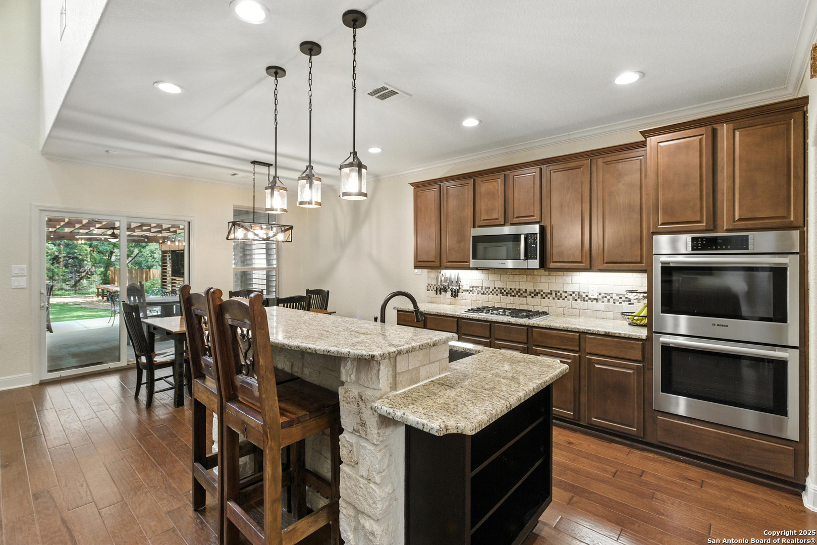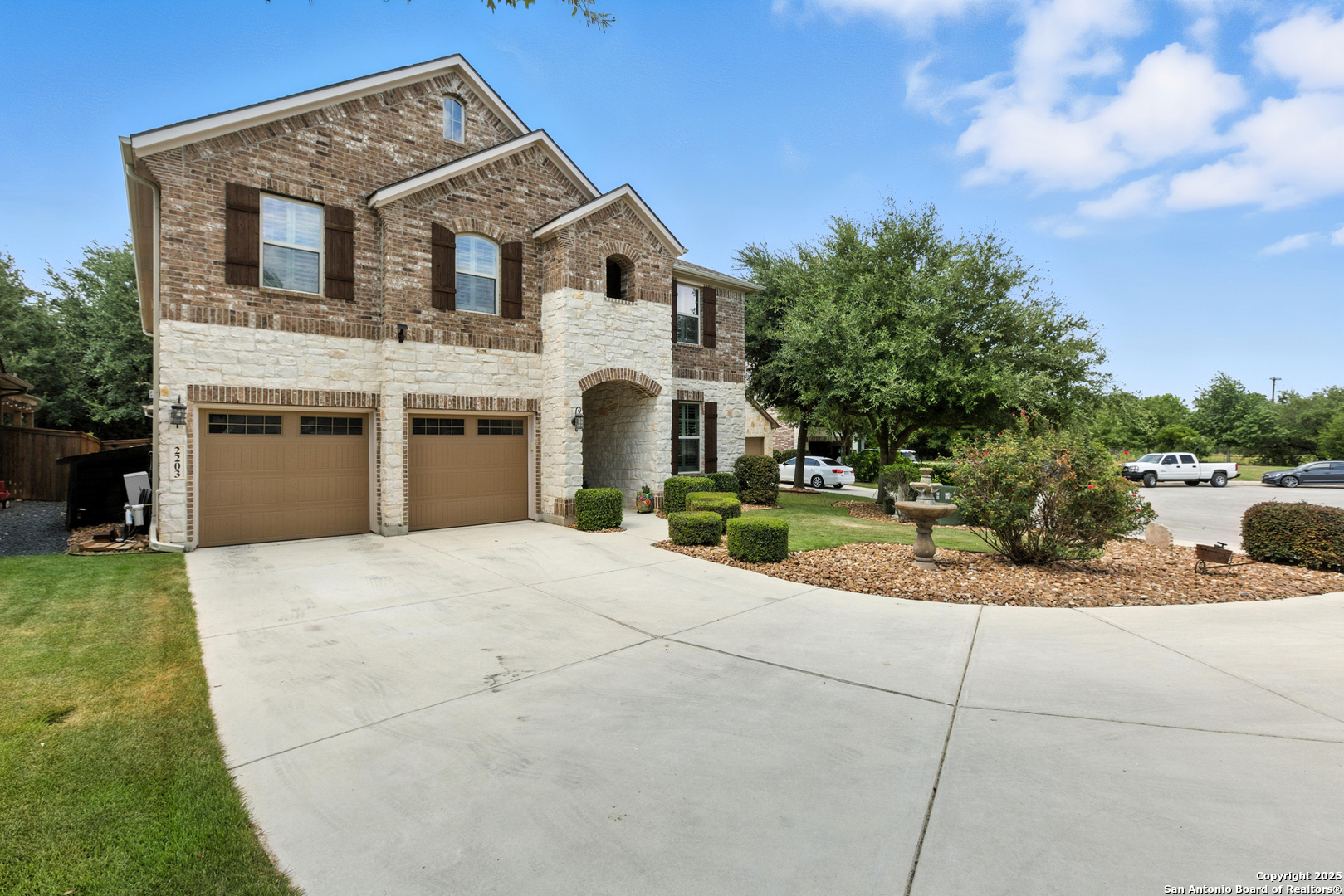 UPGRADES GALLORE! Welcome to 2203 Bella Daisy, a home that's been absolutely loved and cared for in the beautiful Willis Ranch community. Built in 2014, this spacious two-story sits on a generous .24 acre lot and offers 3,628 square feet of thoughtfully designed living space. It has 5 bedrooms, and 3 full baths and 2 half baths, including the rarity of two primary suites - one upstairs and one down which has been perfect for multi-generational living or hosting guests comfortably. From the moment you walk in, the grand entry and curved Cinderella balcony make a big impression. Throughout the home, you'll notice warm wood floors, stone accents, and big open spaces that are ideal for both quiet nights in and entertaining. The kitchen has been a favorite spot-tons of space, a huge island, built-in appliances, butler's pantry, and a layout that makes it easy to cook and still be part of the conversation. We've also loved the formal dining room, cozy living area with a fireplace, dedicated office, and the media and game rooms upstairs - perfect for movie nights or letting the kids spread out. But where this home really shines is outside. The backyard is an entertainer's dream. We added an outdoor kitchen, a Forno Bella pizza oven and Kamado Grill, and a fireplace, creating the ultimate hangout spot for friends and family. There's plenty of room to relax, cook, and enjoy the peaceful surroundings-it's been one of our absolute favorite features. Summer or winter, you can still enjoy, we added heaters and misters for either. Also take note of the levered blinds we customized for added privacy, outdoor movie viewing and breeze control. We built a custom shed that blends nicely with the outdoor living. In addition, in 2021 we replaced the roof, solar panels, and furnace and in 2024 a new A/C. Installed in the home is a Solaris Whole House Air Cleaner & in the garage, for those car fanatics, a lift in included. Plus, we're in a great location in Comal ISD, walking distance to Kinder Ranch Elementary, Pieper Ranch Middle, and Pieper High. The neighborhood itself is quiet and friendly, with community amenities like a pool, parks, and trails that we've really enjoyed. This home is such a special place -whether hosting big get-togethers or just enjoying a quiet evening under the stars. It's a great blend of comfort, flexibility, and thoughtful upgrades, all in one of San Antonio's most desirable areas. Come love it as much as we have!