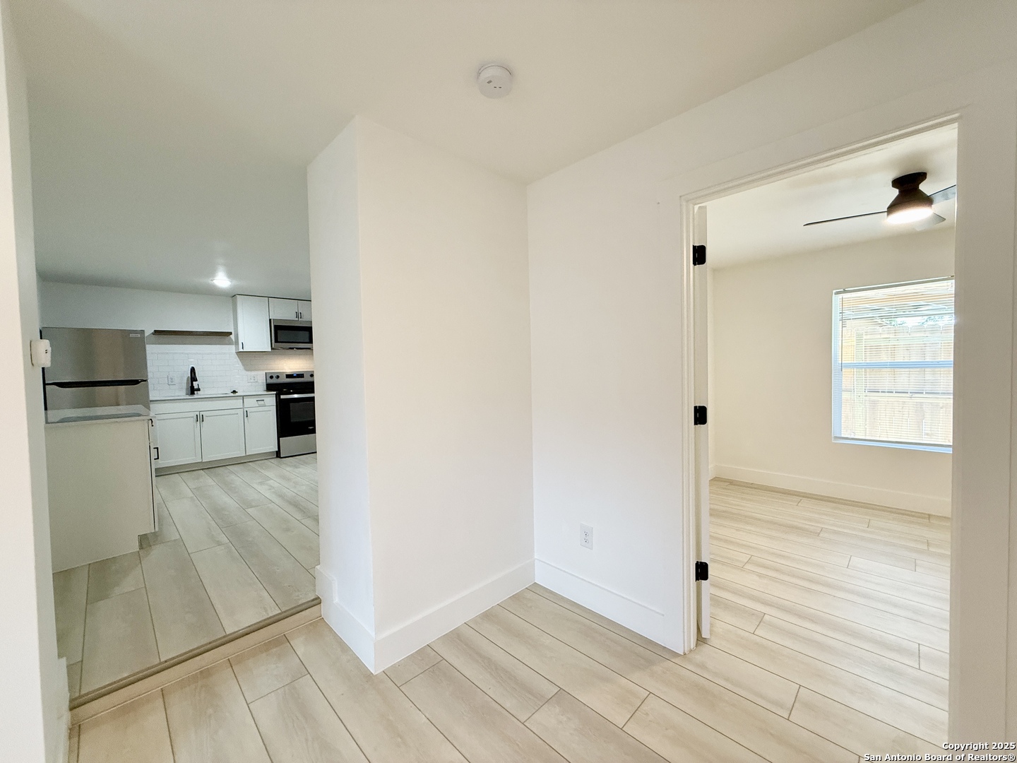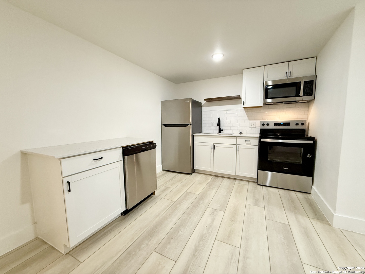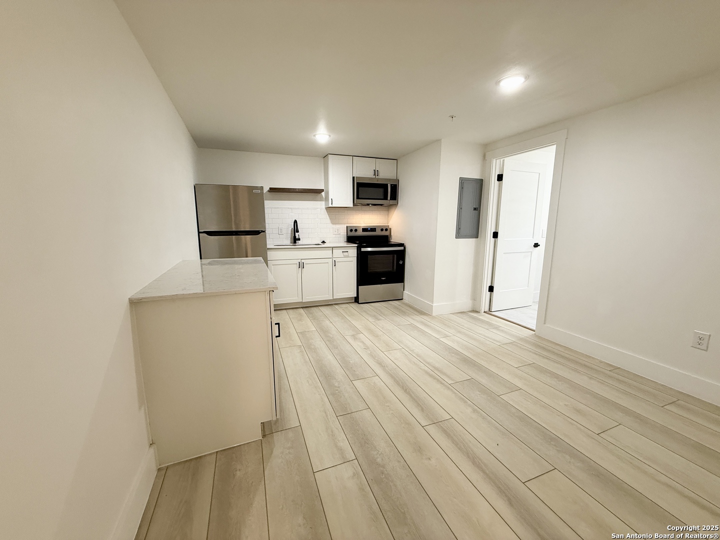 Receive TWO WEEKS FREE-Owner offering a rental rebate with a 12-18 month lease! Be the first to occupy this fully renovated one bedroom, one bath first floor rental near popular downtown New Braunfels. This fully upgraded multi-family unit is ready for move in now! Castlewood oak laminate flooring throughout. Kitchen features gorgeous granite countertops & ceramic white subway tile backsplash. Upgraded kitchen faucet and hardware on cabinets & drawers, Espresso floating shelves for extra storage. Kitchen complete with brand new stainless appliances including Fridge, Microwave, Range & Dishwasher. This residence offers one full bath with a stylish shower/tub combo featuring a luxury showerhead. Walk-in closet in bedroom with window for natural light. 1 mini split air conditioner. Fresh sod installed. Washer & dryer access onsite. Garage parking & Covered parking available for an additional fee, while supplies last. Each unit has its own electric meter- tenant responsibility. Water is $50/month in addition to rent. Renters insurance required. Don't wait to receive your rental rebate incentive today!
