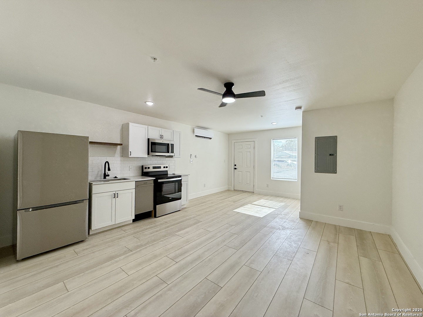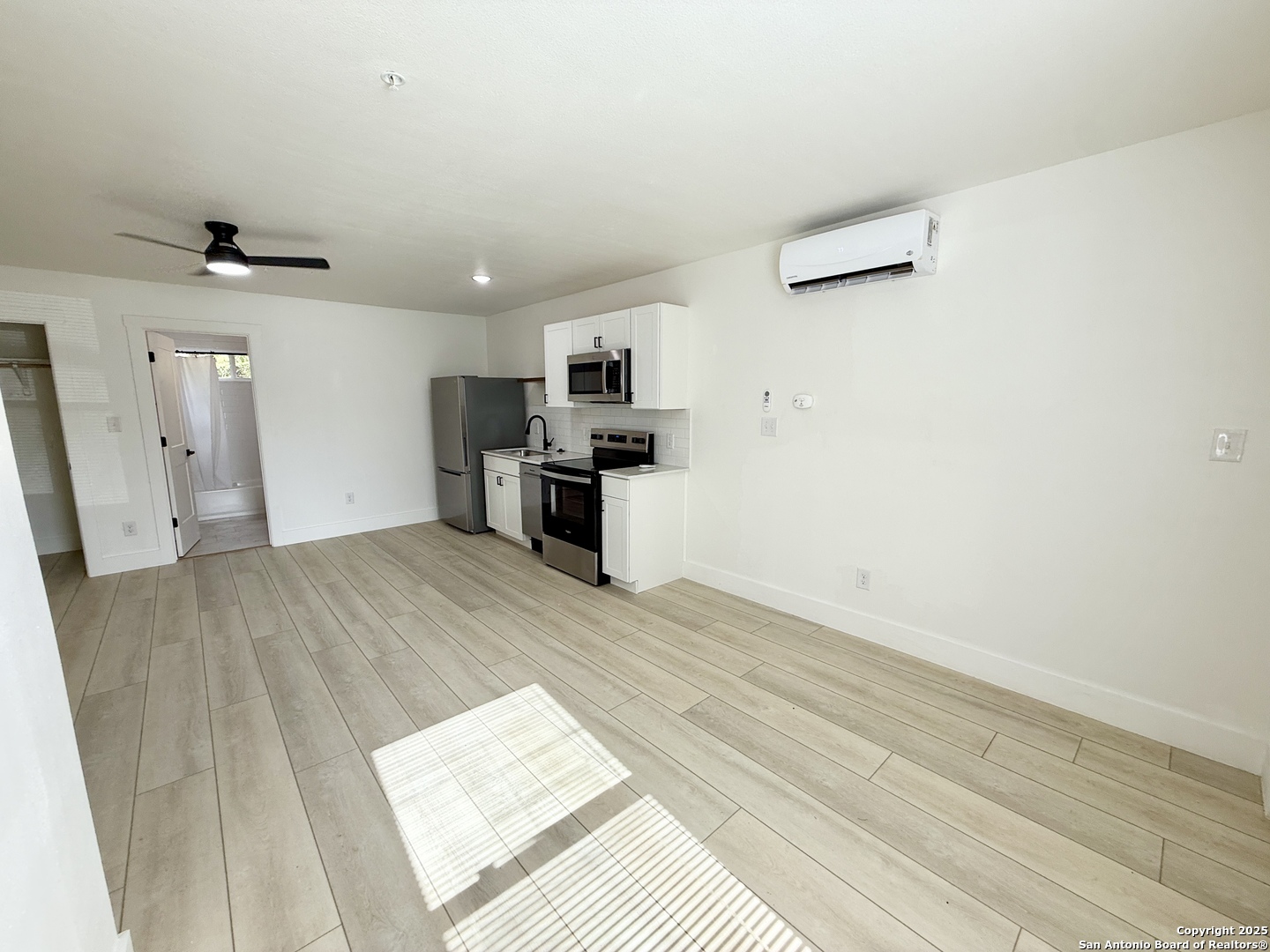 Receive FREE RENT-Owner offering a rental rebate with a 12-18 month lease agreement. Rare opportunity for a studio apartment in popular New Braunfels. Be the first to occupy this fully renovated efficiency apartment. This fully upgraded multi-family unit will be ready for move in! Beautiful Castlewood oak laminate flooring throughout. Kitchen features gorgeous granite countertops & white ceramic subway tile backsplash. Upgraded kitchen faucet and hardware on cabinets & drawers, stylish espresso floating shelf for extra storage. Kitchen complete with brand new stainless appliances including Fridge, Microwave, Range & Dishwasher. This residence offers one full bath with a stylish shower / tub combo and a luxury shower head. Split air conditioning system. Fresh sod installed on site. Washer & dryer access onsite. Garage parking & Covered parking available for an additional monthly fee, while supplies last. Each unit has its own electric meter. Water is $50/month in addition to rent. Renters insurance required. Don't wait to receive your rental rebate incentive today!