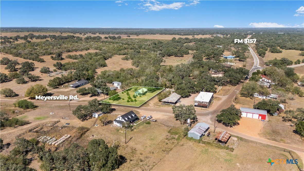 Newly remodeled home located in the Meyersville Community, within walking distance from Meyersville Elementary. Metal roof is only 4 years old, brand new electrical wiring and plumbing as of 2025, fresh paint, sheetrock and flooring has been installed to make this home one to be desired. Sit outside on the covered porch and relax in the peaceful community of Meyersville or enjoy all the natural lighting offered inside from the original windows of this home originally built in 1935. This home offers two spacious bedrooms or the use of one as an office, along with being located on almost an acre at 0.67 acres total.