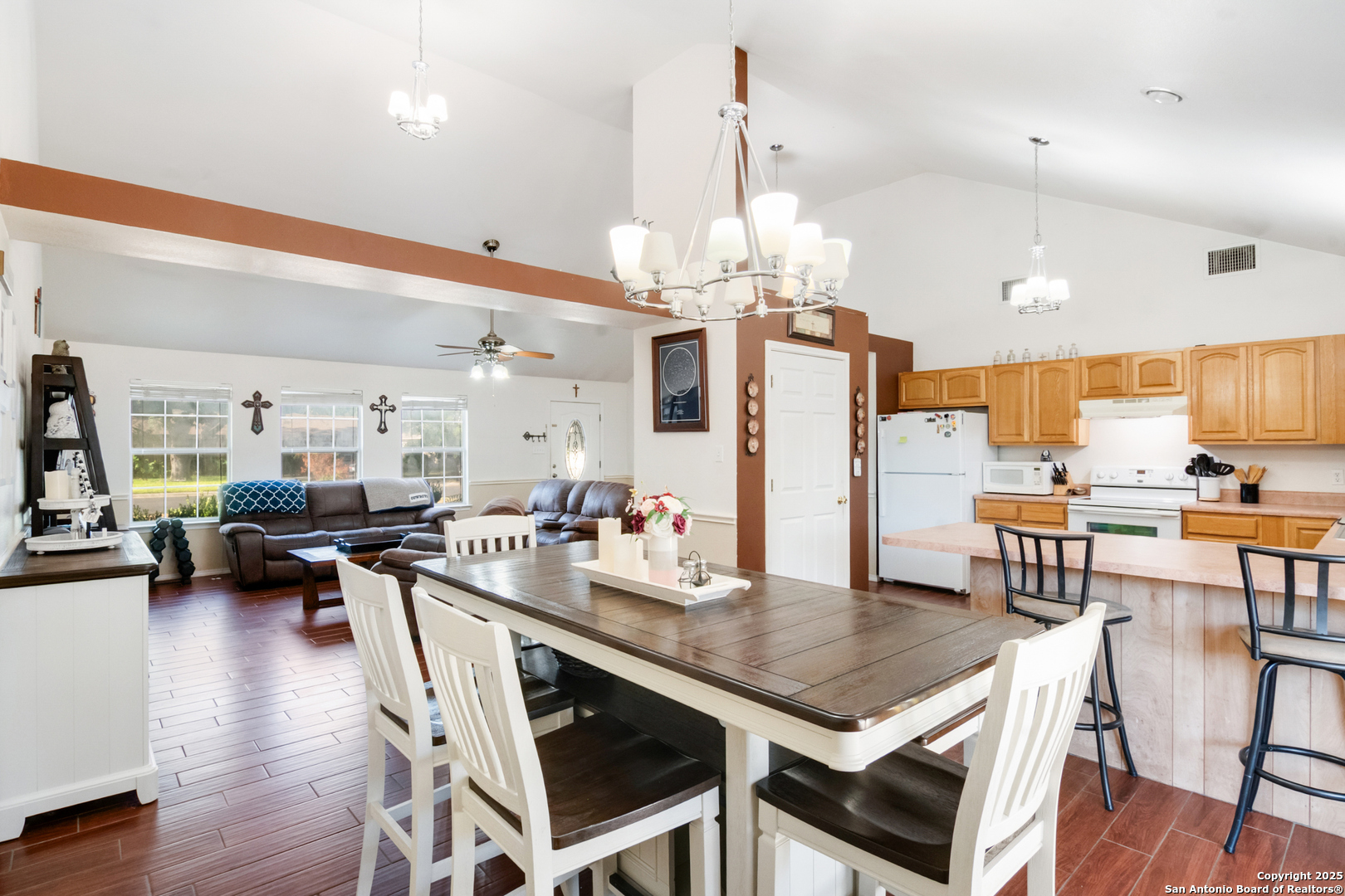 Charming 3-bedroom, 2-bath home in Hondo! With 1,668 sq ft of living space, this open floor-plan beauty offers seamless flow between the living, dining, and kitchen areas-perfect for gatherings and everyday comfort. The spacious backyard with a privacy fence is ideal for relaxing, entertaining, or letting pets play freely. Located in the highly regarded Hondo ISD, known for strong academics and community pride, this home also puts you close to Hondo's small-town charm, friendly atmosphere, and convenient access to San Antonio. A wonderful blend of space, comfort, and location-come see it today!