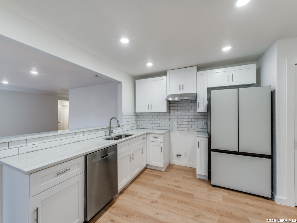 Completely renovated in 2024, this Jefferson Heights home offers a flexible layout and modern updates on San Antonio's East Side. Features include two primary bedrooms-one downstairs and a private upstairs primary with its own loft/office/living area-plus two secondary bedrooms. The first floor offers two living areas, ideal for entertaining or multi-use spaces. Situated on a good-sized lot with ample off-street parking and a one-car detached garage. Convenient location near downtown, major roadways, and local amenities. Move-in ready with updated finishes throughout.