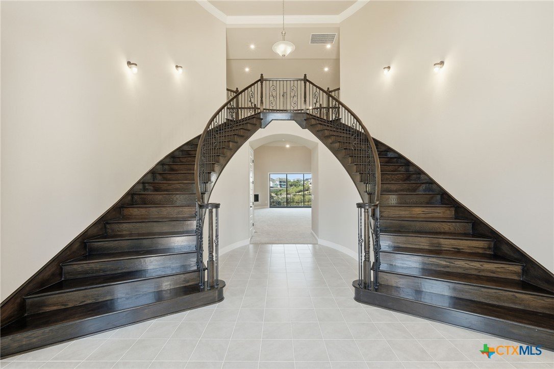 Stunning, never-lived-in Toll Brothers residence in the coveted Travisso community featuring 5 beds, 5.5 baths and approximately 5,773 sq ft of immaculate living space. Designed to impress from the moment you enter, the home welcomes you with an elegant double-winding staircase, soaring ceilings, and expansive open-concept entertaining areas filled with natural light. The chef-ready kitchen offers abundant workspace, premium appliances, and seamless flow into the living and dining spaces, making hosting effortless. The thoughtfully designed floorplan includes generous primary suite along with flexible home office, media, and flex room options to tailor to your lifestyle. Enjoy true indoor/outdoor living with covered patios and room to create your ideal backyard space. Meticulously upgraded with over $350K in builder selections and premium finishes throughout, this home delivers a refined, move-in-ready experience. Located in Travisso, an award-winning master-planned community known for its stunning Hill Country surroundings and exceptional amenities including a 9-acre amenity center, resort-style pool, fitness center, tennis and pickleball courts, playgrounds, trails, and year-round lifestyle programming. Residents also benefit from proximity to top-rated Leander ISD schools, shopping and dining at The Shops at Crystal Falls, entertainment at The Oasis and Lakeline, and quick access to Lake Travis recreation. Impeccably maintained and beautifully appointed, this home offers luxury, comfort, and an elevated way of living in one of Leander’s most desirable neighborhoods.