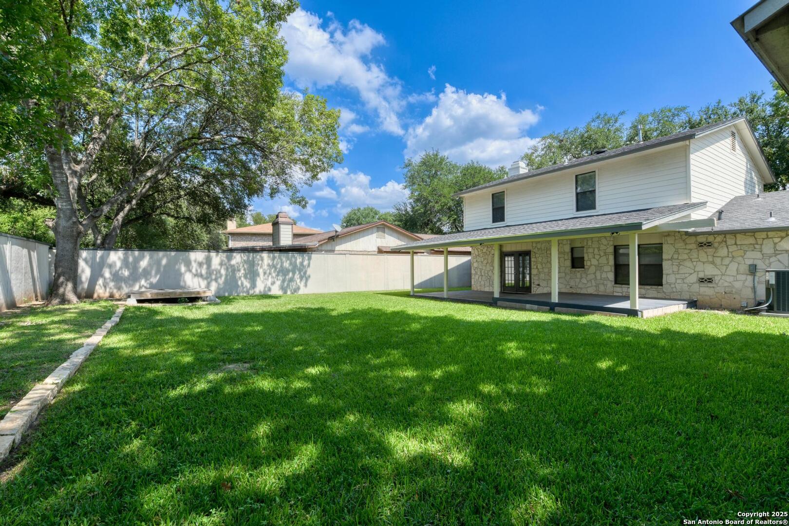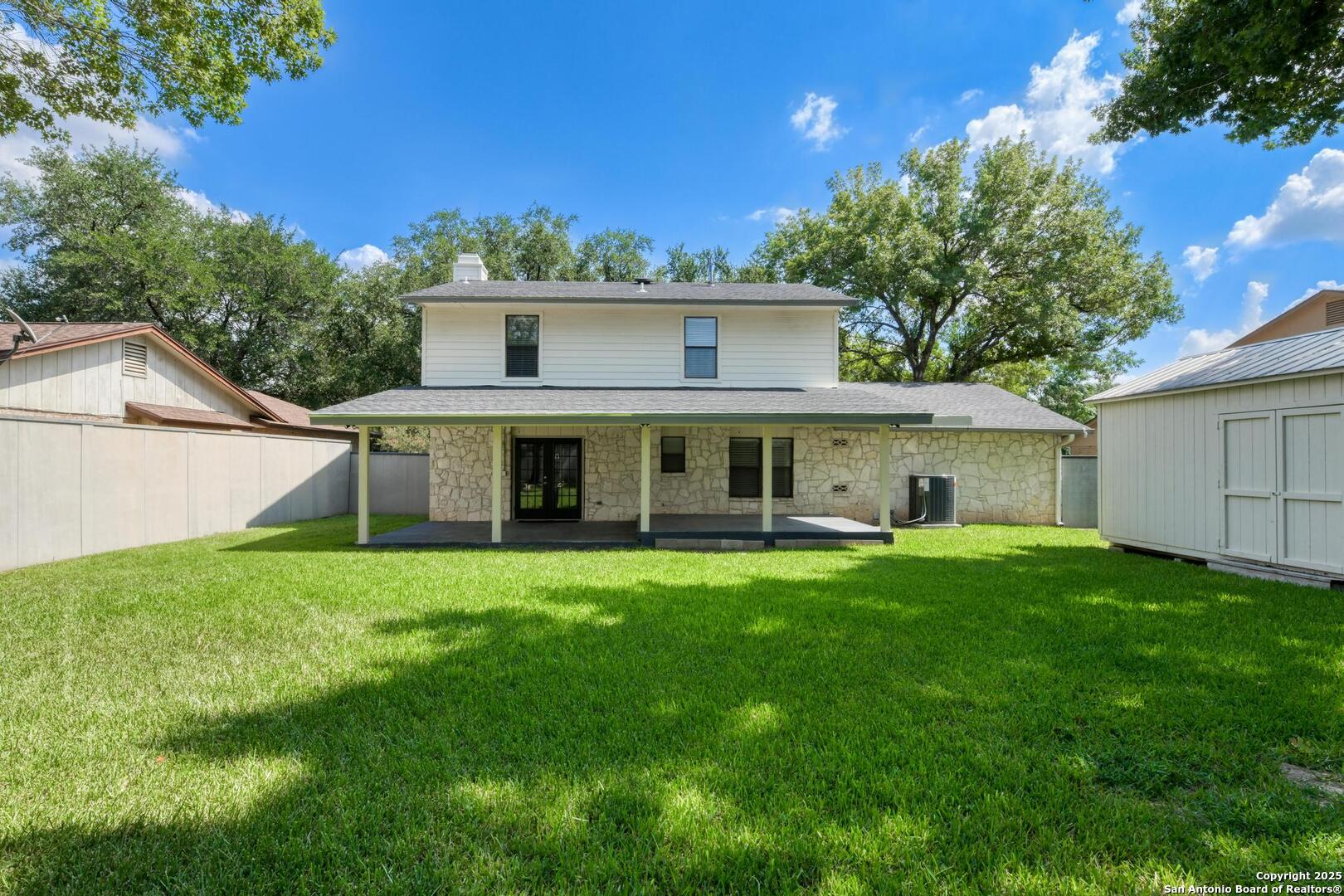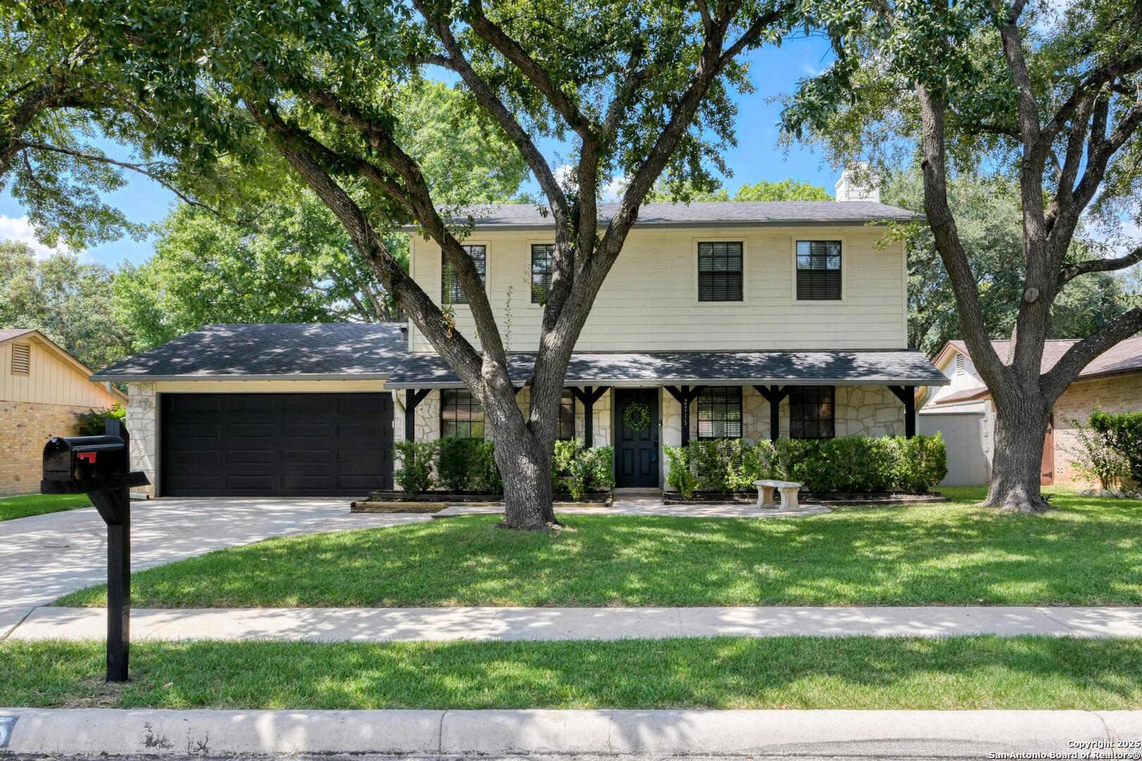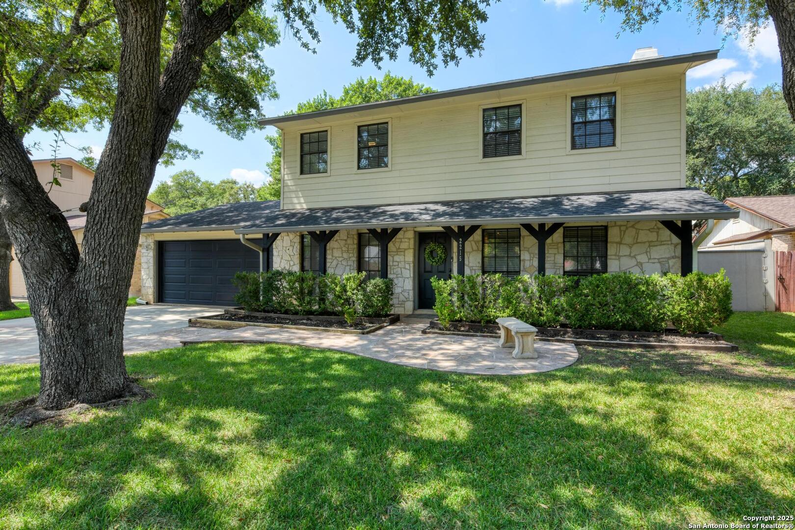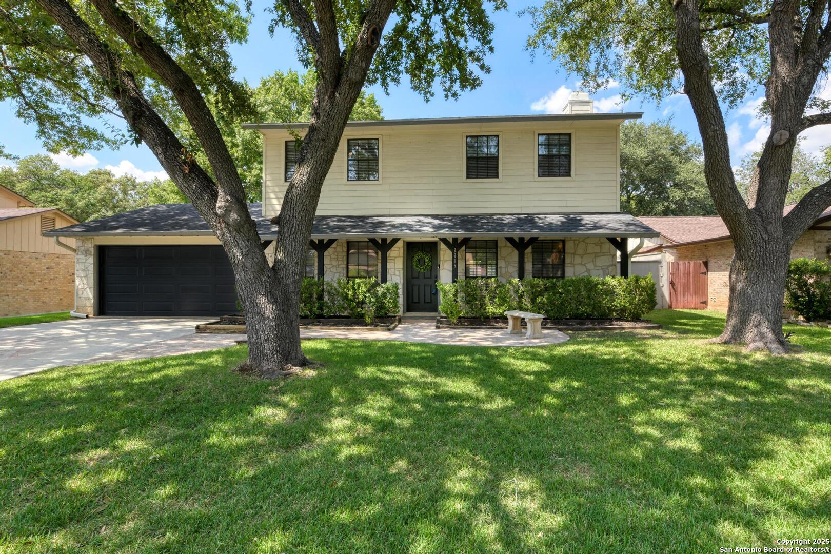 Big news! Seller heard your feedback-garage has been converted back to its original use, plus an HVAC vent was added to the laundry room for even more functional square footage. Welcome to 2215 Shady Rock Cir - a one-owner, lovingly maintained home tucked away on a quiet cul-de-sac in the heart of Castle Hills Forest. This refreshed 4-bedroom, 2.5-bath home offers both character and convenience-just minutes from Alon Town Center, Phil Hardberger Park, the airport, downtown, and the Rim. Step inside to discover fresh paint, recently installed carpet upstairs, and spacious, light-filled rooms. The kitchen is clean and crisp, with a galley-style layout featuring striking black countertops contrasted by bright white cabinets-offering both function and visual appeal. Just off the kitchen, the laundry room is a hidden gem with upper and lower cabinetry, ample counter space, and a walk-in closet complete with floor-to-ceiling shelves and excellent lighting. The outdoor living space is equally impressive with a covered deck enhanced by updated lights and fans, perfect for relaxing or entertaining. The yard has been meticulously maintained, with lush, mature grass and a full sprinkler system in place. There's also a large storage shed in back-freeing up the garage for something special. The garage has been given a major update, converted back into a functional garage with epoxy flooring, automatic doors, and painted walls. Additional highlights include a full security system with cameras and all appliances conveying-including the stainless-steel refrigerator, washer, and dryer. Castle Hills Forest offers a voluntary HOA with a host of community events, swim team for the kids, and many more amenities giving this central San Antonio gem of a neighborhood both a connected and cozy feel for all generations.