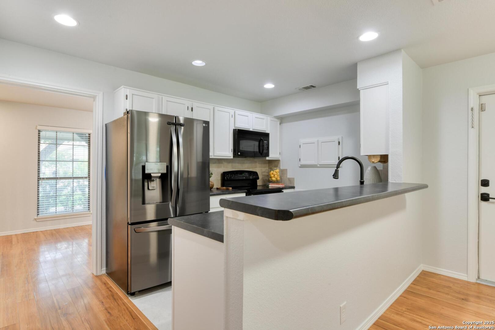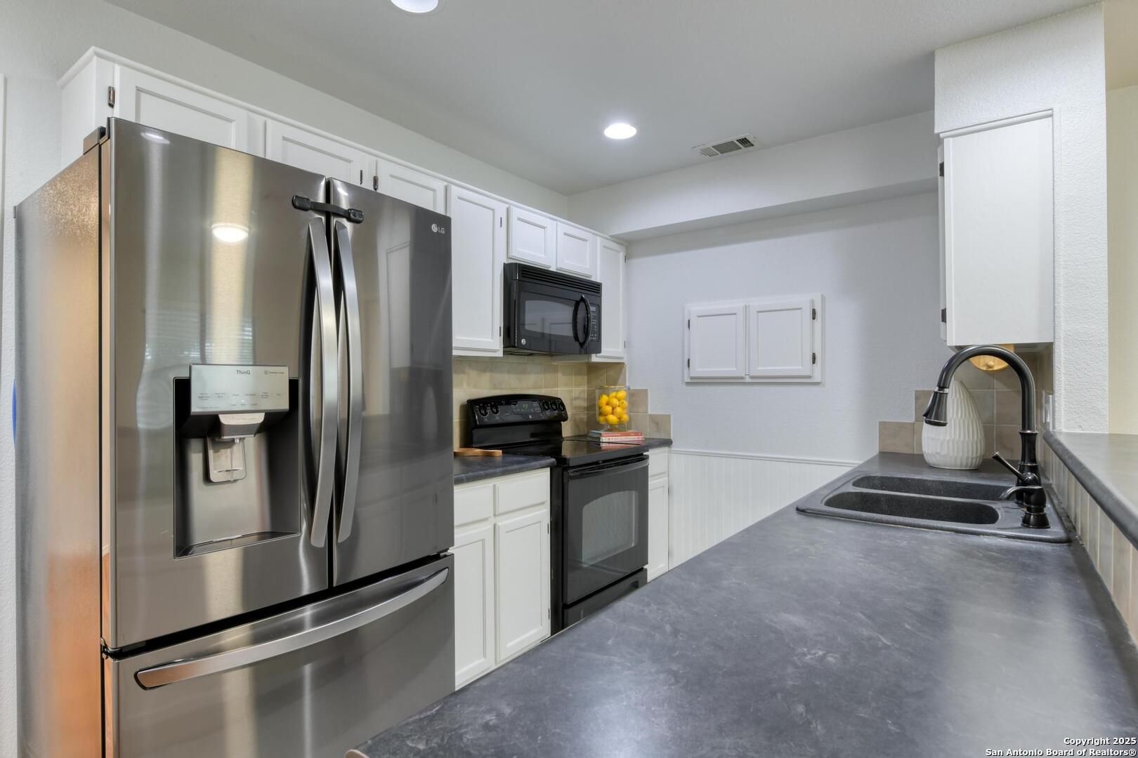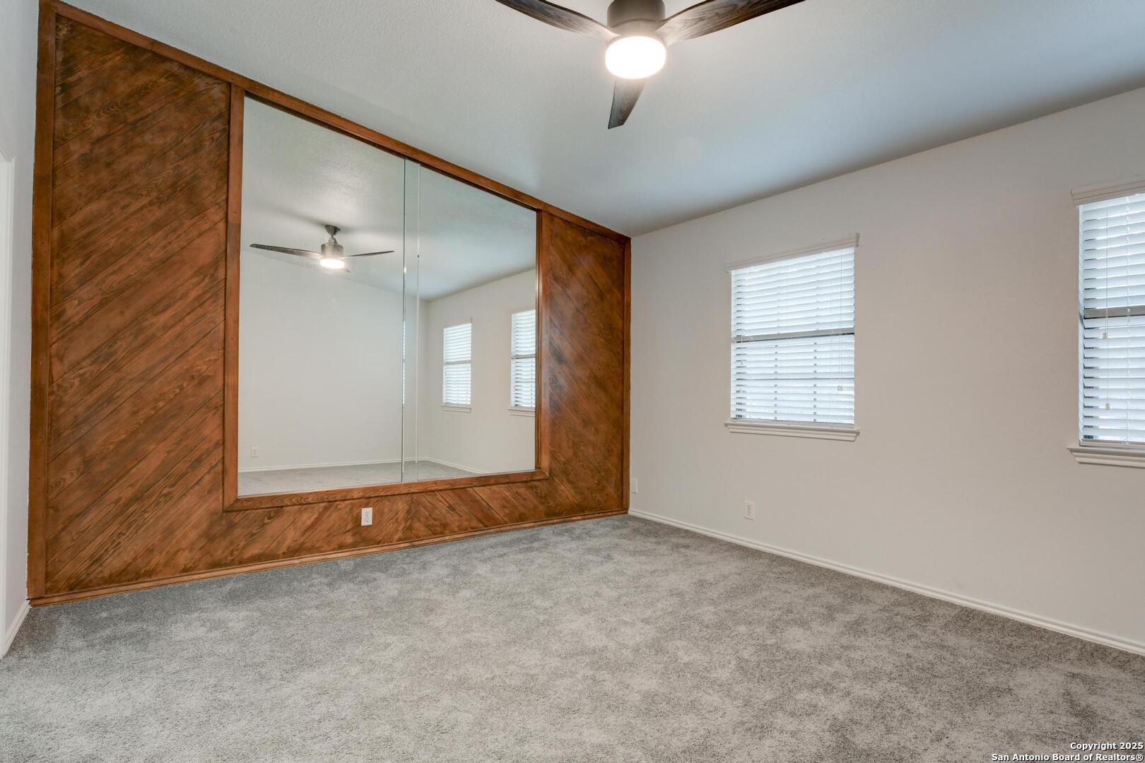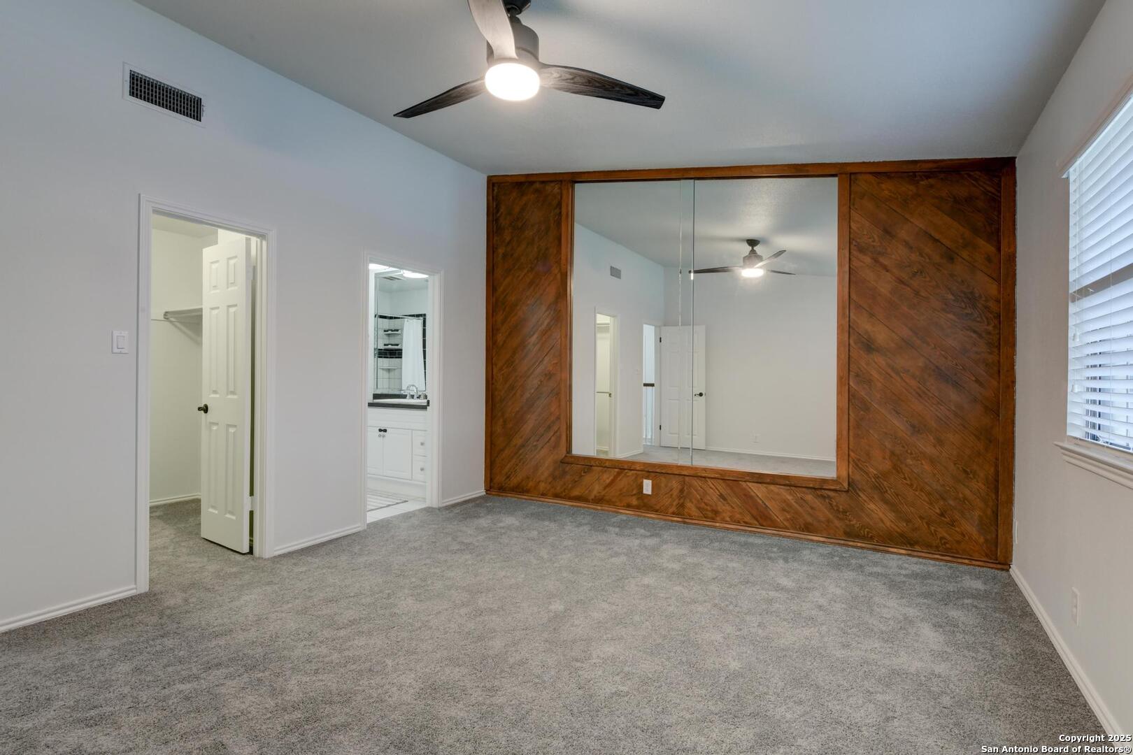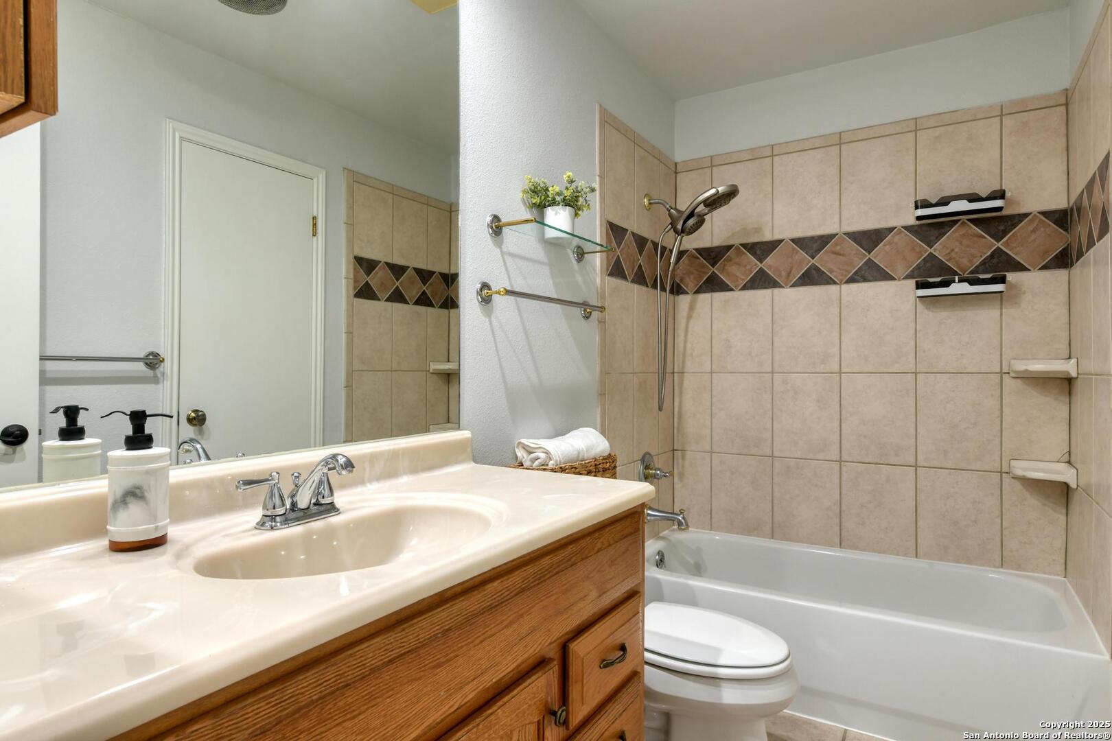 Big news! Seller heard your feedback-garage has been converted back to its original use, plus an HVAC vent was added to the laundry room for even more functional square footage. Welcome to 2215 Shady Rock Cir - a one-owner, lovingly maintained home tucked away on a quiet cul-de-sac in the heart of Castle Hills Forest. This refreshed 4-bedroom, 2.5-bath home offers both character and convenience-just minutes from Alon Town Center, Phil Hardberger Park, the airport, downtown, and the Rim. Step inside to discover fresh paint, recently installed carpet upstairs, and spacious, light-filled rooms. The kitchen is clean and crisp, with a galley-style layout featuring striking black countertops contrasted by bright white cabinets-offering both function and visual appeal. Just off the kitchen, the laundry room is a hidden gem with upper and lower cabinetry, ample counter space, and a walk-in closet complete with floor-to-ceiling shelves and excellent lighting. The outdoor living space is equally impressive with a covered deck enhanced by updated lights and fans, perfect for relaxing or entertaining. The yard has been meticulously maintained, with lush, mature grass and a full sprinkler system in place. There's also a large storage shed in back-freeing up the garage for something special. The garage has been given a major update, converted back into a functional garage with epoxy flooring, automatic doors, and painted walls. Additional highlights include a full security system with cameras and all appliances conveying-including the stainless-steel refrigerator, washer, and dryer. Castle Hills Forest offers a voluntary HOA with a host of community events, swim team for the kids, and many more amenities giving this central San Antonio gem of a neighborhood both a connected and cozy feel for all generations.