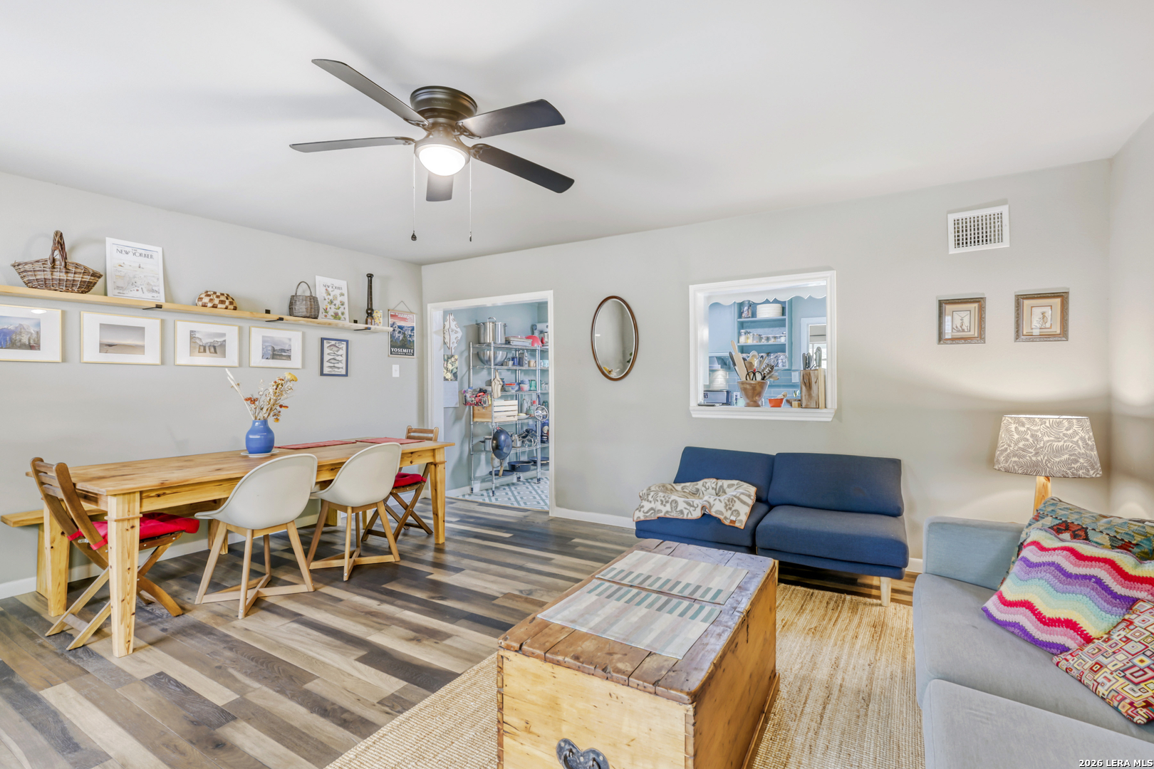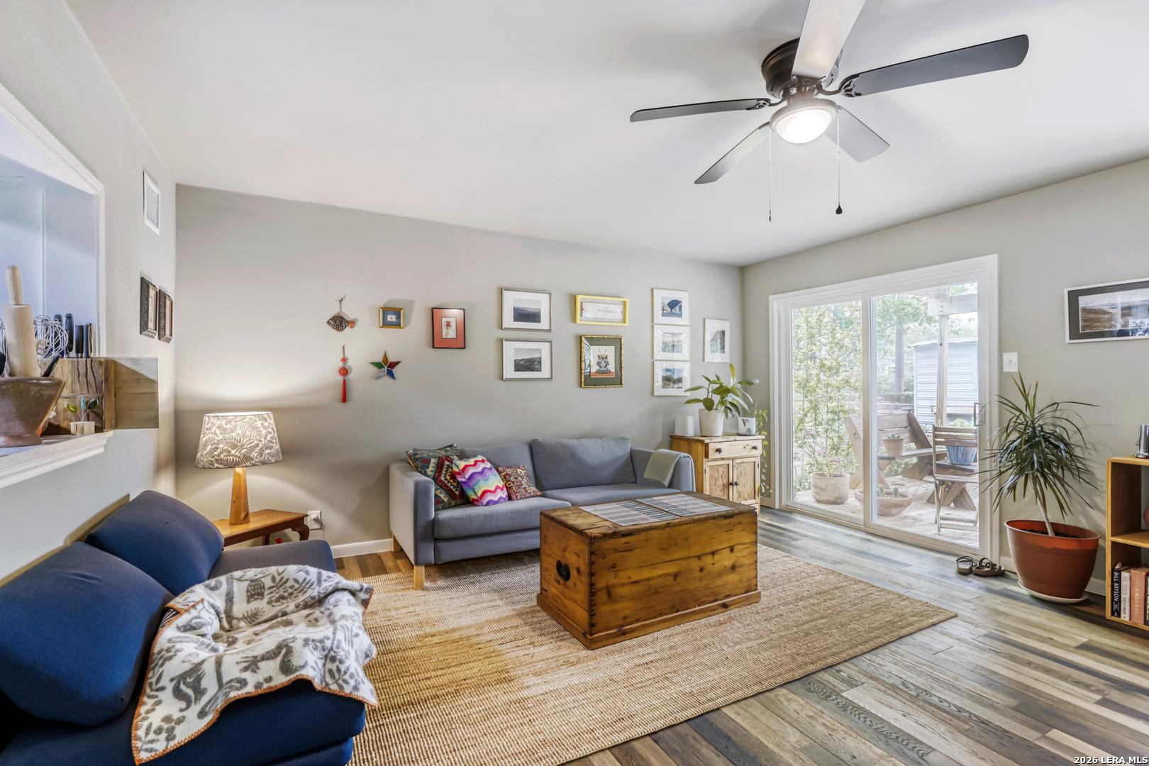 Charming 3 bdrm home with nice updates! Lushly landscaped yard leads you to a welcoming entry with modern touches. Open and airy living spaces feature light and bright interior with gleaming wood floors and ceramic tile. Kitchen has gas range and white quartzite counters. Refrigerator, washer and dryer are negotiable. Bath has been updated with clean white tile surround and white tub. Good sized bedrooms. Additional family room off kitchen overlooks the backyard with garden and shaded deck to relax under. Attached garage for convenience has garage door opener. Storage shed stays. Wonderful central location. Walk to elementary school. Come see!