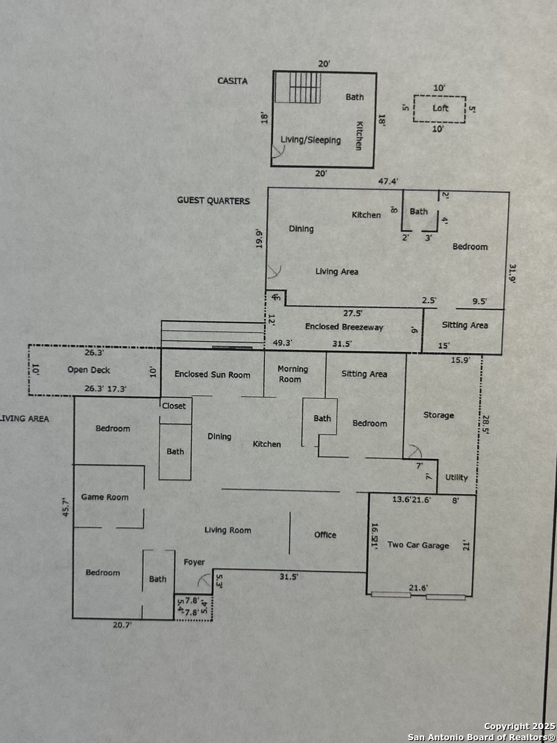 Unique multi-generational property offering incredible flexibility in a prime, highly convenient location with immediate access to Loop 410, IH-10, Hwy 151, and Hwy 90 - placing premier shopping, dining, major employers, and entertainment just minutes away. The main residence features multiple spacious living areas, a game room, private office, expansive kitchen, sunroom, and open deck designed for both comfortable living and effortless entertaining. Private guest quarters include a separate kitchen, living and dining areas, bedroom, bath, and sitting room, providing true independence and privacy. A detached casita with loft offers additional versatile living space ideal for guests, executive workspace, rental income, or studio use. Two-car garage plus storage and utility space add everyday convenience. Perfect for refined multi-generational living or income-producing opportunities. Three living spaces. Endless possibilities. Live in one, rent the others - or create the ultimate private family compound. Opportunities like this are rare.