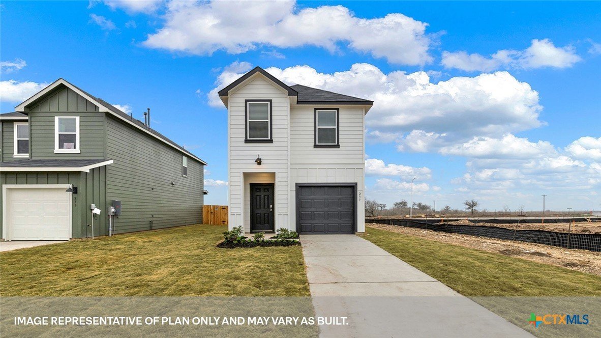 MOVE IN READY! THE Altaria floorplan in Bollinger, one of our communities in Maxwell, Texas. This two-story home has 4 bedrooms, 2.5 bathrooms and a 1 car garage across 1,543 square feet of living space. Our homes in Bollinger feature our modern farmhouse exterior. As you enter the home from the covered front porch, you’ll pass through the foyer and hallway to the large open living space. The kitchen faces out to the dining room and family room, allowing for conversations to flow easily across the space as you make dinner and unwind from your day. The kitchen features laminate countertops with 50/50 stainless steel drop-in bowl, 4” laminate backsplash, pantry closet, 36” upper cabinets and stainless-steel appliances, including a gas range. The powder room is off the front hallway to complete the downstairs space. Moving upstairs, you’ll find the 4 bedrooms and 2 full bathrooms. The primary bedroom is located at the rear of the second floor and includes an attached bathroom. Enjoy the walk-in shower, laminate countertop, and a walk-in closet inside the primary bathroom. The secondary bedrooms include closets with shelving and the hall bathroom includes a shower/tub combination. Whether you use these rooms as an office, child’s room or guest room, there is amble space for work, sleep, and play. The Altaria includes vinyl flooring throughout the common areas of the home, and carpet in the bedrooms. All our new homes feature Bermuda sod, an irrigation system in the front and back yard, and a 6’ privacy fence around the back yard. This home comes with our America’s Smart Home base package, which includes the Amazon Echo Pop, Front Doorbell, Front Door Deadbolt Lock, Home Hub, Thermostat, and Deako® Smart Switches.