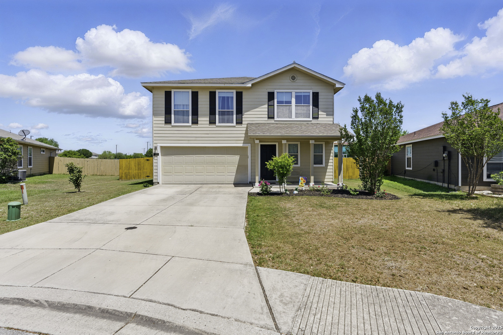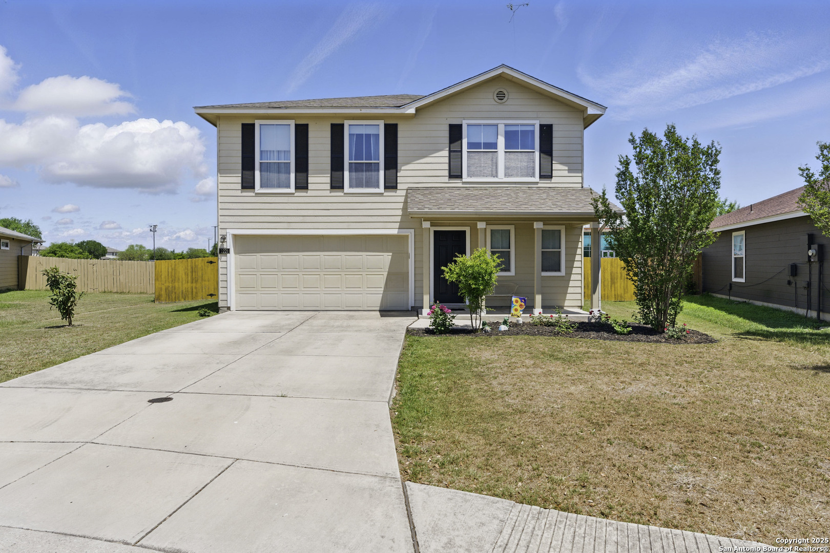 Welcome to 2221 Stoneleigh Drive in beautiful New Braunfels, TX! This charming two-story home provides 4 spacious bedrooms and 2 1/2 full bathrooms, perfectly nestled in a desirable neighborhood with convenient access to everything you need including being positioned on an oversized lot for this neighborhood! Step inside to discover a generous living area ideal for entertaining, seamlessly flowing into a formal dining room and a well-appointed kitchen featuring ample countertop and cabinet space. There's even a cozy breakfast nook that opens to the backyard, perfect for casual meals and morning coffee. The primary suite provides a peaceful retreat with an ensuite bathroom complete with dual vanities and a relaxing tub/shower combo. Enjoy the outdoors in your private backyard, which includes a covered patio, a wooden privacy fence, and a handy storage shed. Don't miss your chance to make this wonderful home yours-schedule your private showing today!