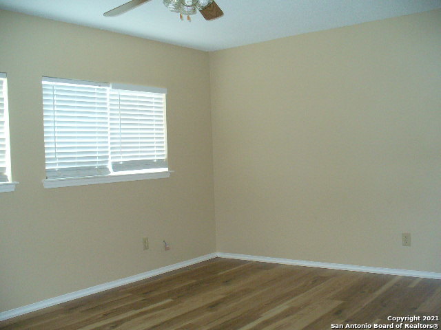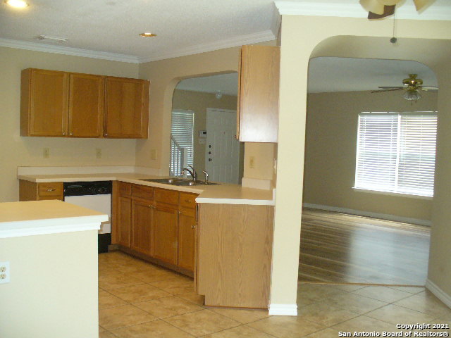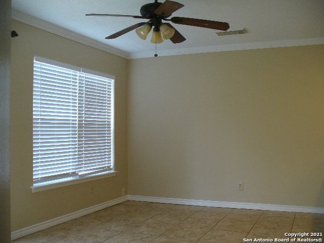 Property Features and Highlights Outdoor Living The property features mature trees that provide natural shade and enhance the landscape. A large covered patio equipped with ceiling fans offers an inviting space for outdoor relaxation and entertaining guests, regardless of the weather. Interior Layout Inside, the spacious open floor plan seamlessly connects living areas, creating a welcoming environment for family and friends. The floors are finished with a combination of laminate and tile, offering both durability and style throughout the home. Additional Living Space Upstairs, a bonus room provides extra space that can be adapted to fit various needs, such as a home office, playroom, or media area. Kitchen and Dining Features The kitchen and dining area are accented with elegant crown molding, adding a sophisticated touch to the space. The kitchen is designed for convenience and practicality, featuring a walk-in pantry and ample storage options for all your culinary essentials. Location Benefits This home is conveniently located near Lackland Air Force Base, major highways, Seaworld, schools, and shopping centers, making it a prime choice for accessibility to key destinations and amenities in the area.
