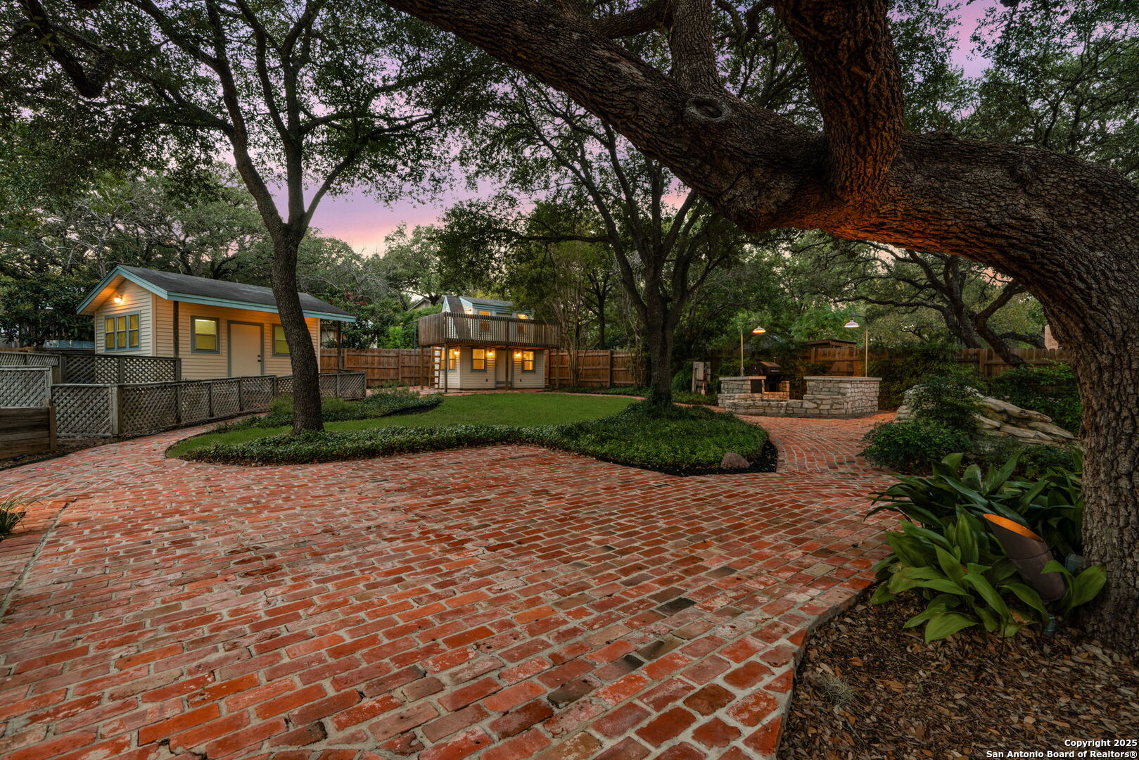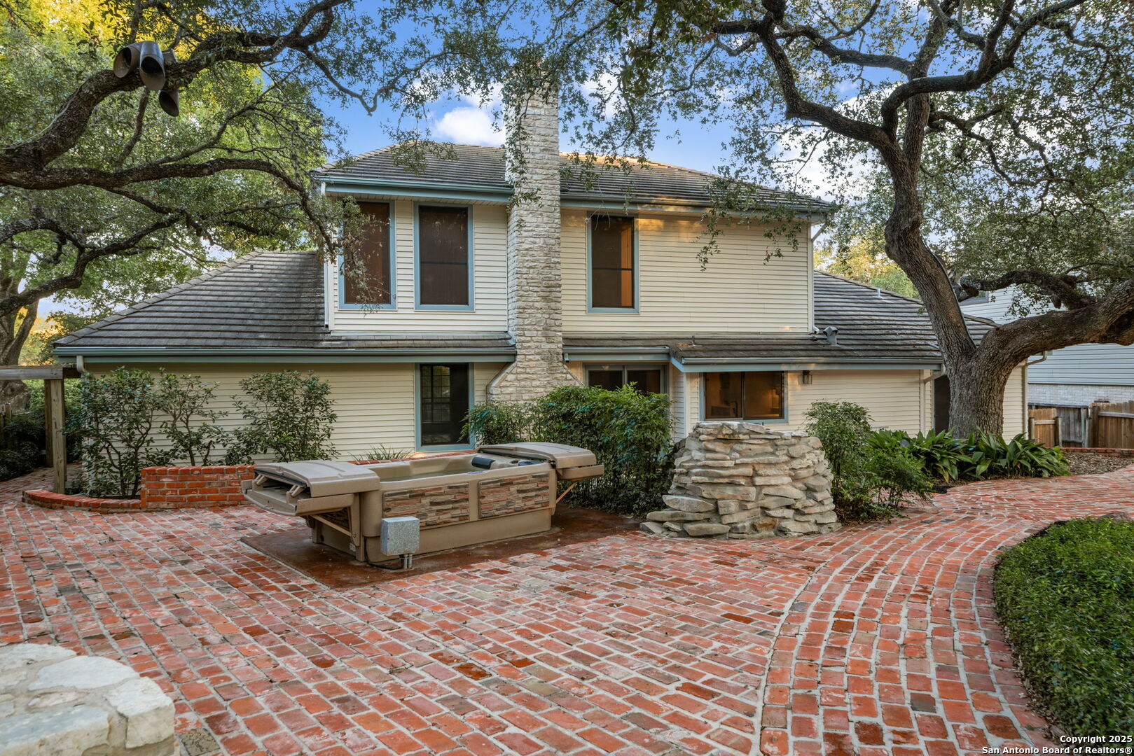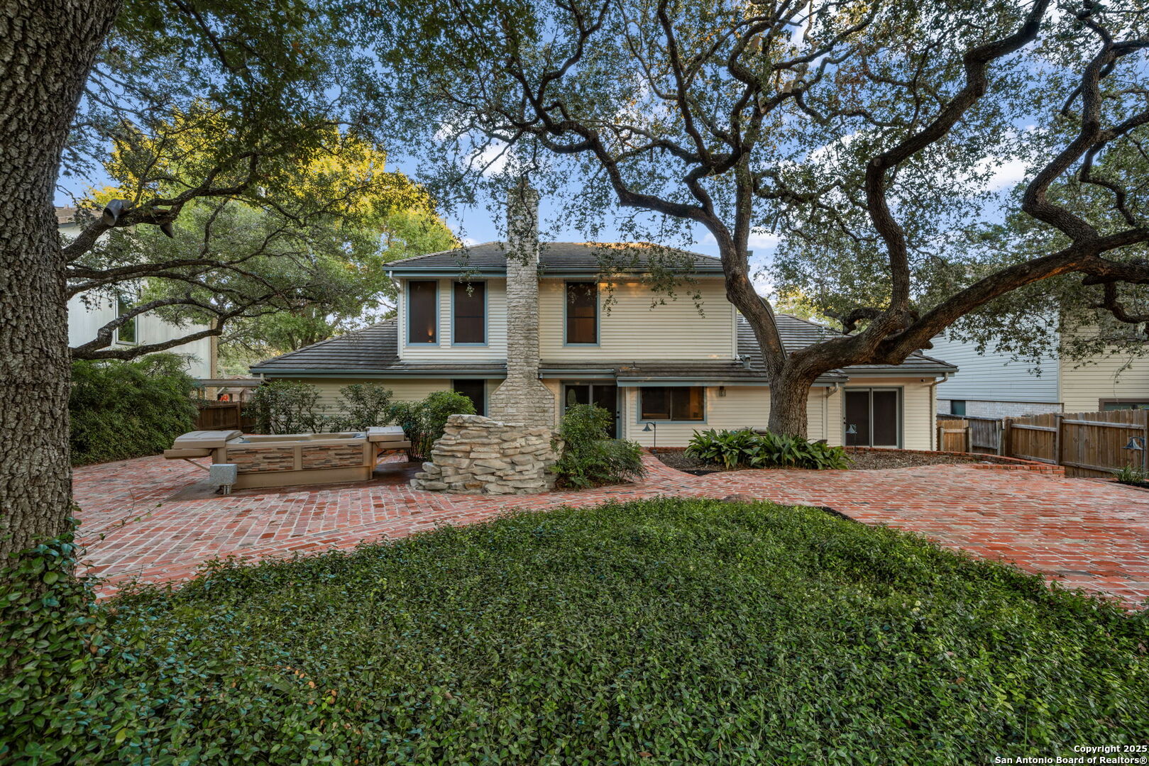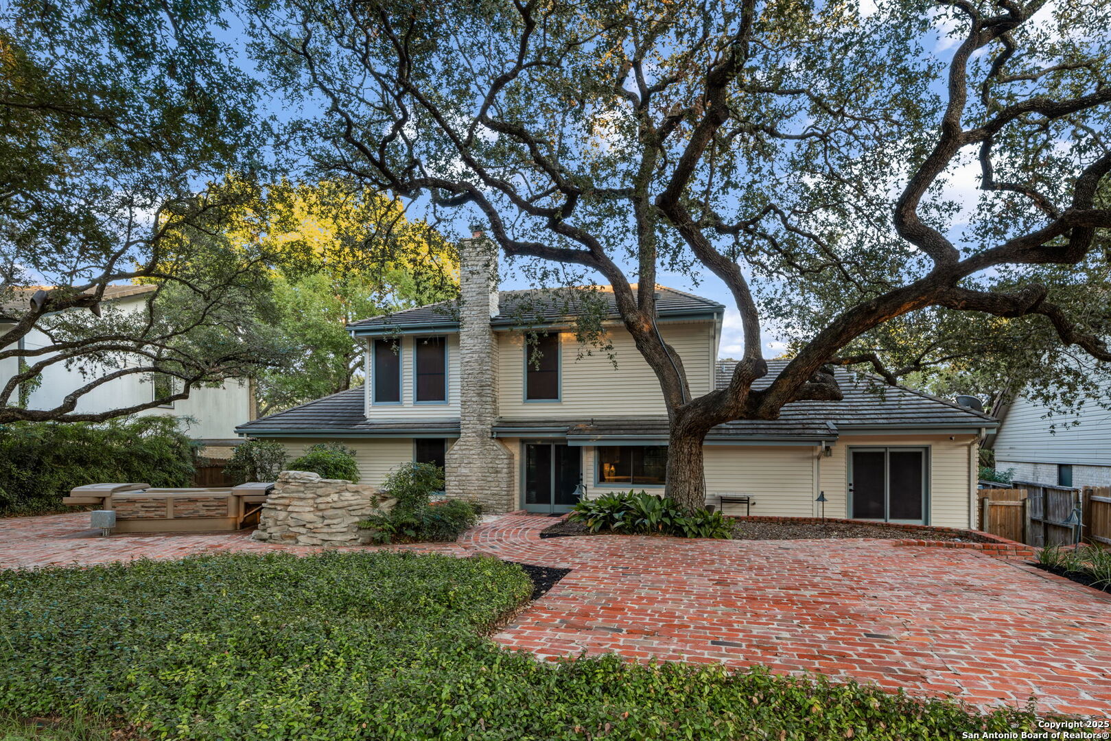 Open House this Saturday 11/8 and Sunday 11/9 1-3pm!!!! This stunning, fully renovated home in desirable Encino Park is truly one of a kind, offering space, style, and sophistication at every turn. With 4 bedrooms and 3.5 baths, including two primary suites-one upstairs and one downstairs-it's perfect for multi-generational living or hosting guests in comfort. The heart of the home is a stunning peninsula kitchen featuring quartz countertops, new stainless appliances, and seamless flow into the family room, where a fireplace serves as the warm centerpiece. Enjoy entertaining in the formal dining room with a built-in china cabinet, or unwind in the formal living area. The breakfast nook includes a built-in bar, and the spacious laundry/butler's pantry combo opens through French doors to the spectacular backyard. Step outside to your own private retreat with a waterfall feature, outdoor kitchen, hot tub, playhouse, and storage shed. The brick patio, crafted from antique bricks sourced from the Motherhouse of the Sisters of Charity of the Incarnate Word-founders of the University of the Incarnate Word-adds a touch of San Antonio history to your outdoor oasis. Located in highly rated NEISD schools, this home offers luxury, history, and charm-too many incredible features to list!